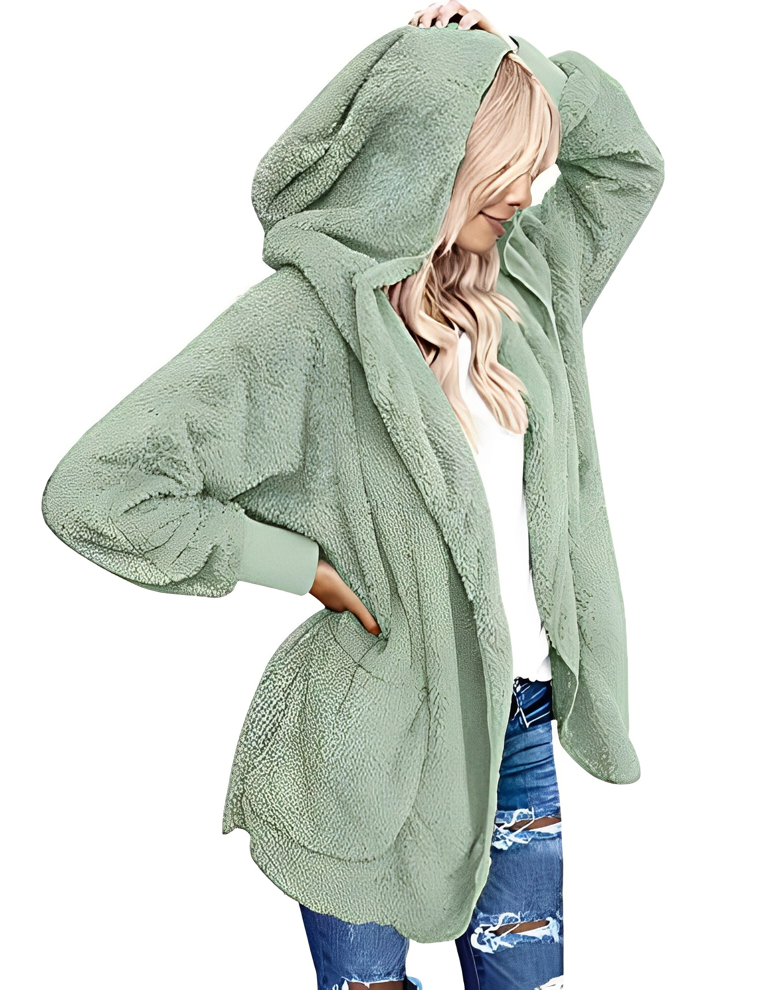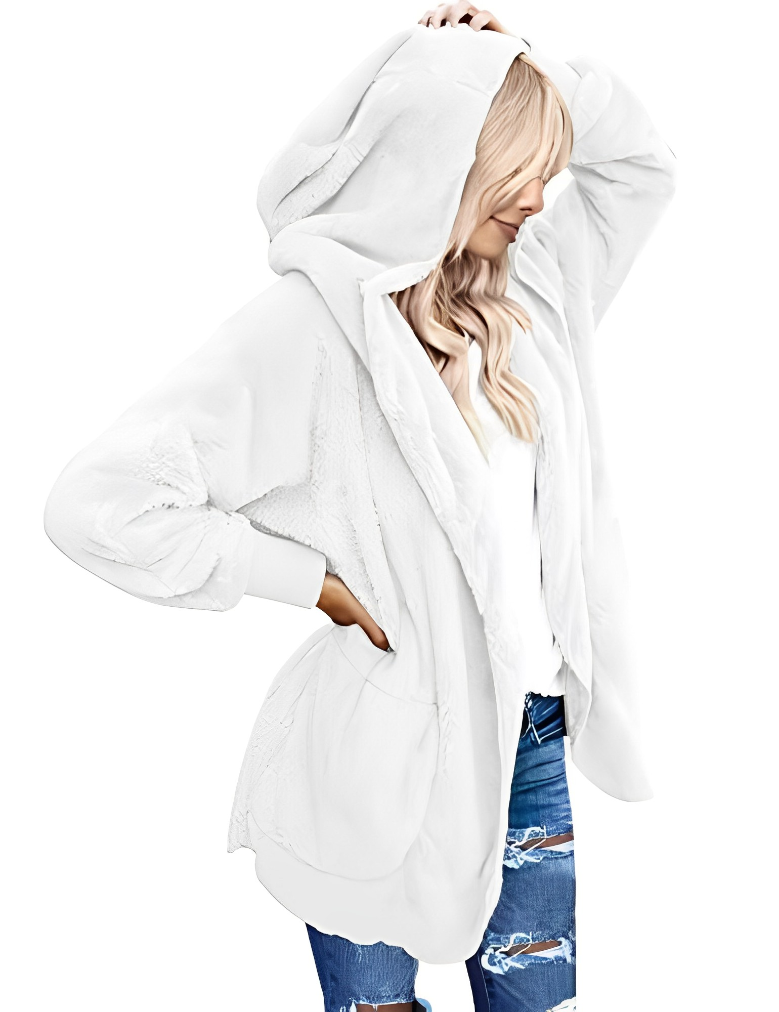 Omarm Elegantie en Comfort: Ontdek de ultieme combinatie van stijl en gezelligheid met onze CozyChic Capuchon-Cardigan. Deze oversized, open jas is perfect voor vrouwen die mode waarderen zonder in te leveren op comfort.