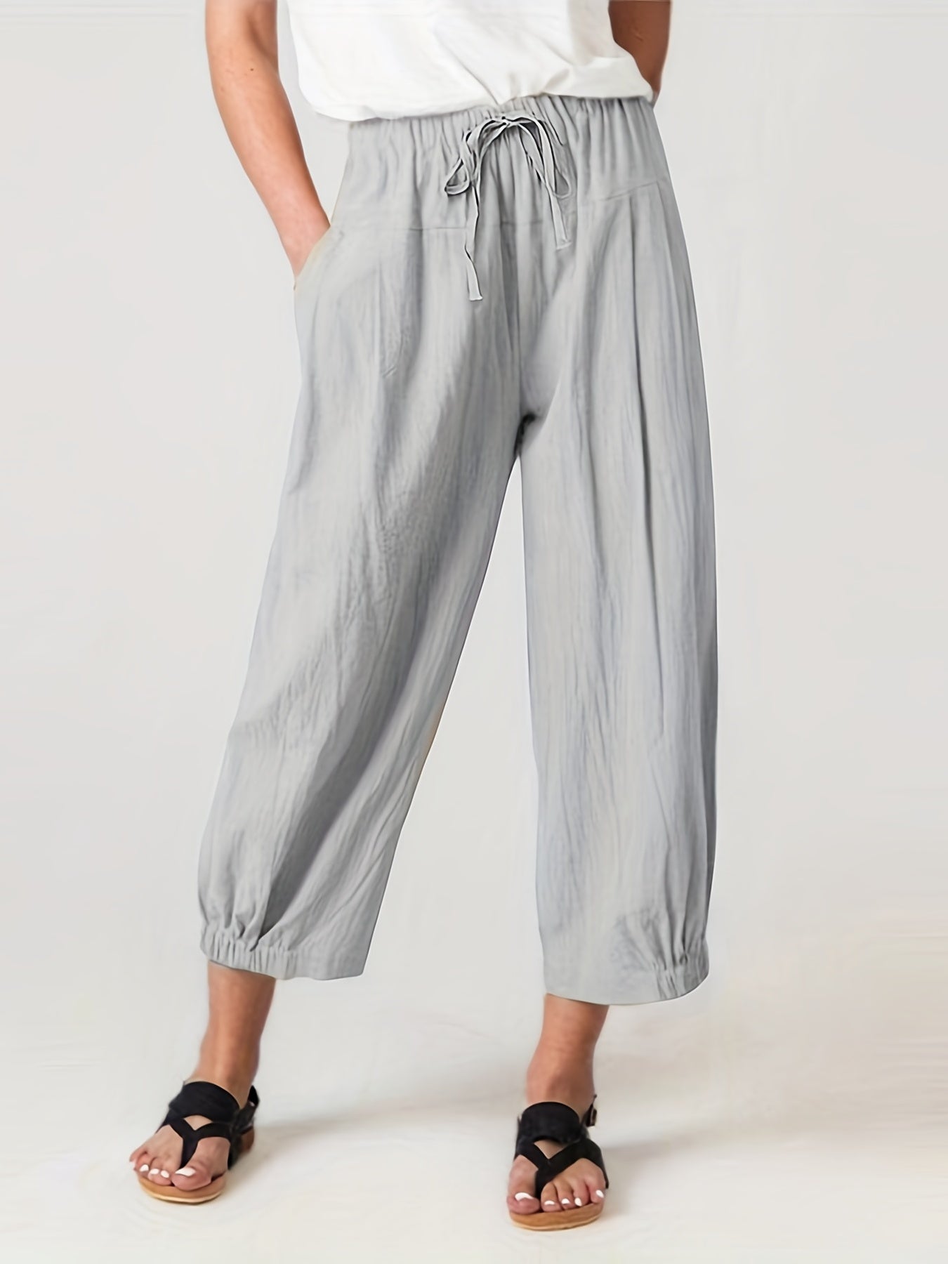 Luchtig en Comfortabel: Gemaakt van hoogwaardig materiaal, biedt deze broek een ademende en comfortabele pasvorm. De elastische tailleband met trekkoord zorgt voor een perfecte pasvorm en ultiem gemak.