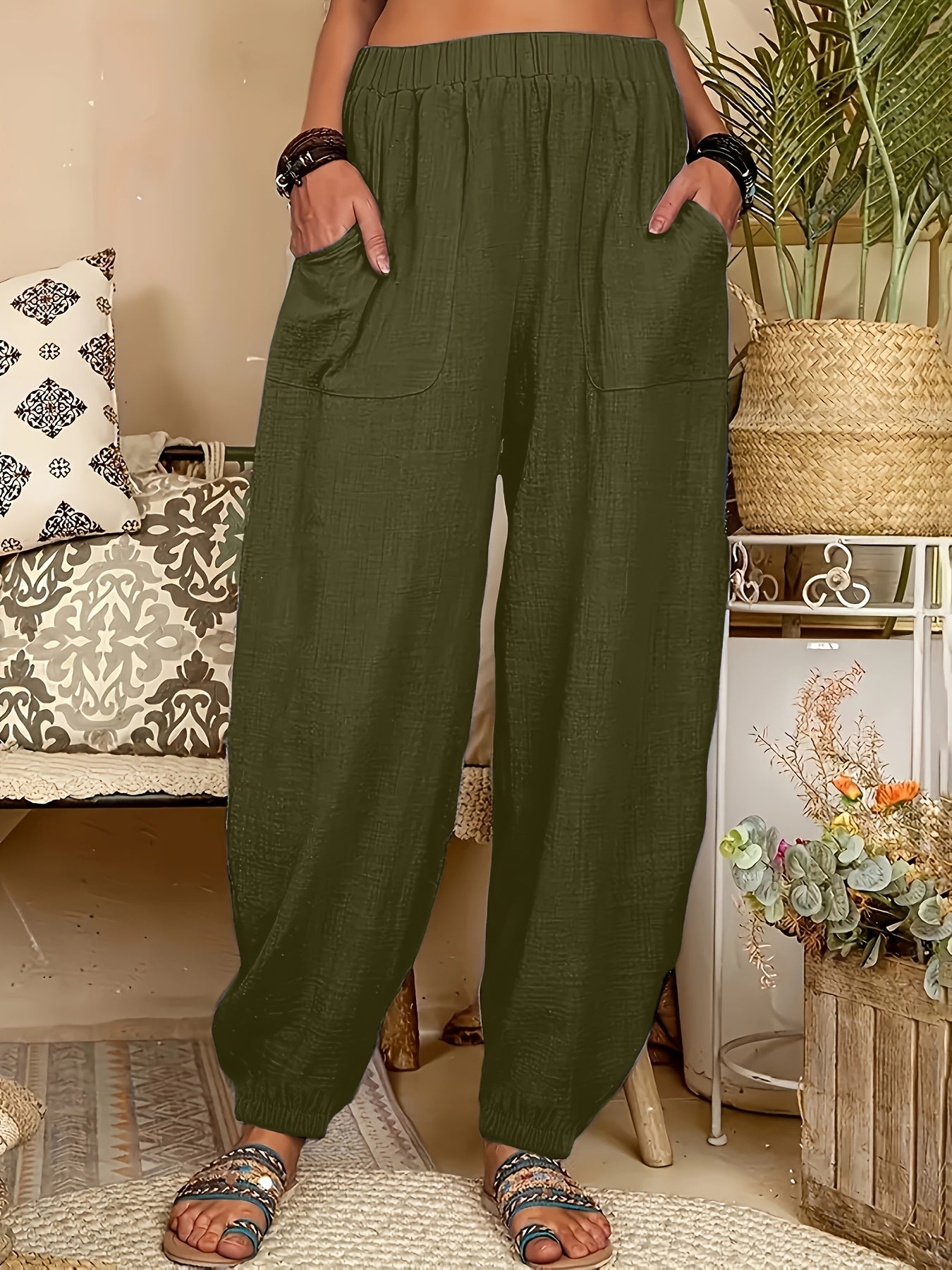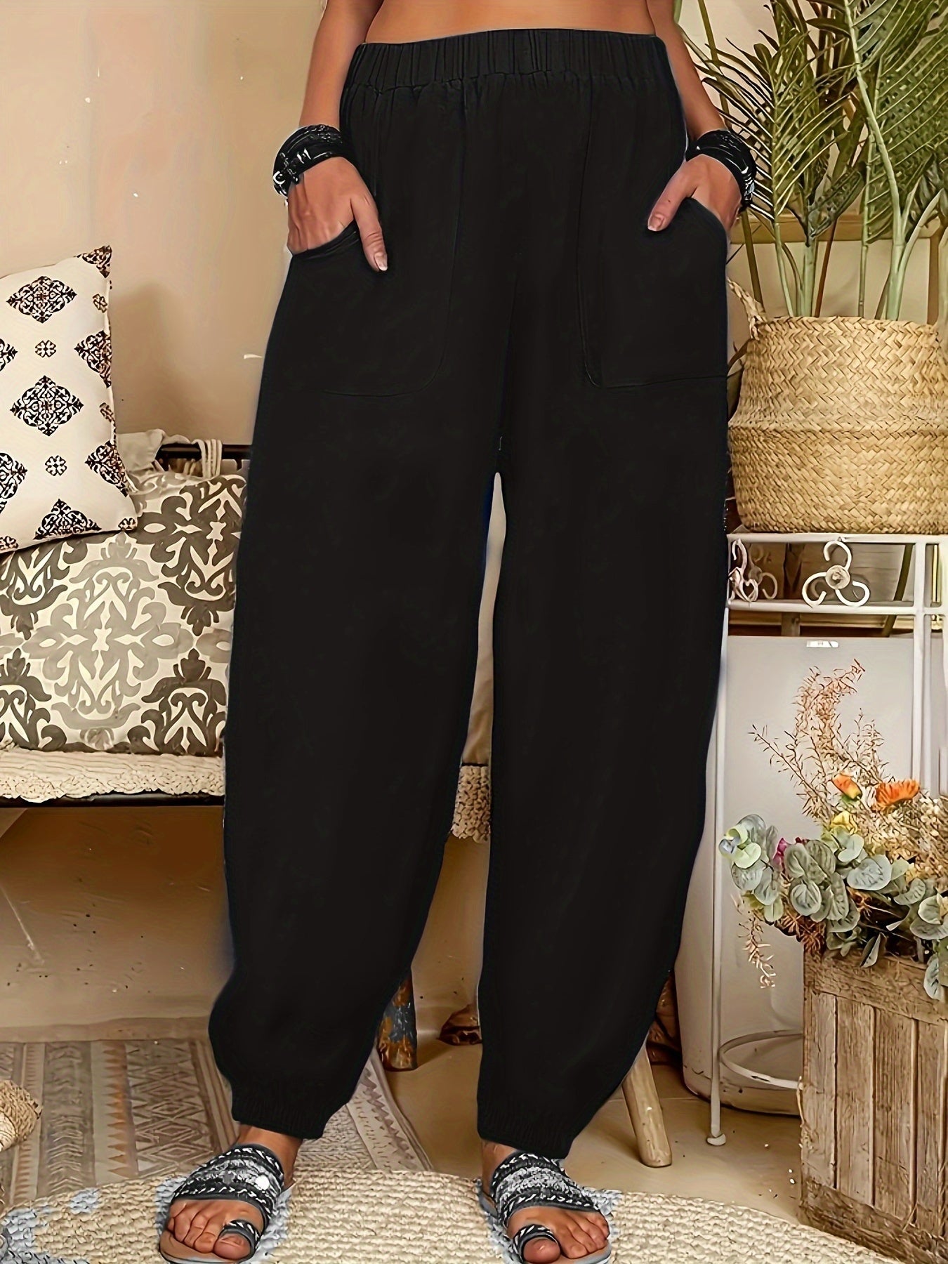 - Stijl: Casual plus size joggers met elastische tailleband en zakken.