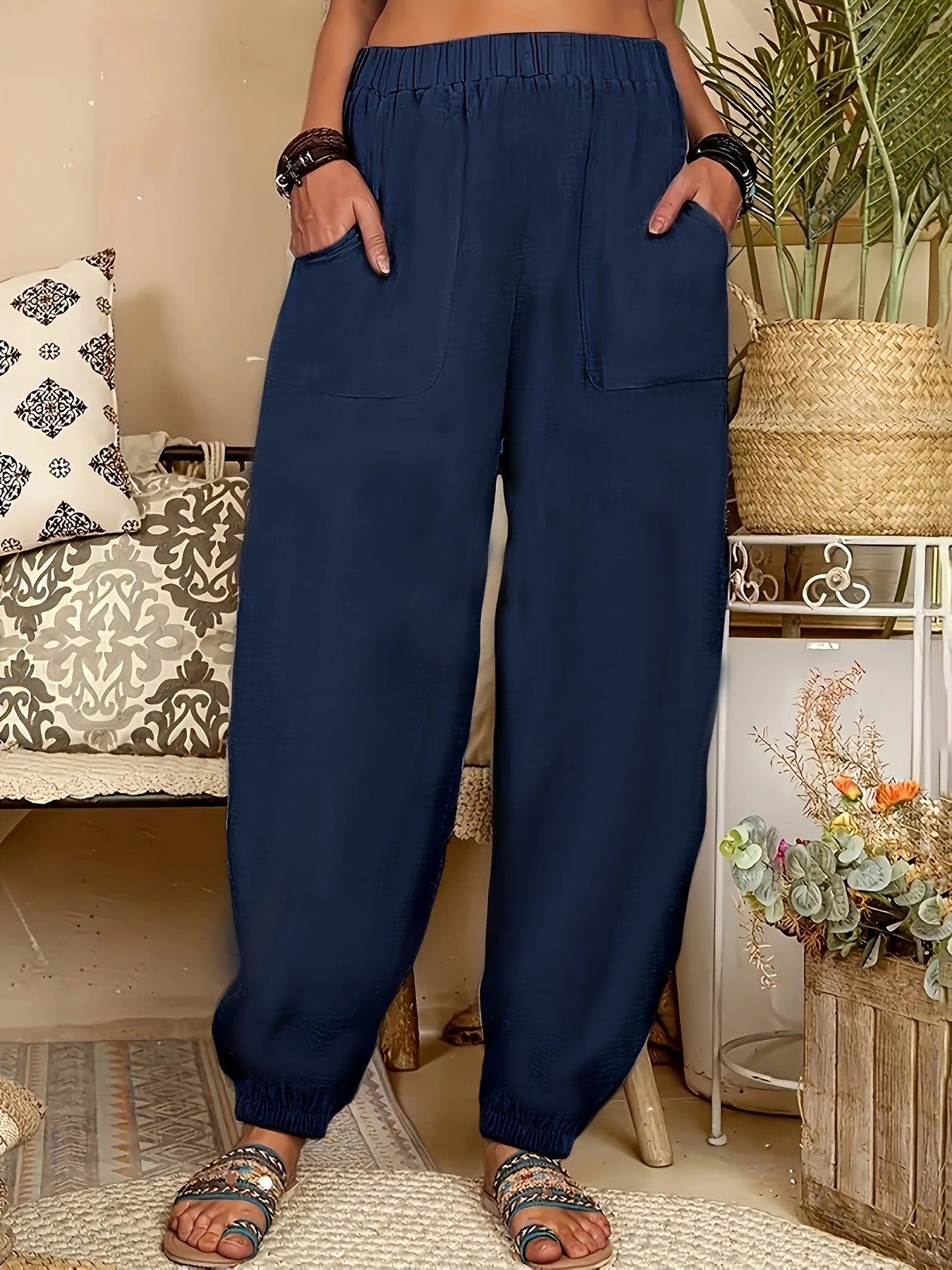 Ervaar ultiem comfort en stijl met onze Donkerblauwe Plus Size Joggers. Perfect voor lente en zomer, biedt deze broek een casual en relaxte look die ideaal is voor de moderne vrouw.