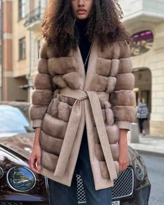 Pluche Warmte - Omarm gezellige luxe. Vervaardigd met hoogwaardig nepbont, houdt deze jas je warm zonder in te boeten aan stijl. Perfect voor kille avonden, het is je ideale metgezel om comfortabel en chic te blijven.