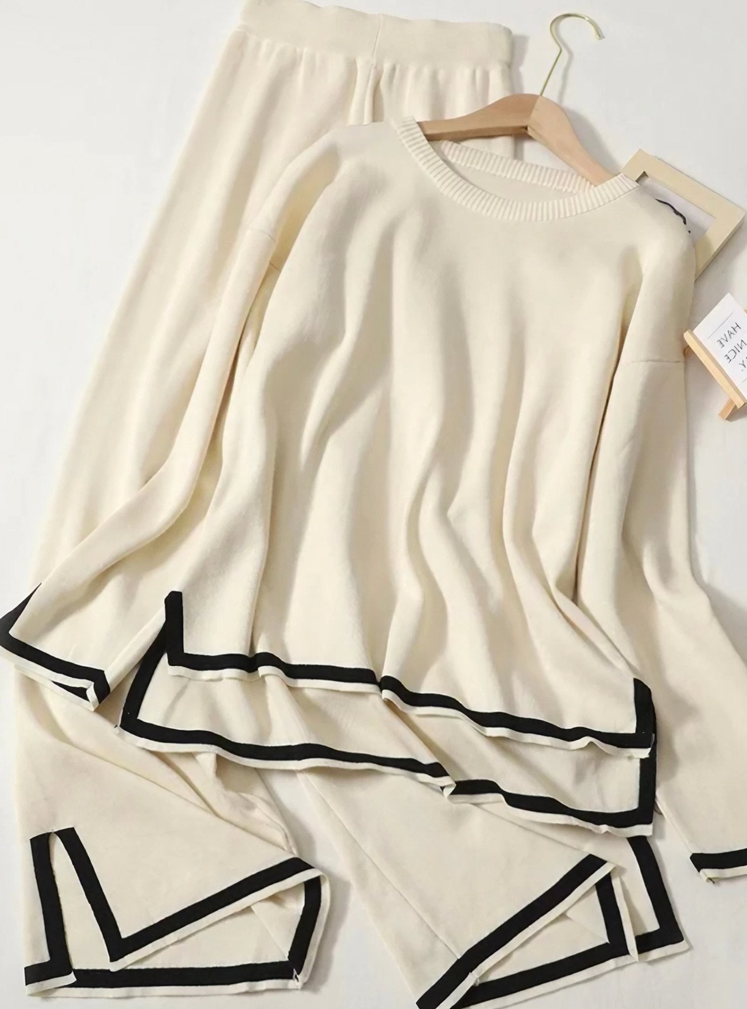 Veelzijdige Stijl voor Elke Gelegenheid - Van informele bijeenkomsten tot ontspannen werkomgevingen, onze Gebreide CozySet past zich aan jouw levensstijl aan. Het tijdloze ontwerp vult elke garderobe aan, waardoor het het perfecte cadeau is voor jezelf of een dierbare.