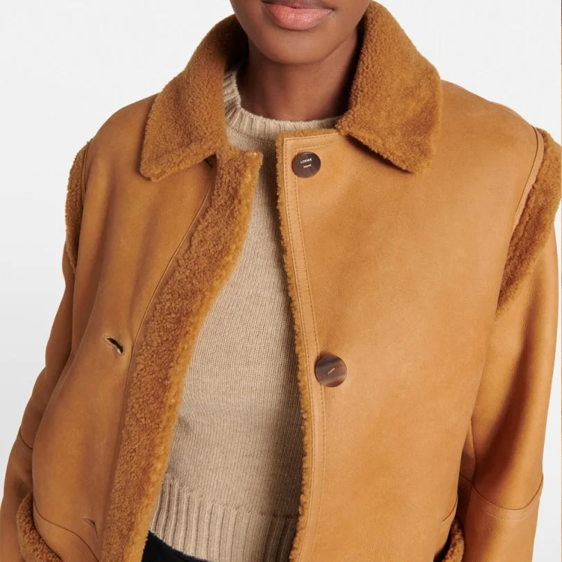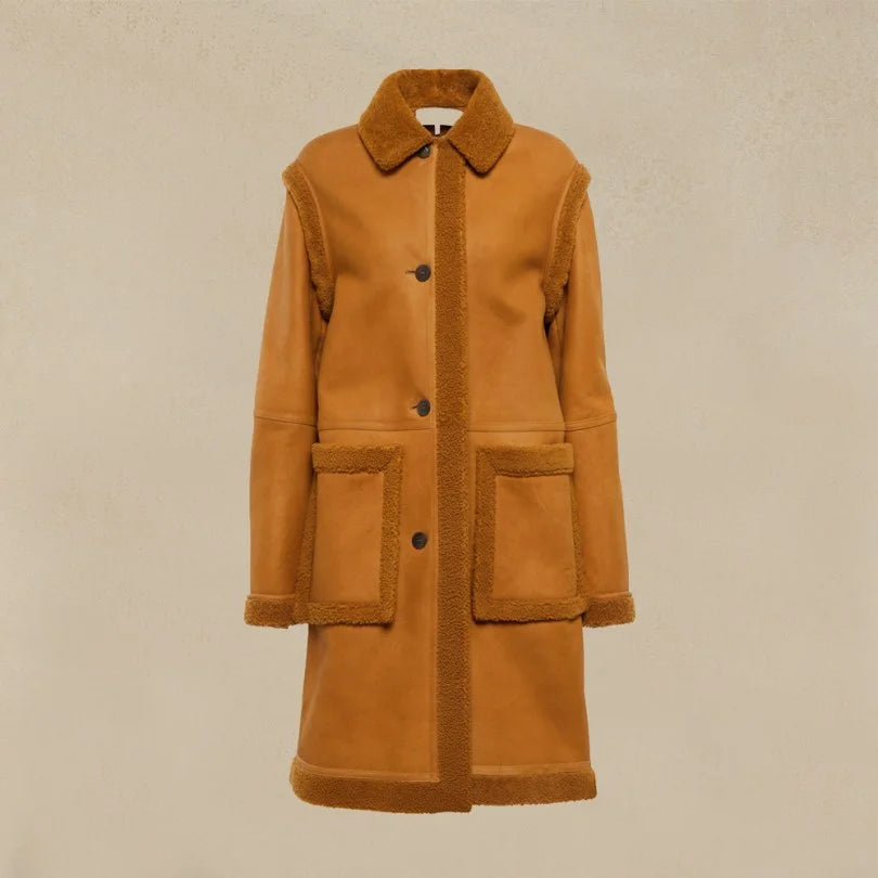 Ontdek Ongeëvenaarde Elegantie & Comfort Betreed de wereld van luxe met onze Elegante Bruine Schapenvacht Shearling Jas. Speciaal ontworpen voor vrouwen die zowel stijl als comfort waarderen, belooft deze jas een ongeëvenaarde elegantie die je onderscheidt in elke menigte.