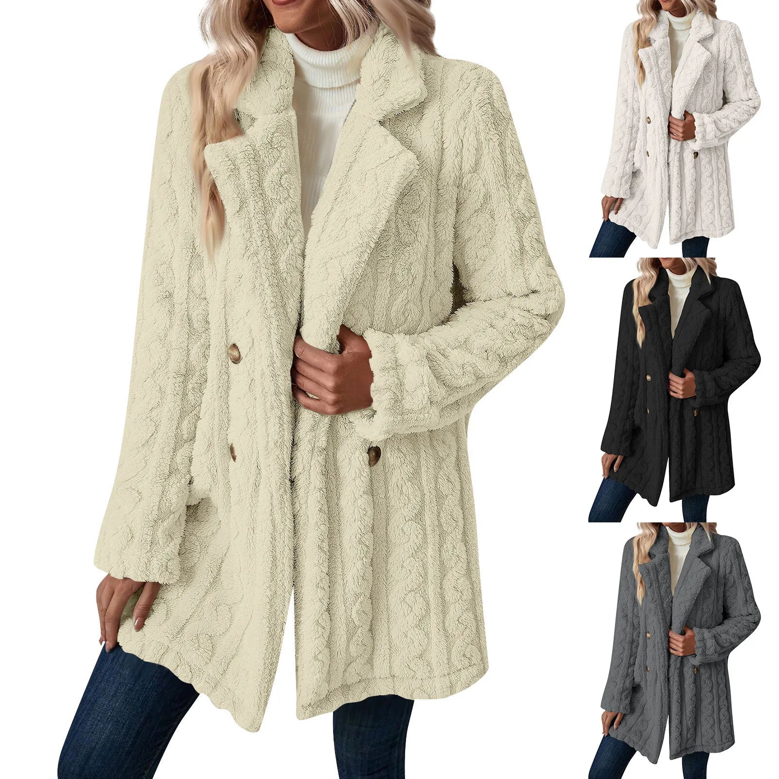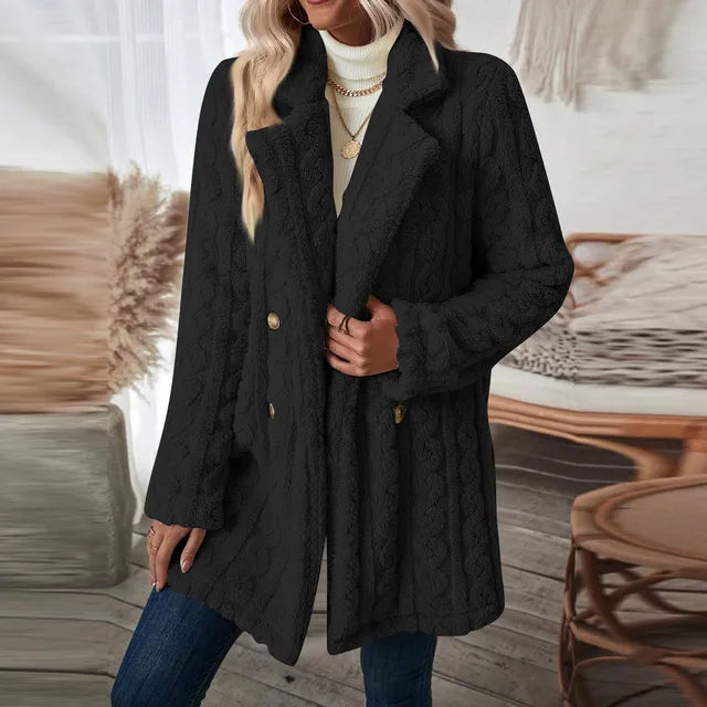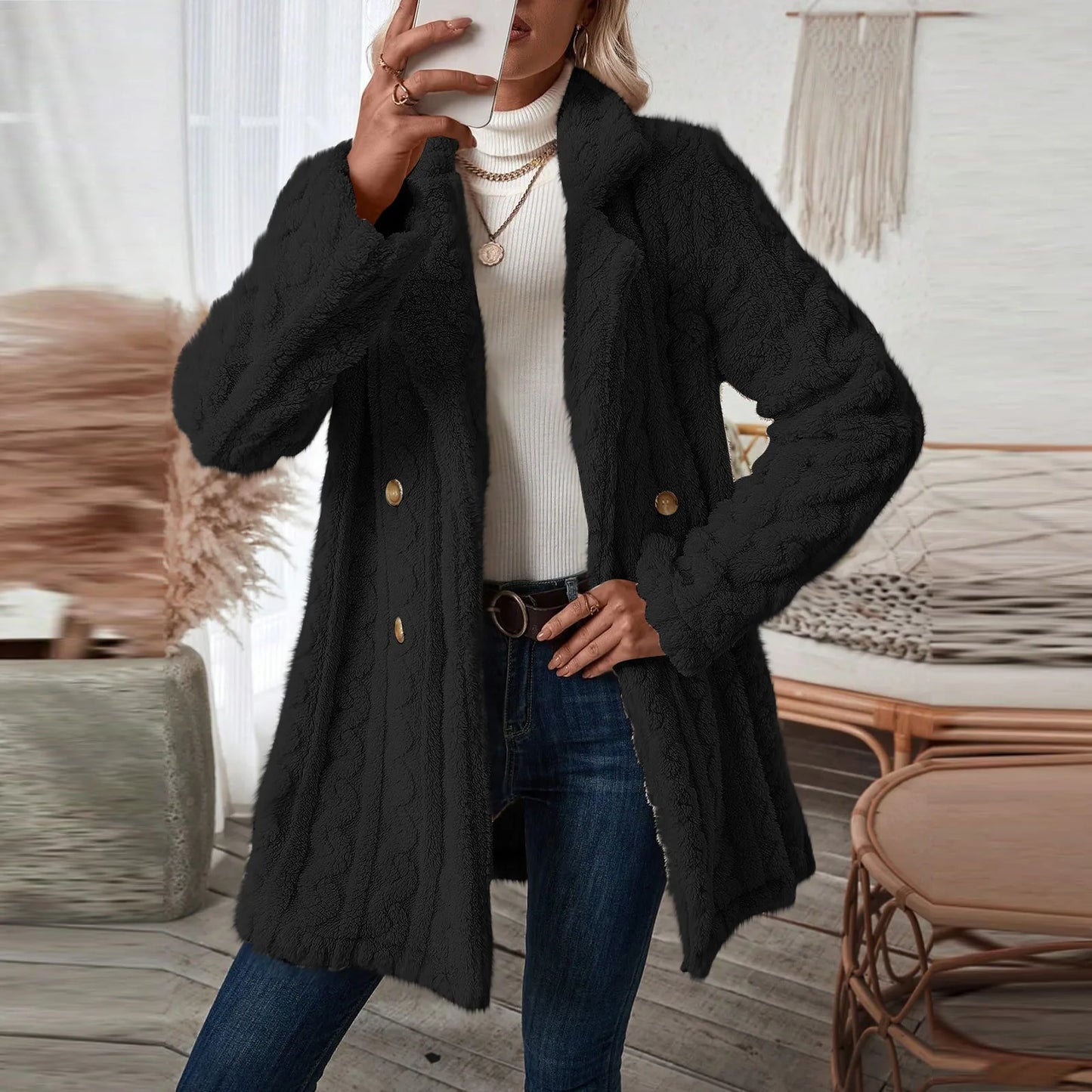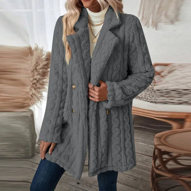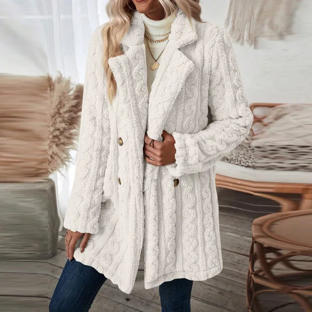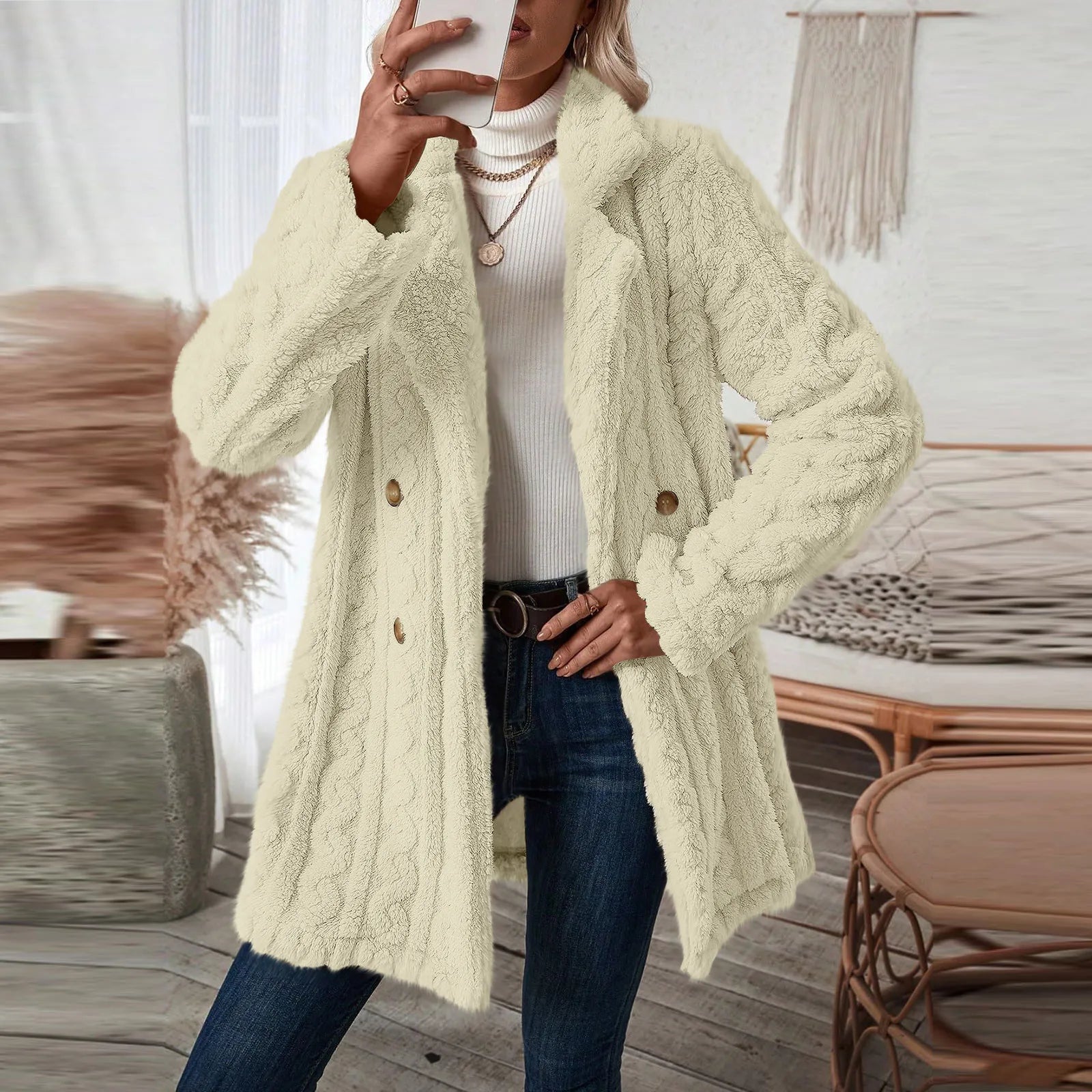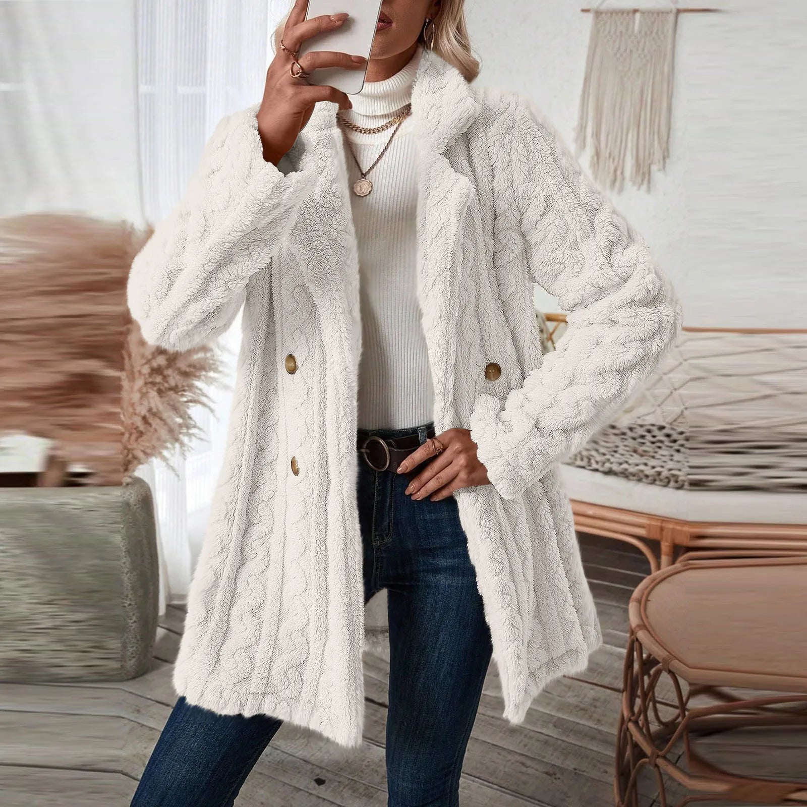 Elegante Crème Sherpa: Thermische Dubbelgeknoopte Dames Teddyjas