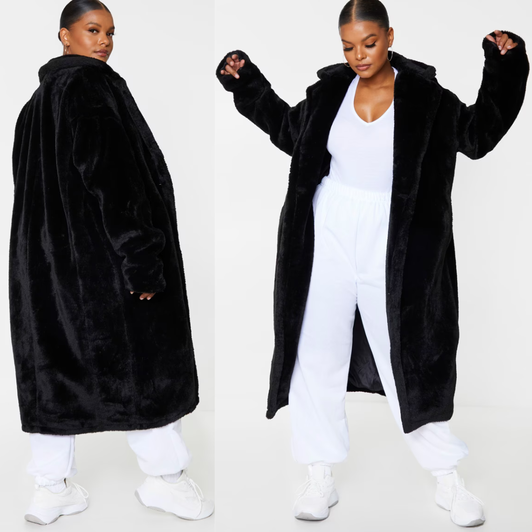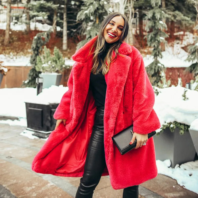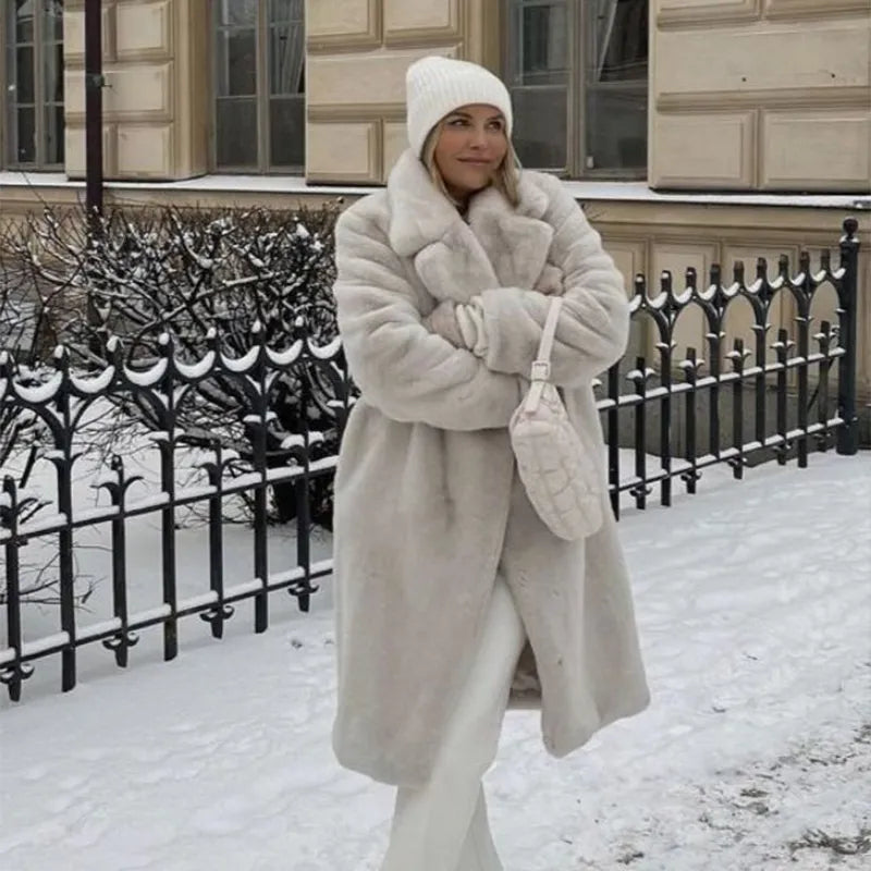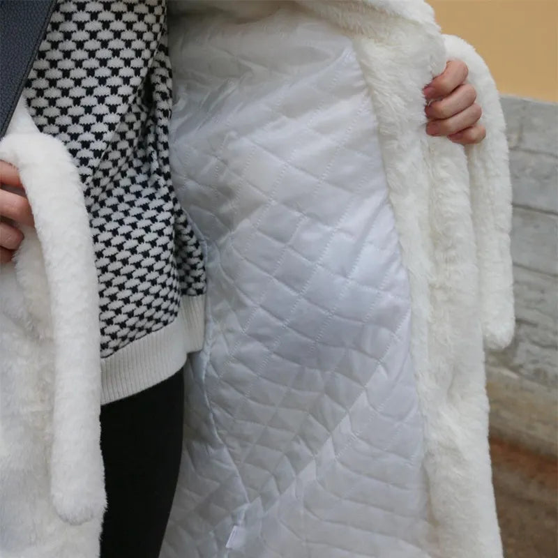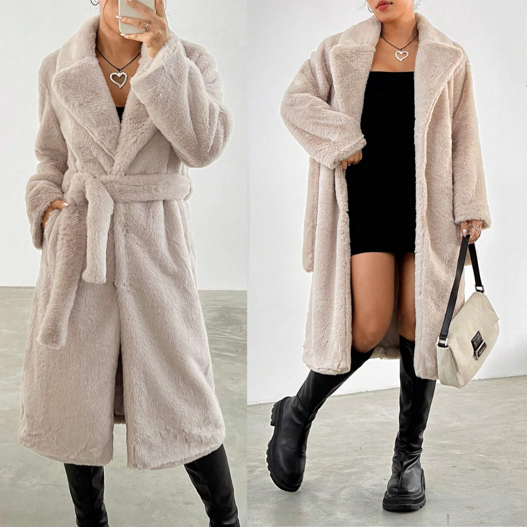 Elegante Winterwarmte: Luxe Lange Fleece Jas met Bontdetails & Vintage Charme