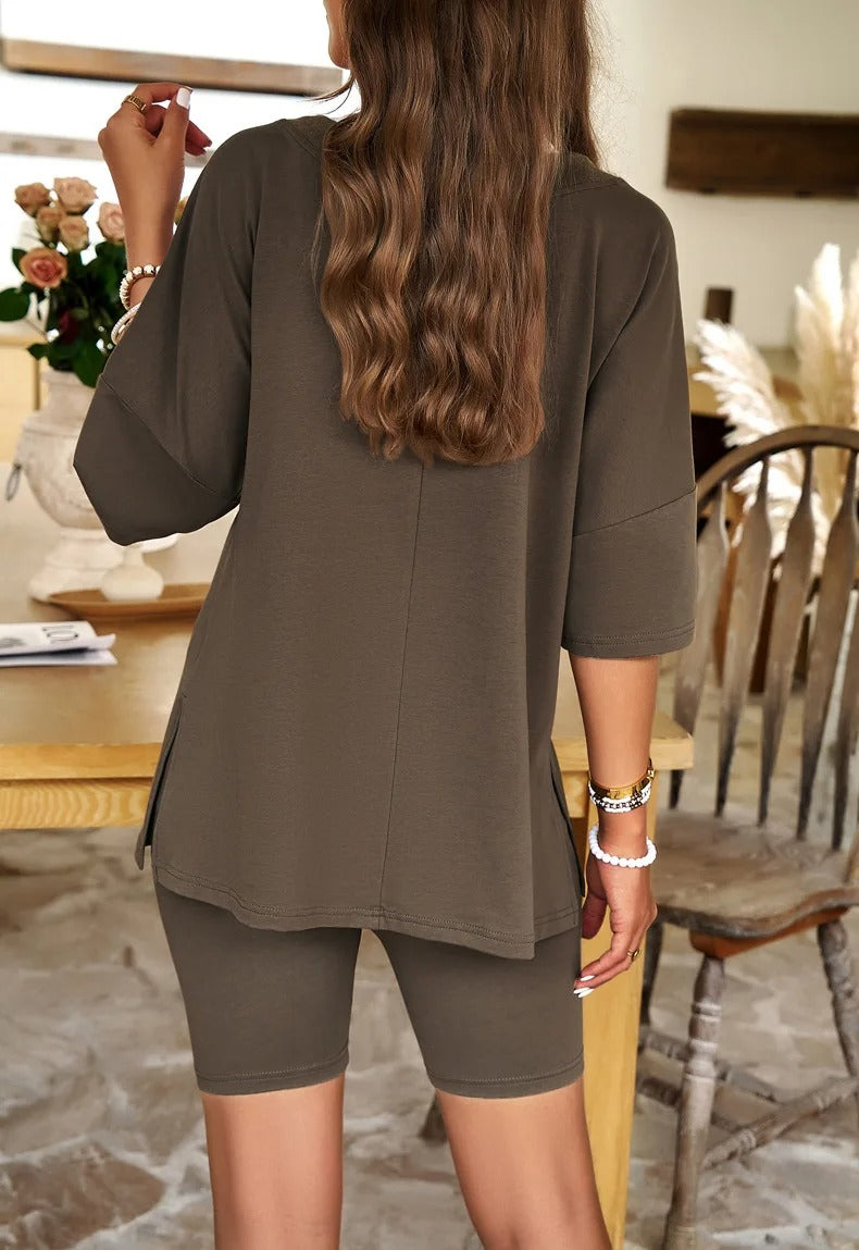 Verfijnde Elegance met een Twist: Deze V-hals set tilt je dagelijkse look naar een hoger niveau. Het unieke holle ontwerp biedt een subtiele blik op de huid, wat zorgt voor een speelse maar stijlvolle uitstraling die gegarandeerd de aandacht trekt.