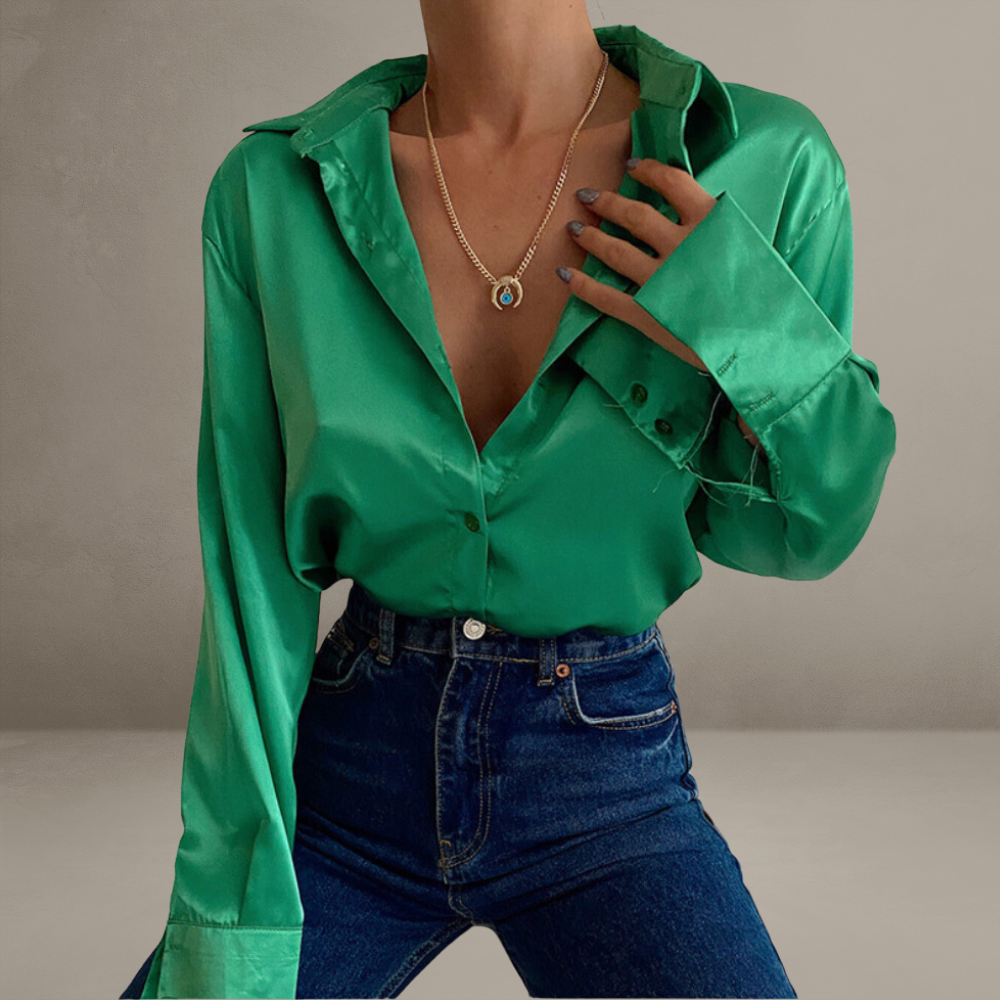 Chic en Comfortabel: De Eliza blouse is gemaakt van hoogwaardige zijde die niet alleen stijlvol maar ook aangenaam aanvoelt. Het soepele materiaal en de elegante pasvorm zorgen ervoor dat je deze blouse bij elke gelegenheid kunt dragen, van kantoor tot avond uit.