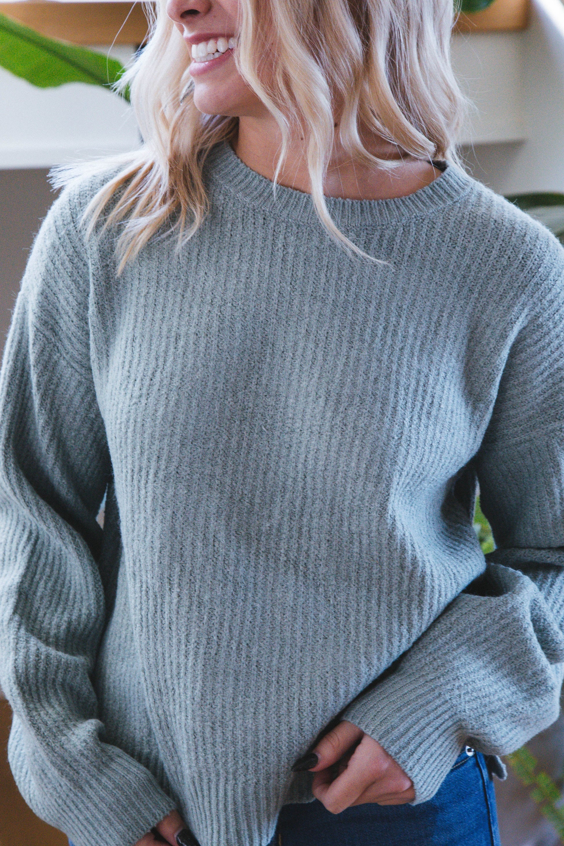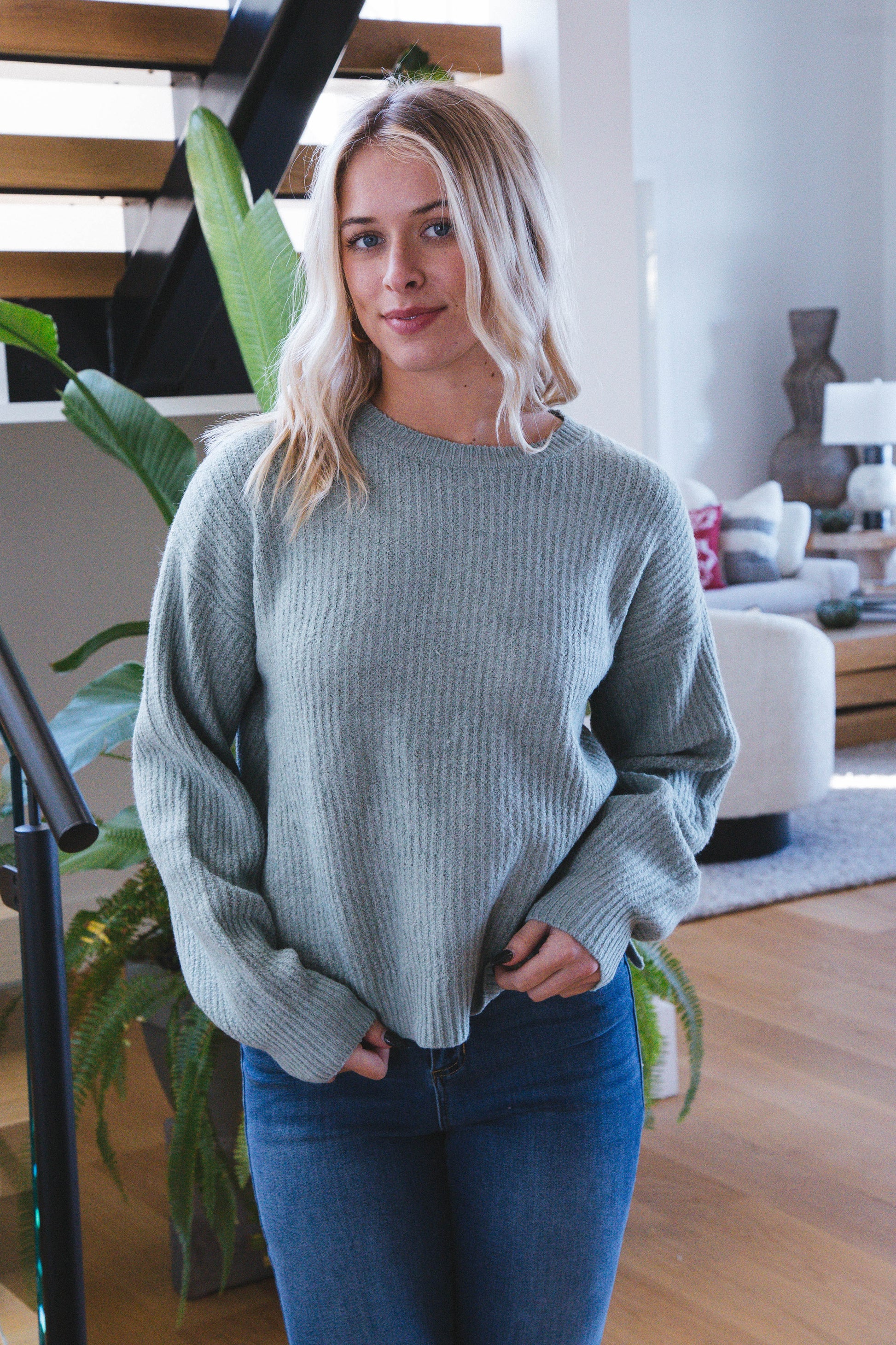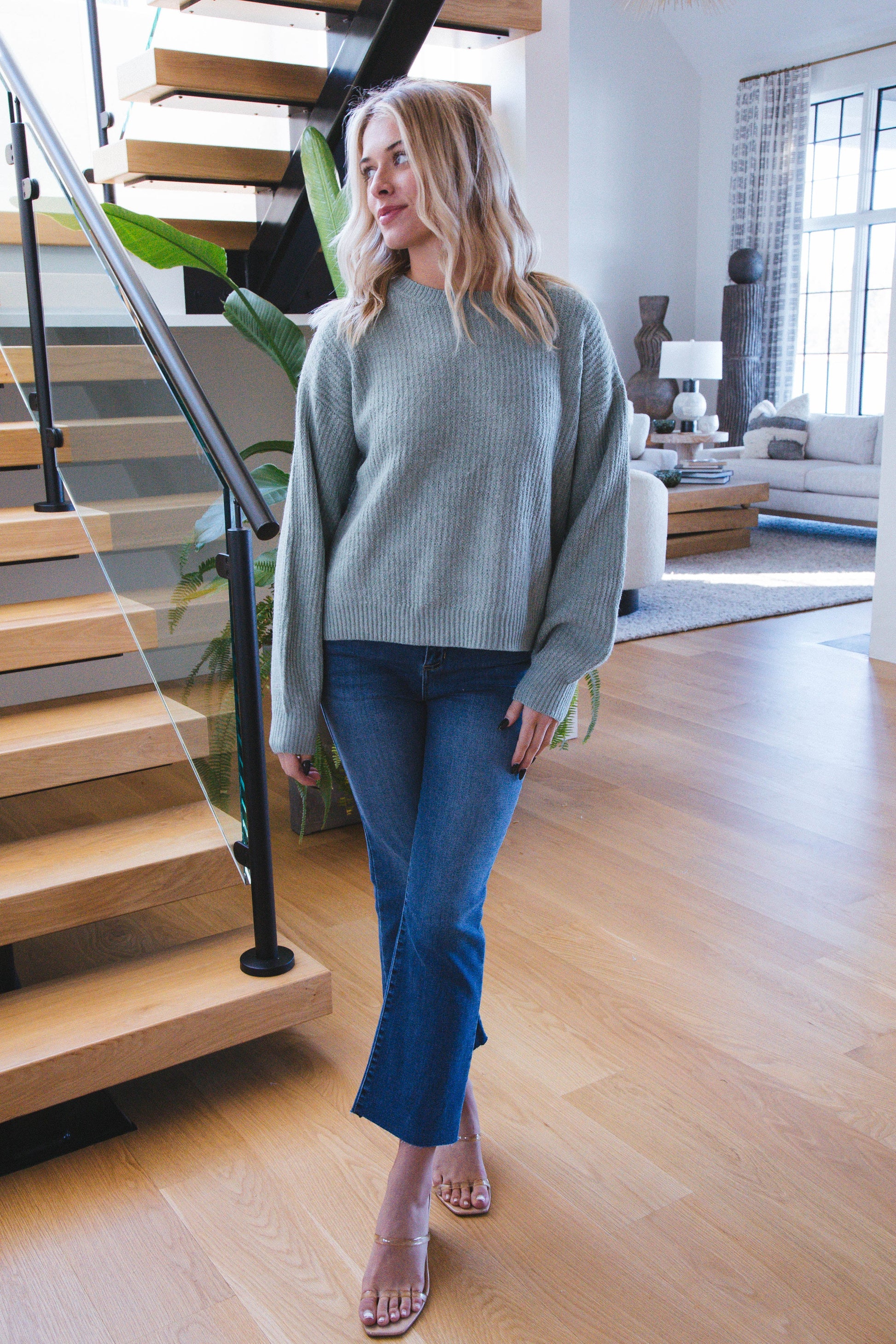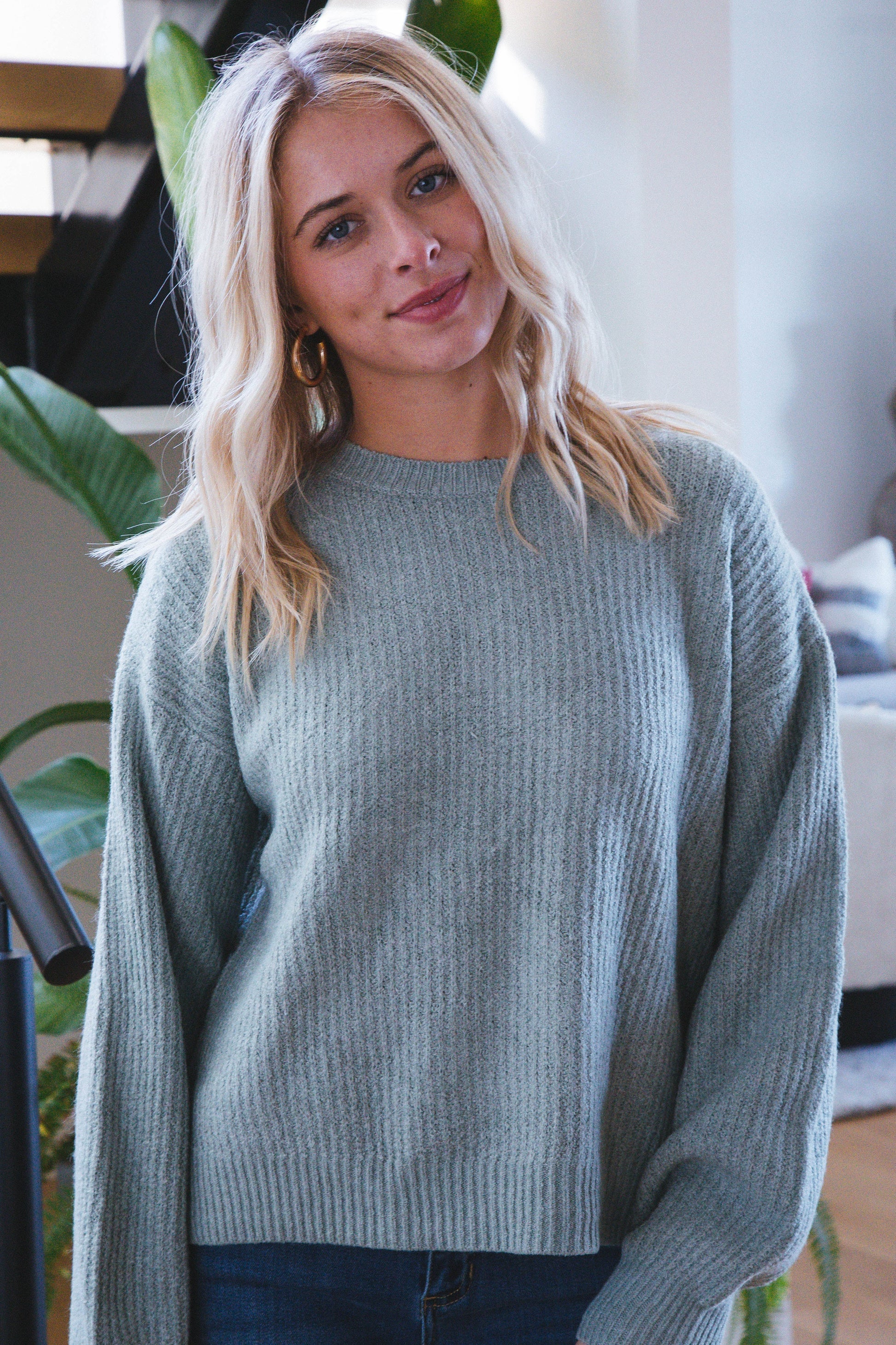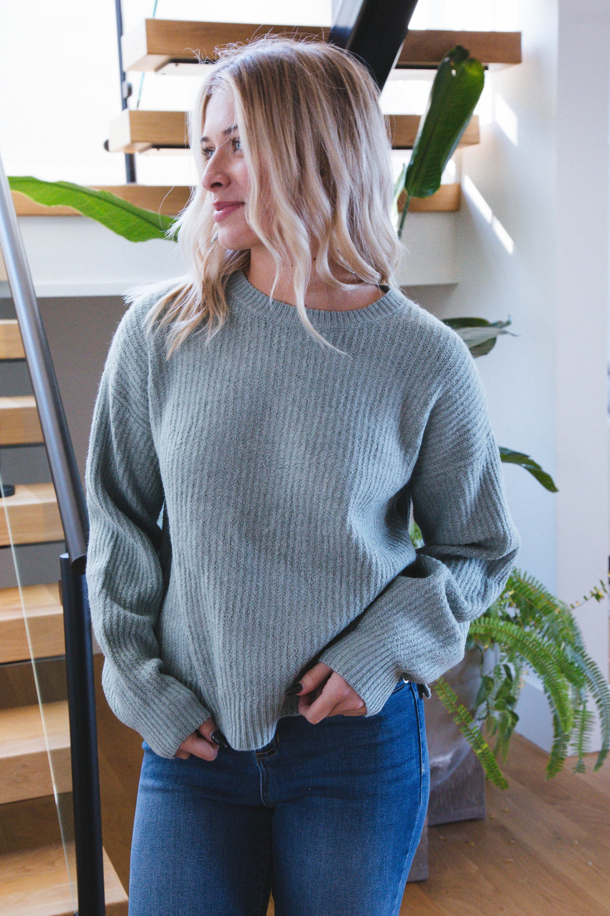 Blijf comfortabel en warm met deze Ember Drop Shoulder Trui! Bereid je voor om lekker te knuffelen in de ultrazachte ronde hals en laaghangende schouders in coole ijsberg groen.