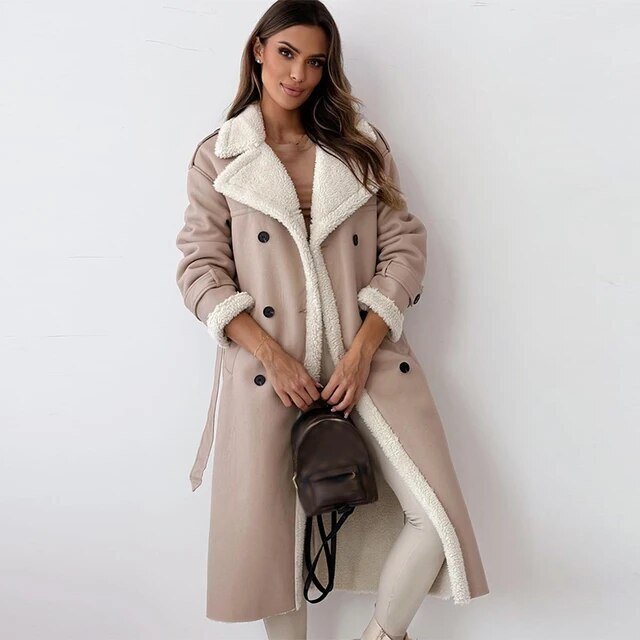 Ervaar tijdloze elegantie met Evy Elegance, de luxe leren manteljas die stijl en comfort naadloos combineert.