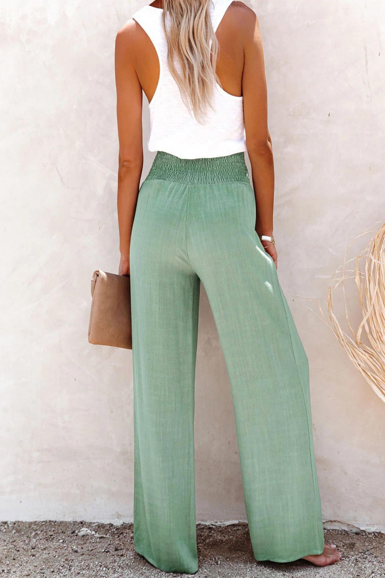 - Flatterende pasvorm – De hoge taille en wijde pijpen verlengen je benen en zorgen voor een sierlijke uitstraling.