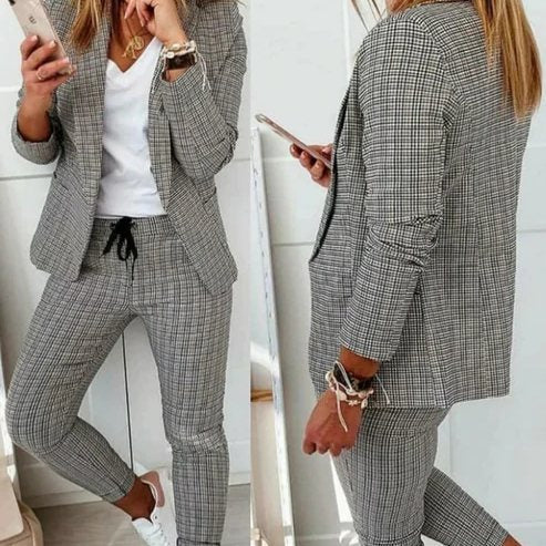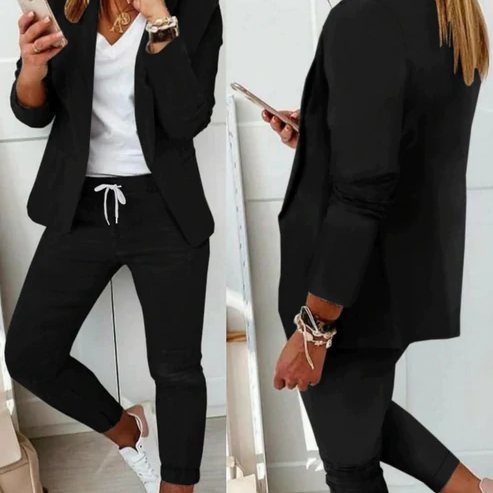 Klaar voor Elke Gelegenheid: Of je nu naar kantoor gaat, een avond uit plant, of een formele gelegenheid hebt, onze blazer set is veelzijdig genoeg voor elke setting. Combineer het met je favoriete accessoires voor een complete look.