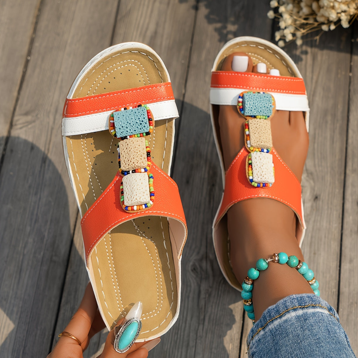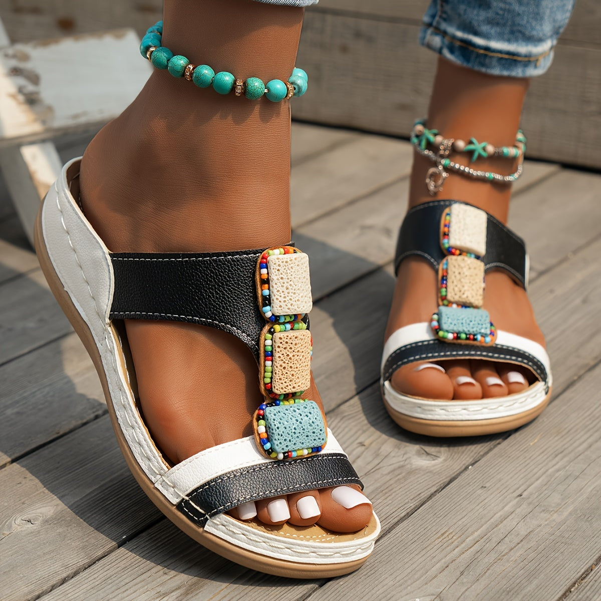 Stijlvol ontwerp voor een boho look: Het boho ontwerp van deze sandalen biedt een trendy en elegante uitstraling die je outfit accentueert. De slip-on stijl en het orthopedische ontwerp zorgen voor maximaal comfort, ideaal voor lange wandelingen en ontspannen momenten.