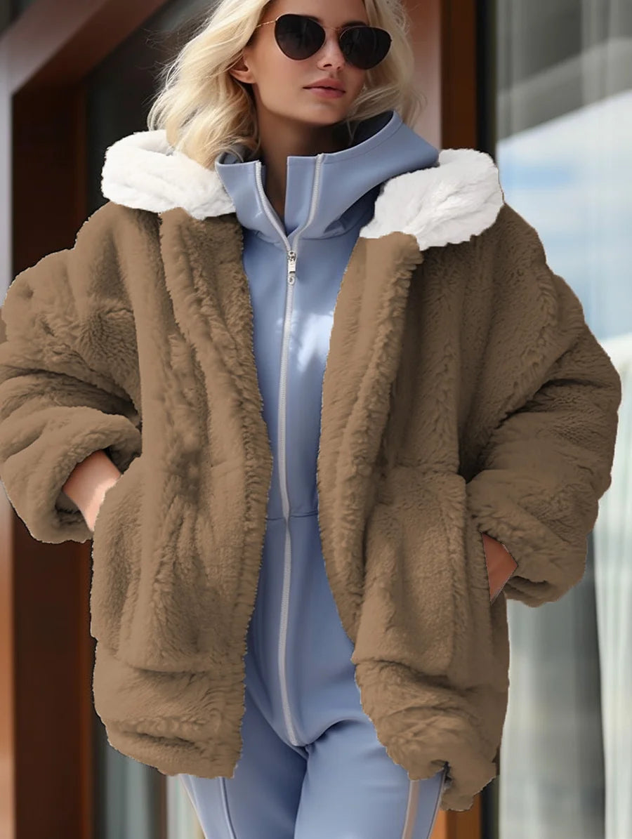 Omhul Jezelf in Ongeëvenaard Comfort: Ontdek de luxe van onze Pluche Capuchon Ritsjas. Ontworpen voor hen die zowel comfort als stijl belangrijk vinden, is deze jas een naadloze combinatie van gezellig pluchemateriaal en een modern, los ontwerp. Perfect voor kille dagen; jouw keuze voor warmte zonder in te boeten aan mode.