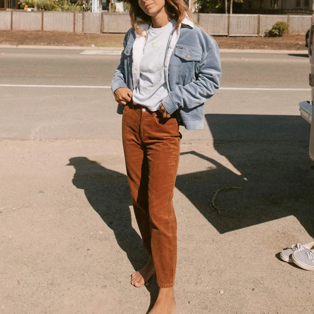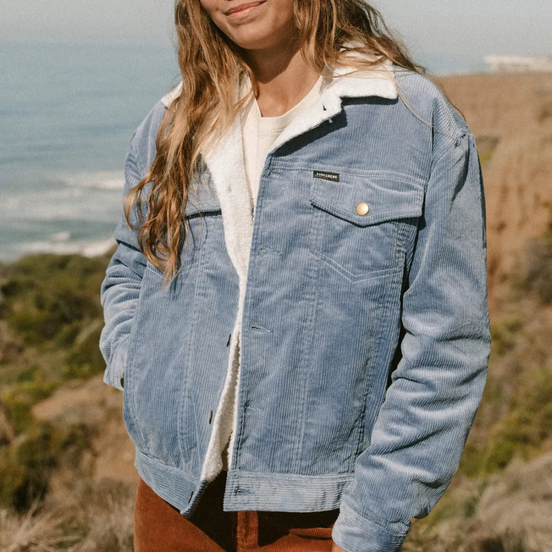Verwelkom de lente met open armen in onze Corduroy Jack. De Lapel Kraag voegt een vleugje elegantie toe aan je outfit.