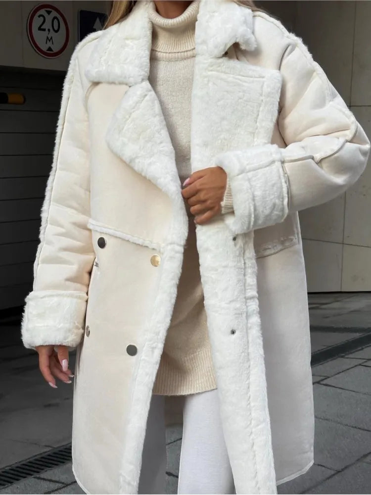 Warmte Zonder Compromis - Voel de omhelzing van onze dikke, teddy-stijl jas die je warm houdt zonder in te leveren op stijl. Het niet-elastische ontwerp zorgt voor een ontspannen, comfortabele pasvorm die elegant over elke outfit valt.