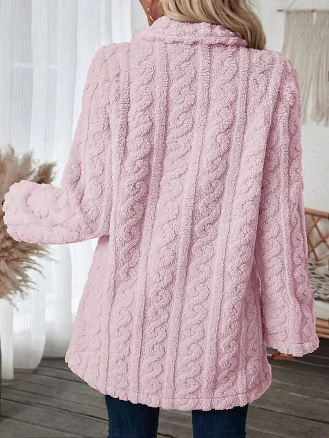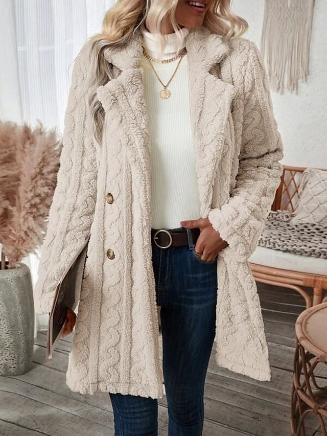 Gezellige Elegantie: Luxe Dames Winterjas met Sherpa Voering en Chique Revers met Zakken