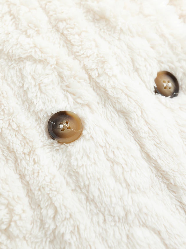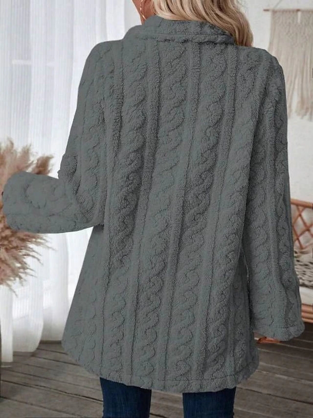 Omarm de Winter in Stijl & Comfort Wikkel jezelf in onze Gezellige Elegantie jas, een luxueuze combinatie van warmte en mode. Deze dames winterjas heeft een pluche sherpa voering en een zachte thermische teddy buitenkant. Het is meer dan een jas; het is een warme omhelzing op kille dagen.