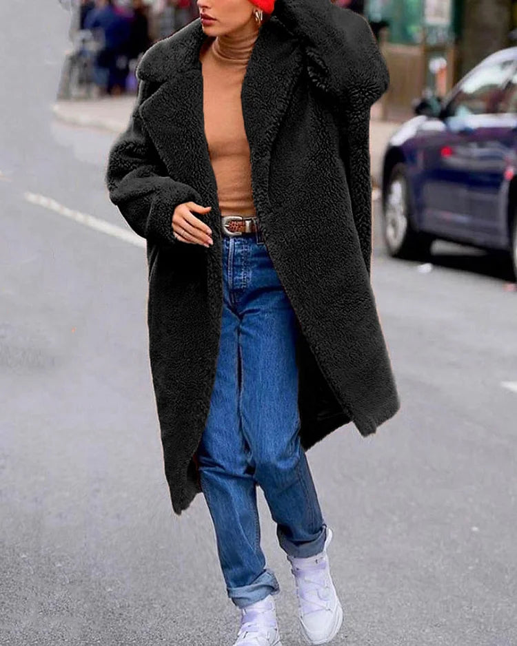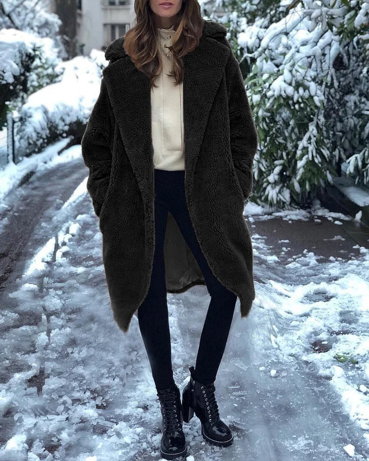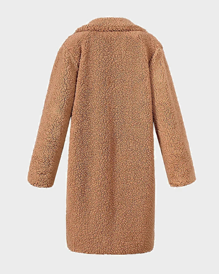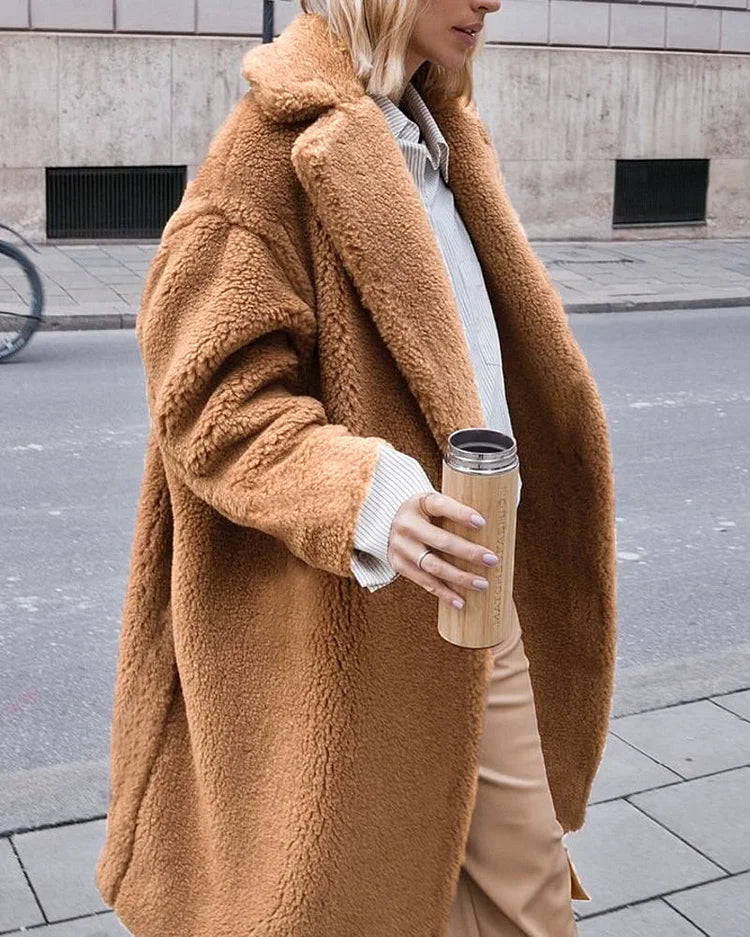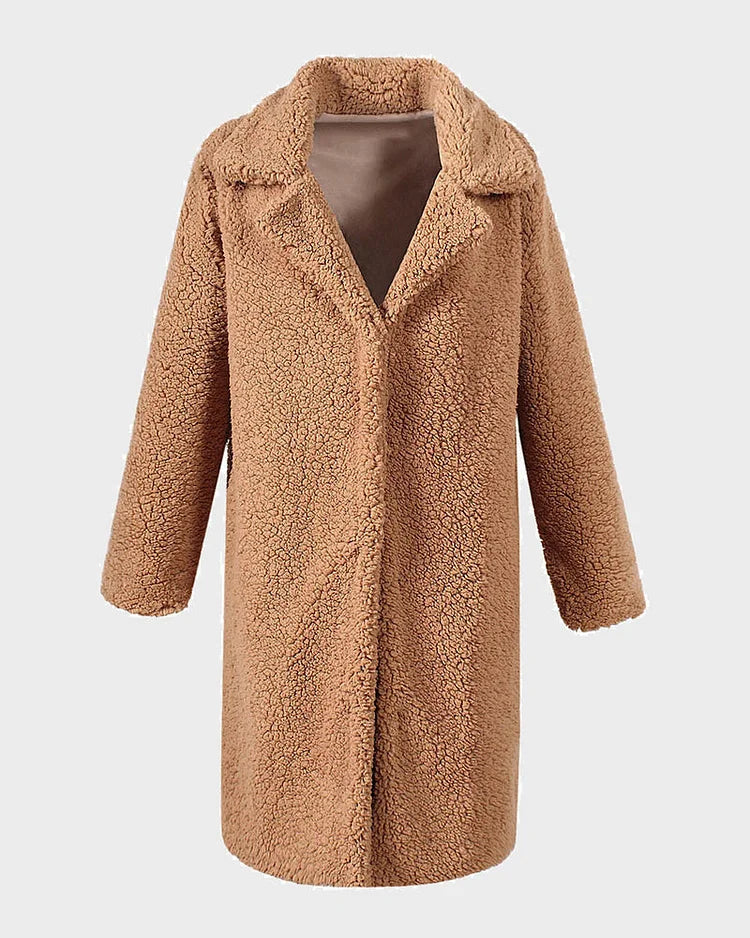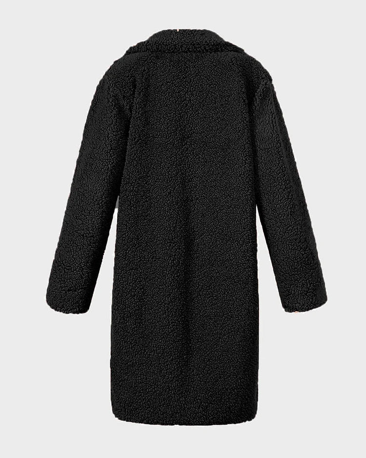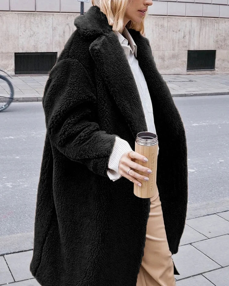 Gezellige Elegantie: Pluche Katoenmix Teddy Overjas met Chique Open Voorkant