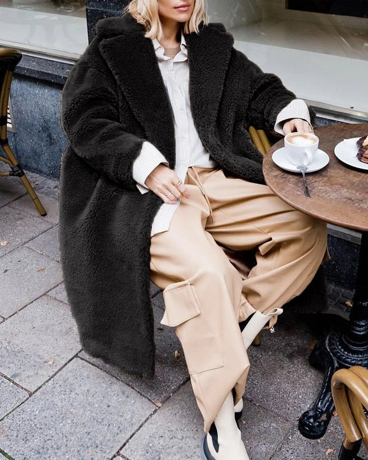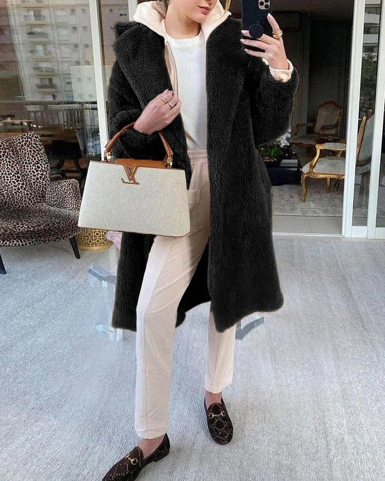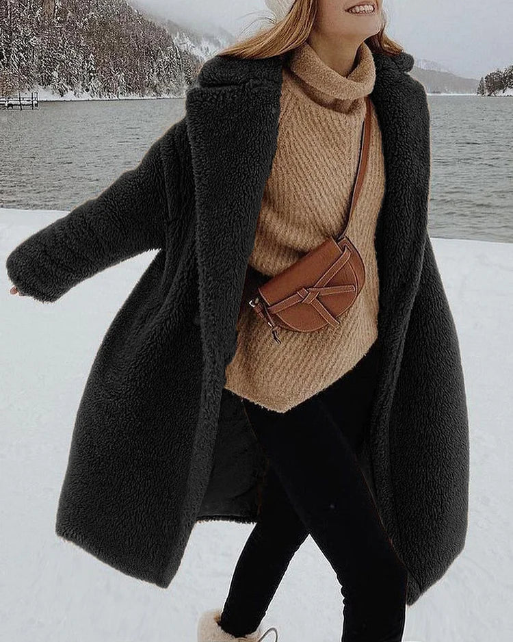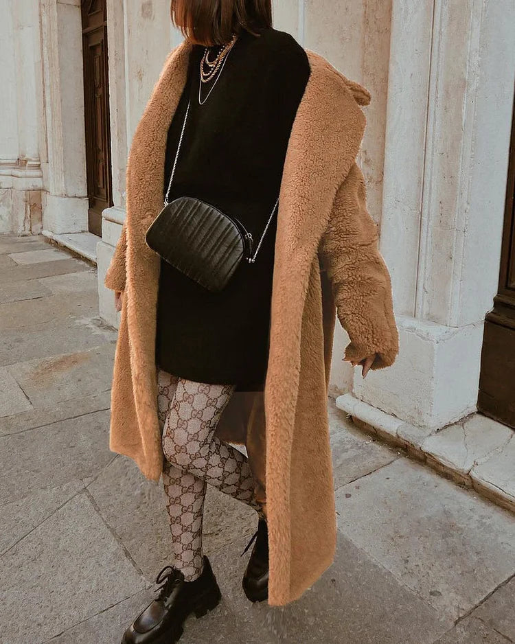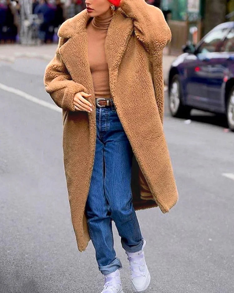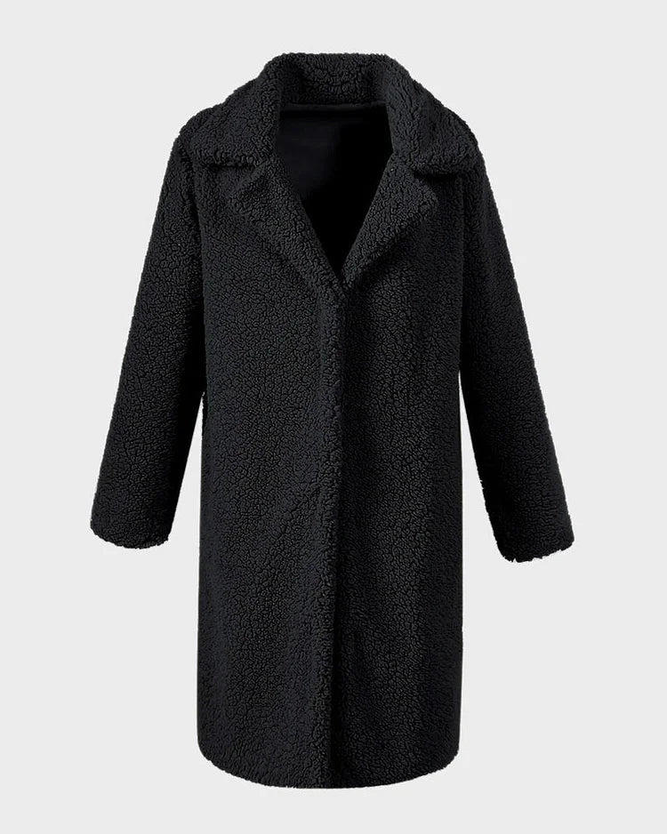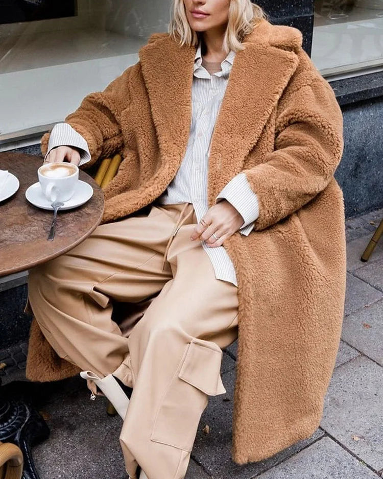 Gezellige Elegantie: Pluche Katoenmix Teddy Overjas met Chique Open Voorkant