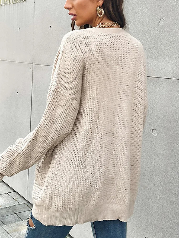 Gezellige Wafelweef Cardigan: Knoopsluiting, Vleermuismouwen