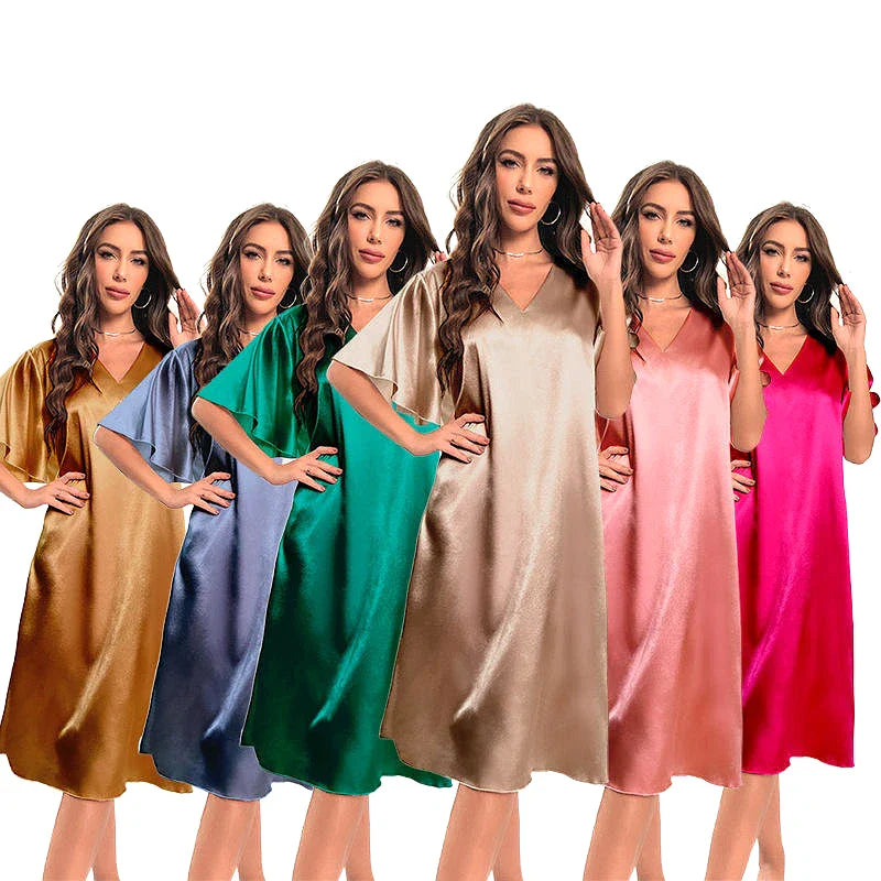 Stijlvol en Praktisch: Dit sexy nachthemd is niet alleen comfortabel, maar ook flatterend met zijn diepe gouden tint en satijnen afwerking. Plus size opties verzekeren dat elke vrouw zich zelfverzekerd en mooi kan voelen in haar homewear.
