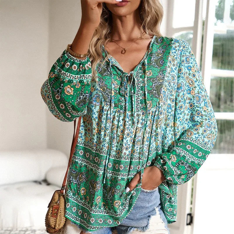 Lente Schoonheid Ontwaakt: Deze blouse met een levendig groen printontwerp en een casual lange mouwen stijl, straalt een fris en modieus gevoel uit dat ideaal is voor het nieuwe seizoen. De losse pasvorm zorgt voor een flatterend silhouet dat comfort en stijl moeiteloos verenigt.