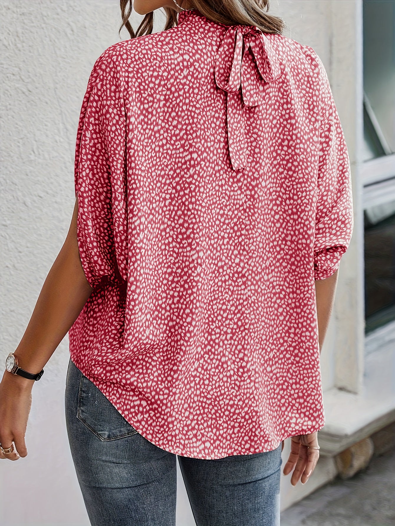 Casual Split Mouwen De split mouwen geven een speelse en toch elegante touch aan de blouse, terwijl de losse pasvorm zorgt voor ultiem comfort. Het ademende materiaal maakt het ideaal voor zowel lente- als herfstdagen.