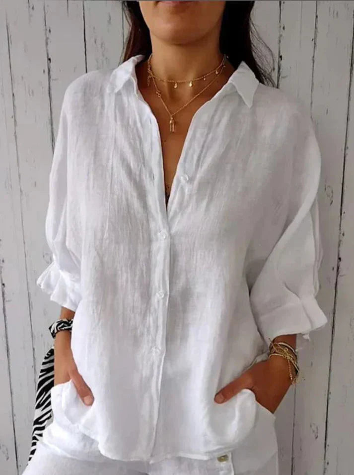 Het overhemd van katoen en linnen, aan de achterkant vastgebonden, is de perfecte keuze voor een stijlvolle en casual look. Dit overhemd overtuigt door de hoogwaardige materialen en de unieke strik op de rug, waardoor een modern en flatterend silhouet ontstaat. Ideaal voor warme dagen, het shirt combineert comfort met een modieus accent