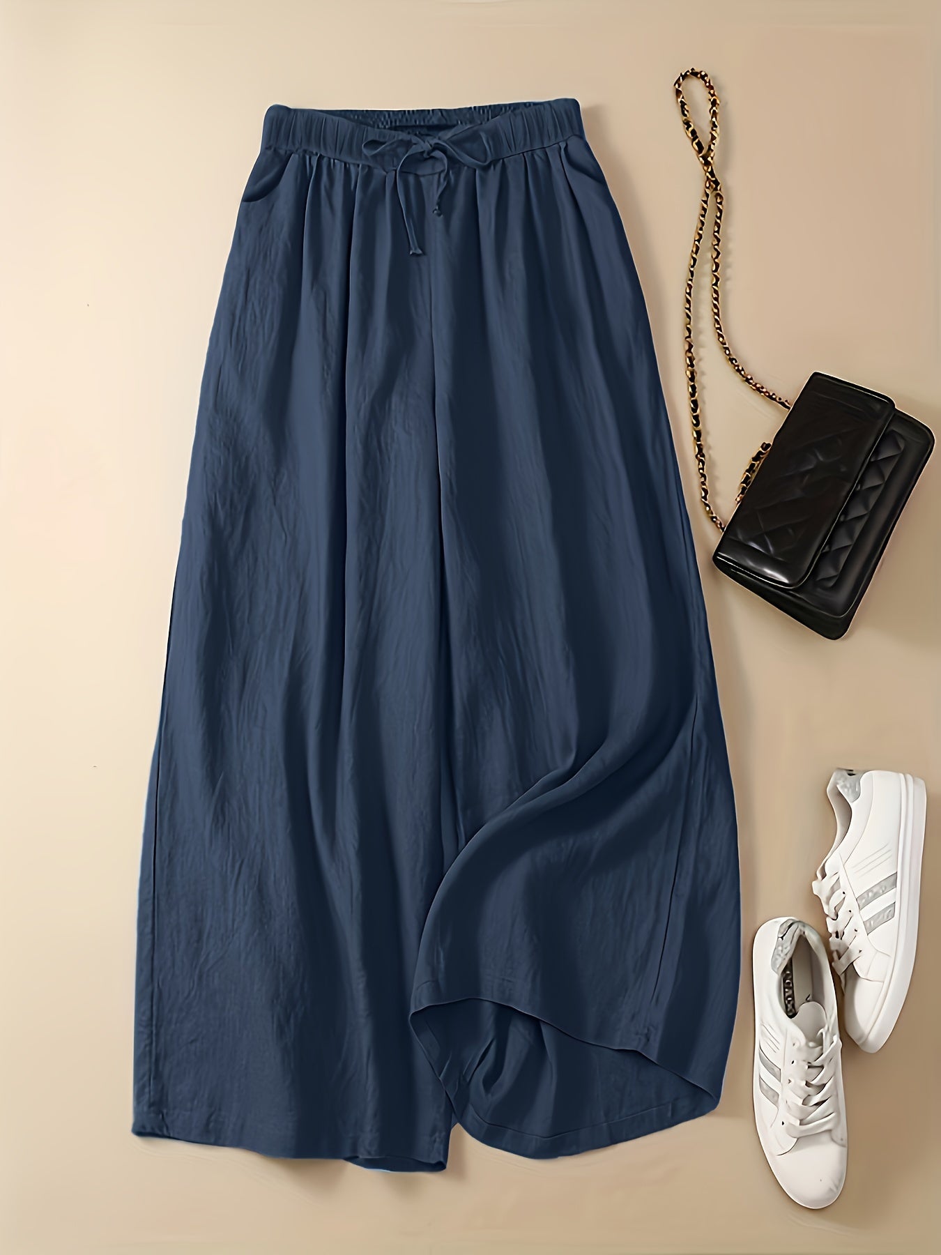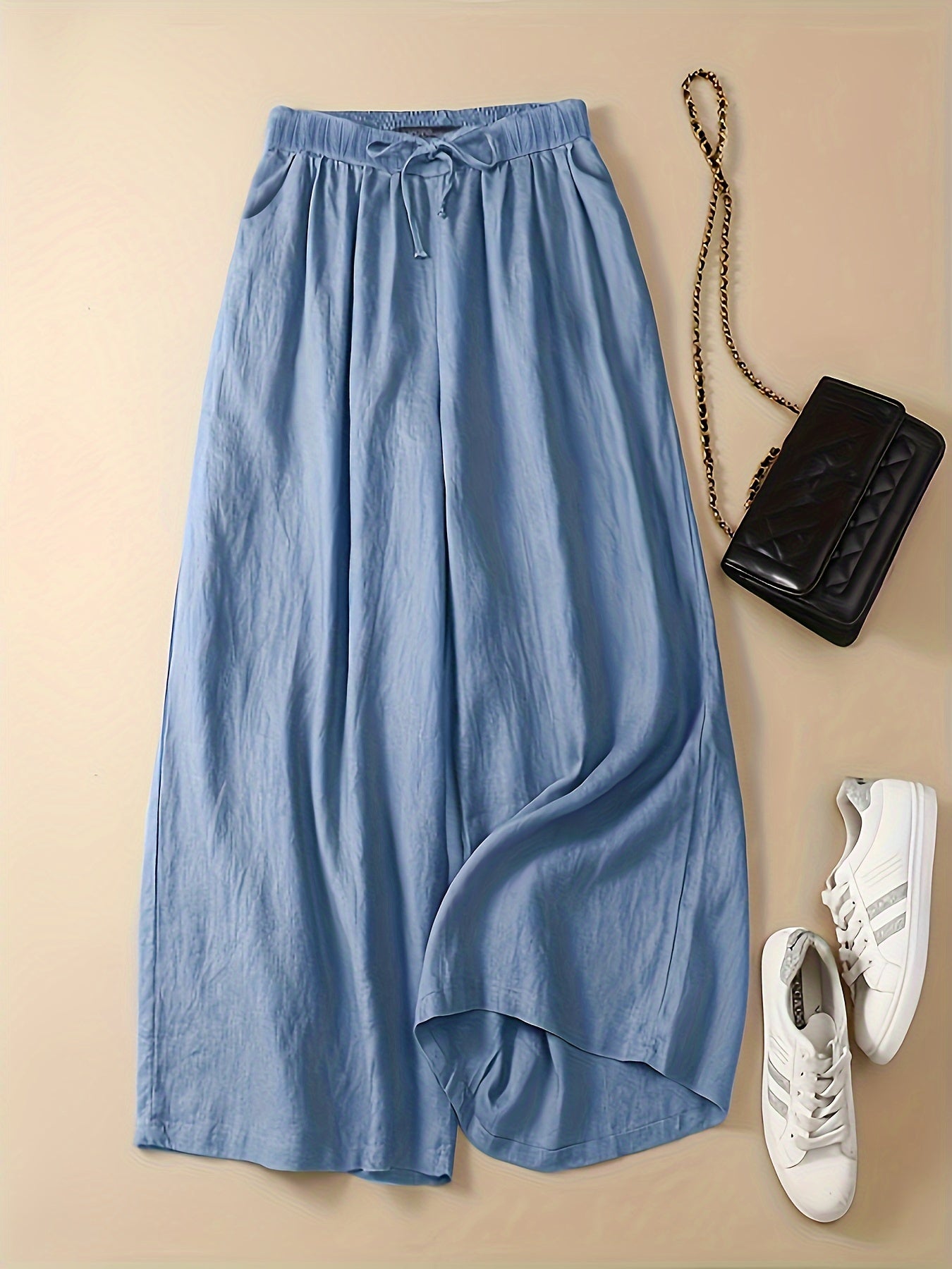 - Stijl: Casual plus size broek met wijde pijpen en elastische tailleband.