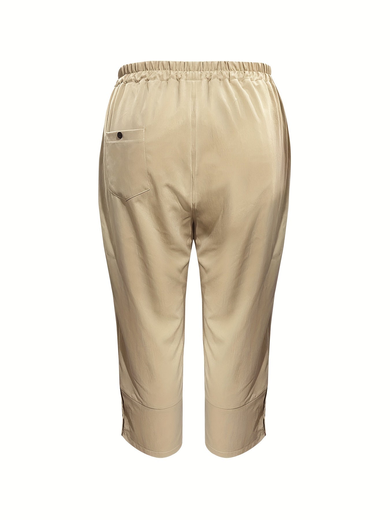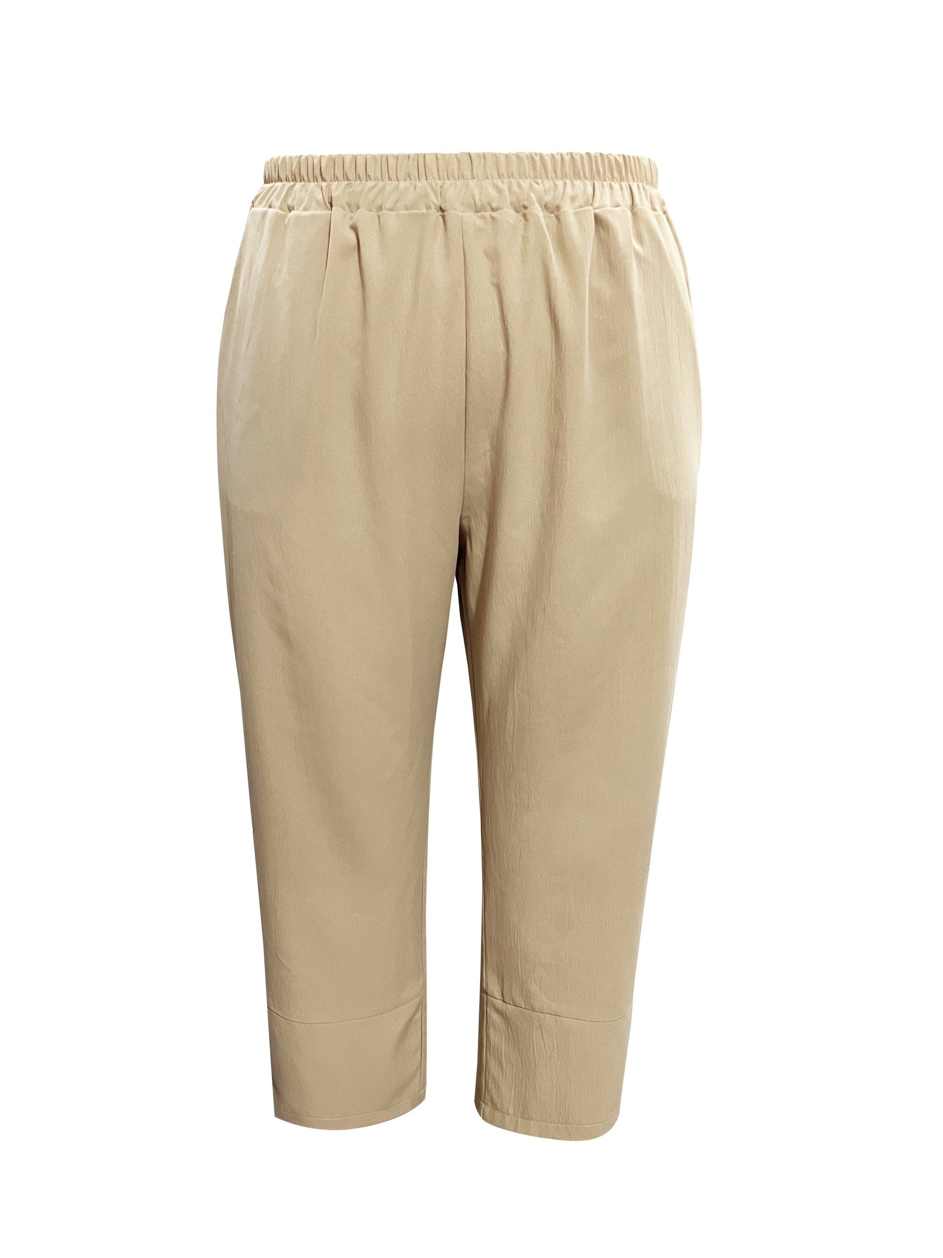 Geniet van het ultieme comfort en stijl met onze Khaki Rechte Broek. Deze casual broek met elastische taille is perfect voor de lente en zomer, ontworpen om elke plus size vrouw zelfverzekerd en modieus te laten voelen.