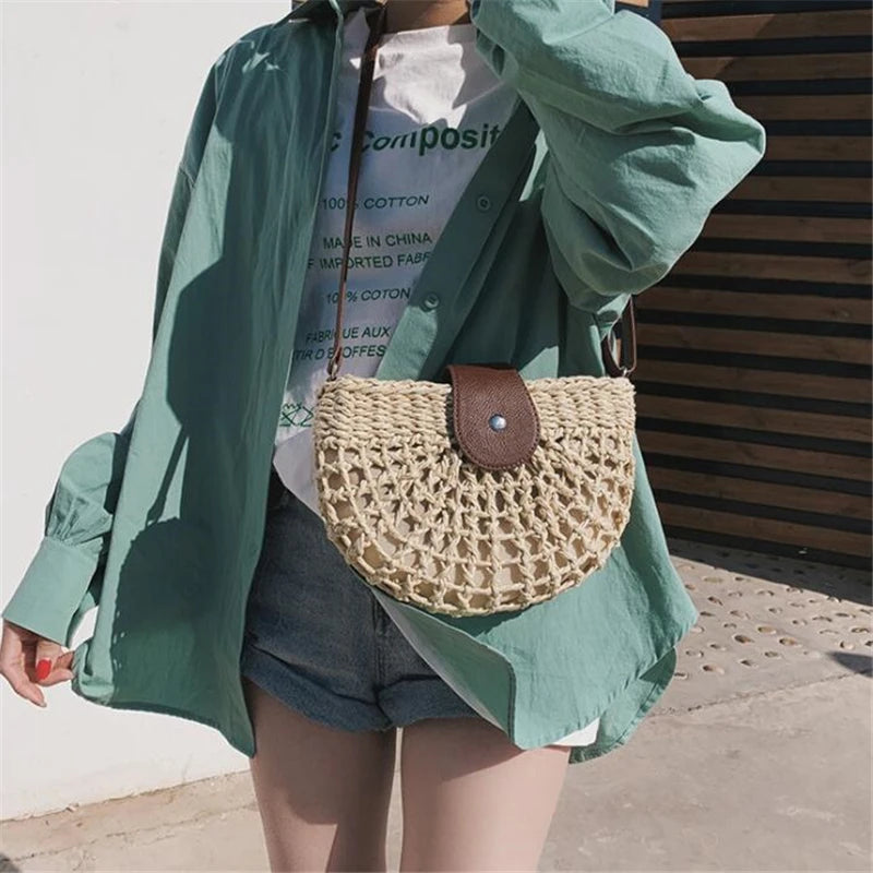 Voeg een vleugje Bohemia toe aan je zomerstijl met onze Khaki Rieten Zadeltas - Berta. Deze handgemaakte tas is de perfecte keuze voor de modebewuste vrouw die houdt van een unieke, natuurlijke uitstraling.