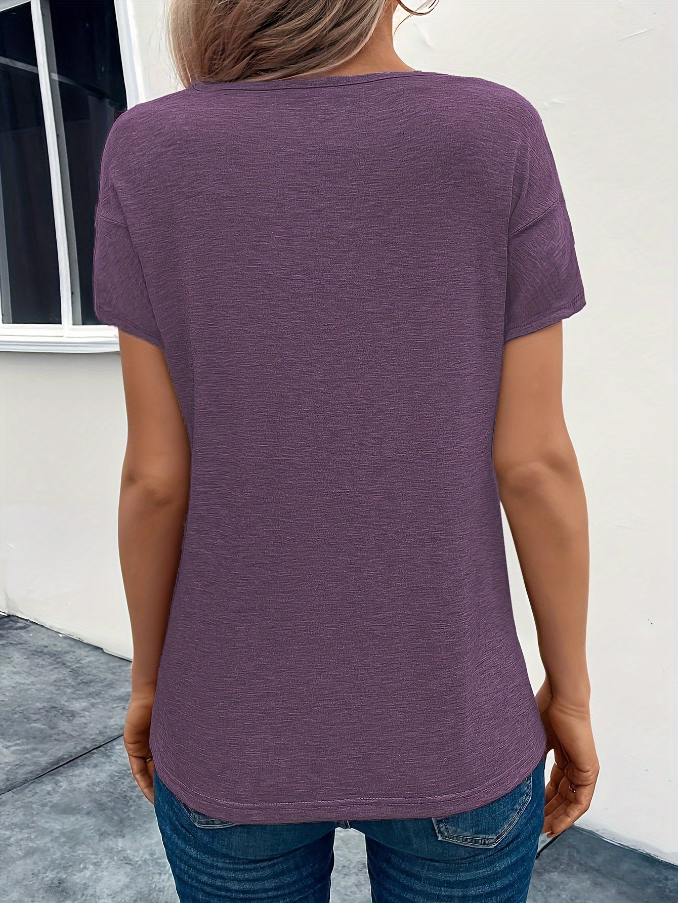 Licht en Luchtig: Gemaakt van zachte, ademende stoffen, biedt dit T-shirt het comfort dat je nodig hebt tijdens de warmere maanden. De losse pasvorm zorgt ervoor dat je je de hele dag door vrij kunt bewegen, terwijl de V-hals je een flatterende, vrouwelijke uitstraling geeft. Dit T-shirt is een must-have voor elke garderobe die draait om comfort en stijl.