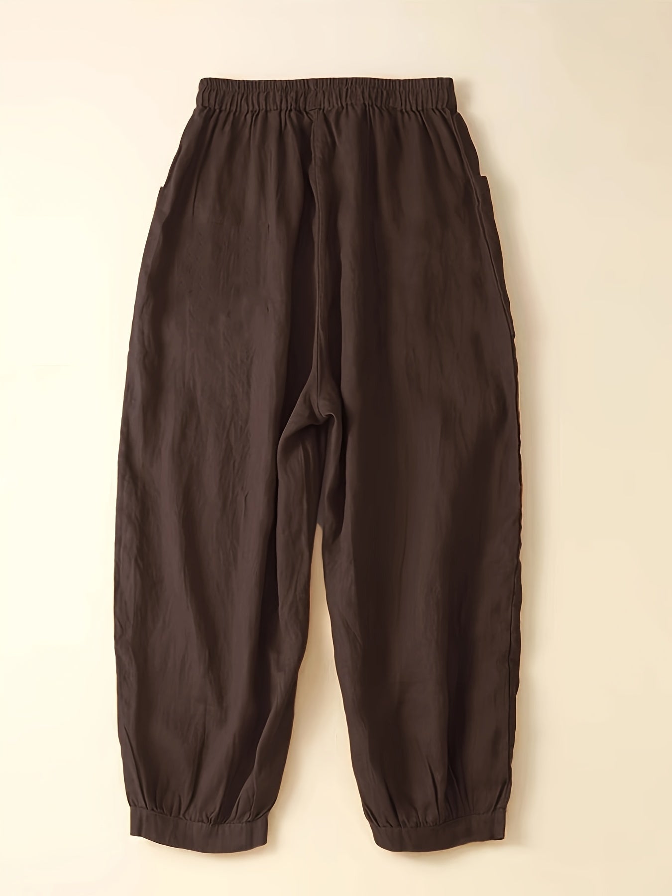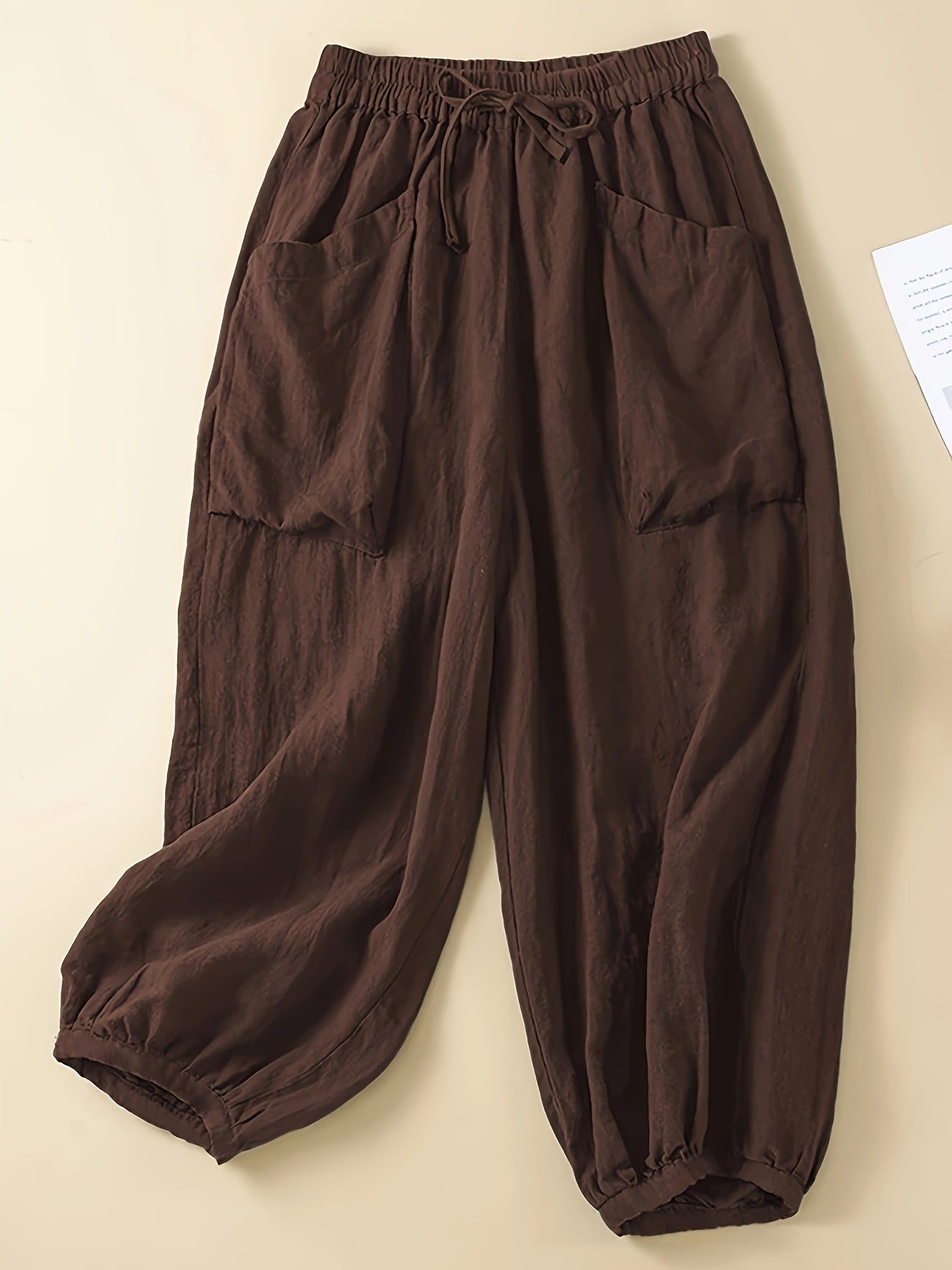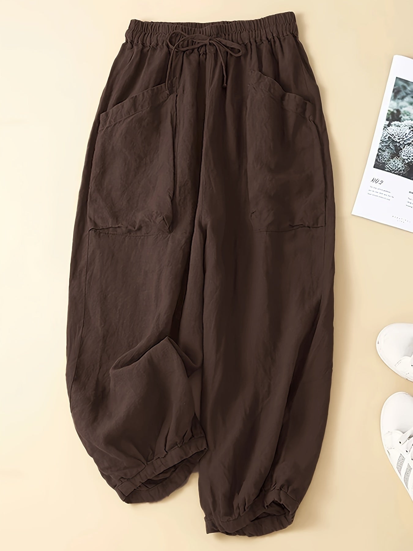 - Stijl: Casual plus size baggy broek met elastische tailleband en handige zakken.