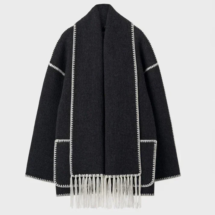 Het L'aurablend sjaaljack van wolmix is de perfecte keuze voor een elegante en comfortabele look. Deze jas maakt indruk met zijn zachte wolmixstof en het stijlvolle sjaalontwerp, dat een warm en aantrekkelijk silhouet creëert. Het L'aurablend jack is ideaal voor koele dagen en combineert comfort met tijdloze chic.