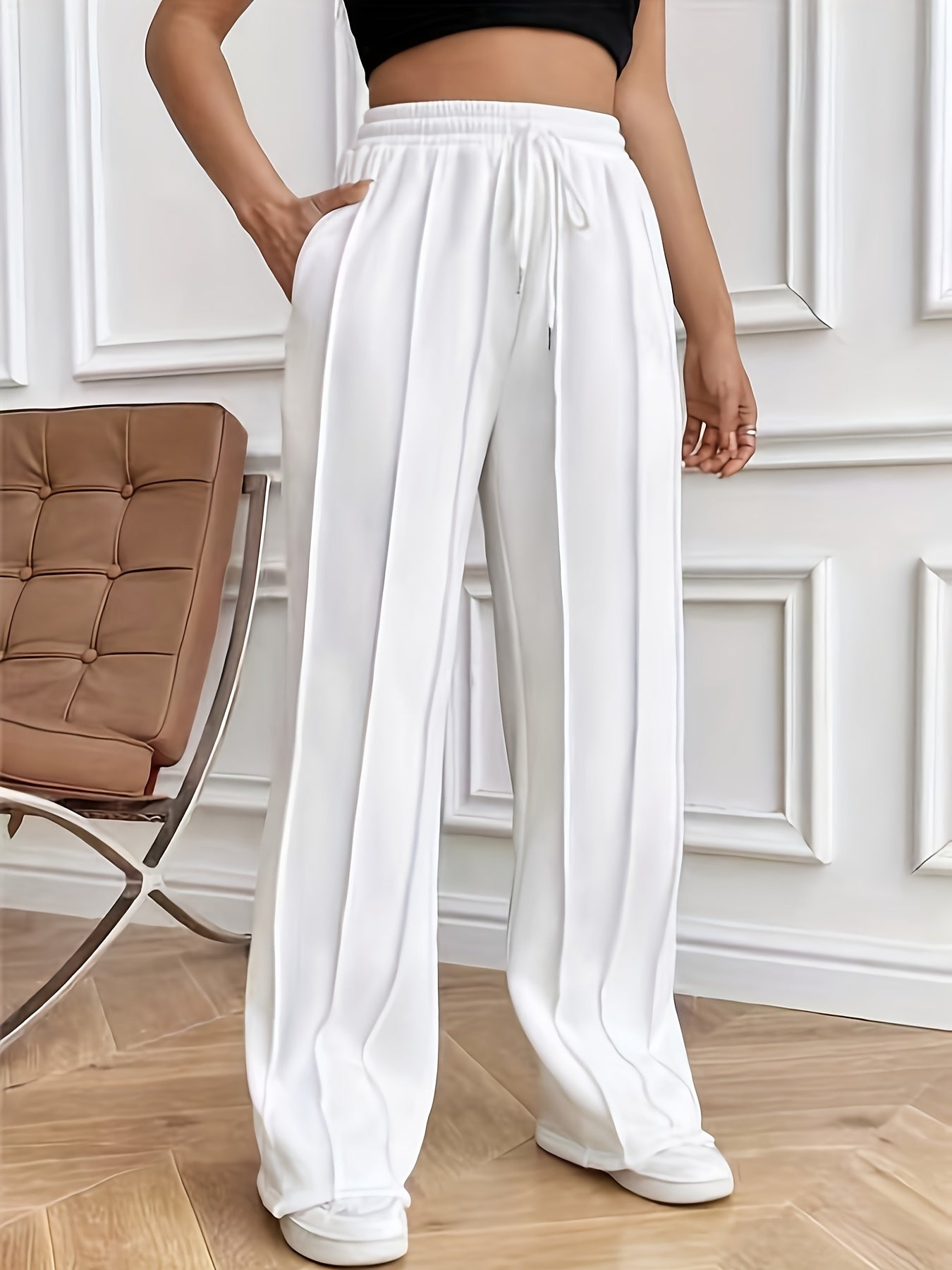 Comfortabel en Stijlvol Onze pintuck joggingbroek biedt een perfecte combinatie van comfort en elegantie. De rechte pijpen en pintuck details zorgen voor een flatterende pasvorm, terwijl de trekkoord tailleband ultiem comfort biedt.