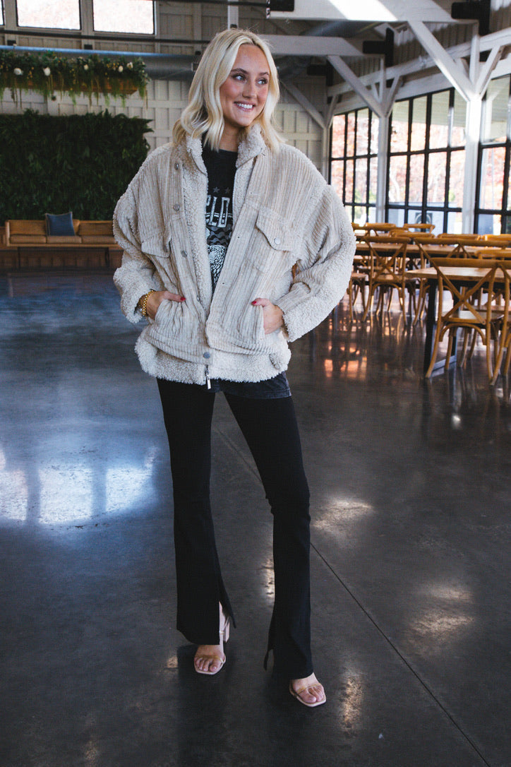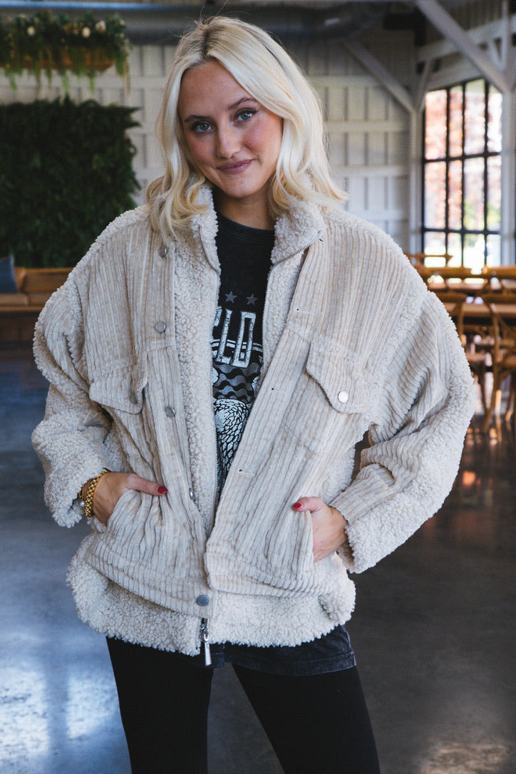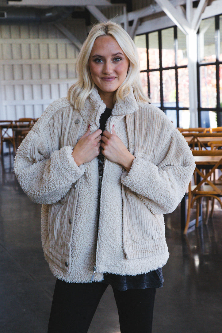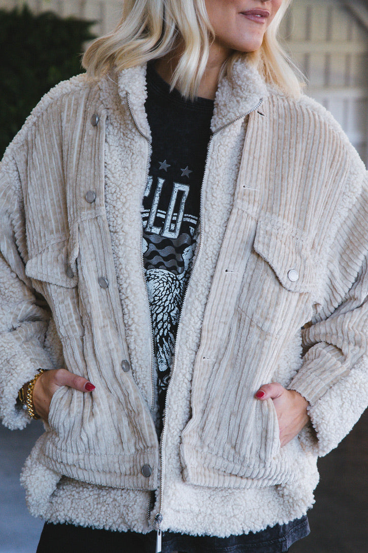 Ervaar ongeëvenaarde warmte en stijl met onze Wide Wale Corduroy & Sherpa Jas, Double Glazed. Speciaal ontworpen voor degenen die kwaliteit waarderen, combineert deze jas de elegantie van corduroy met de gezelligheid van sherpa voering. Blijf warm in koud weer terwijl je een modieuze indruk maakt. Perfect voor stedelijke avonturiers en trendsetters. Upgrade nu je wintergarderobe!