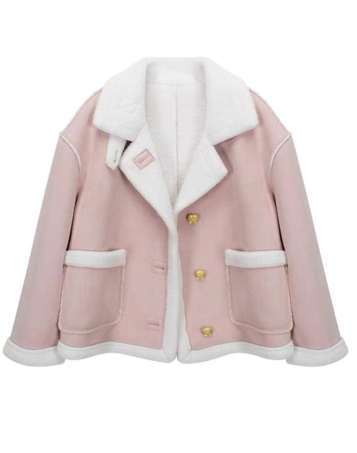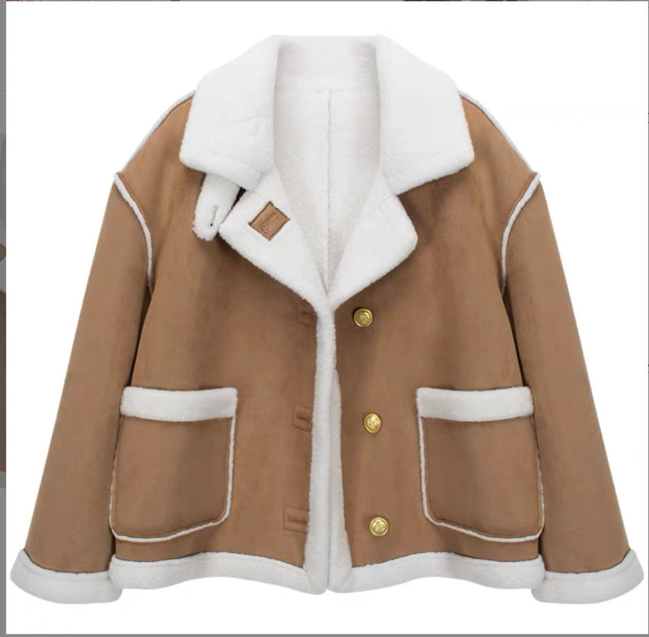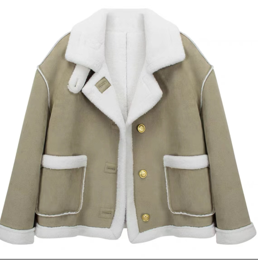 Ongeëvenaarde Elegantie: Omarm verfijning als nooit tevoren met onze shearling fleece jas, voorzien van prachtige suède accenten.
