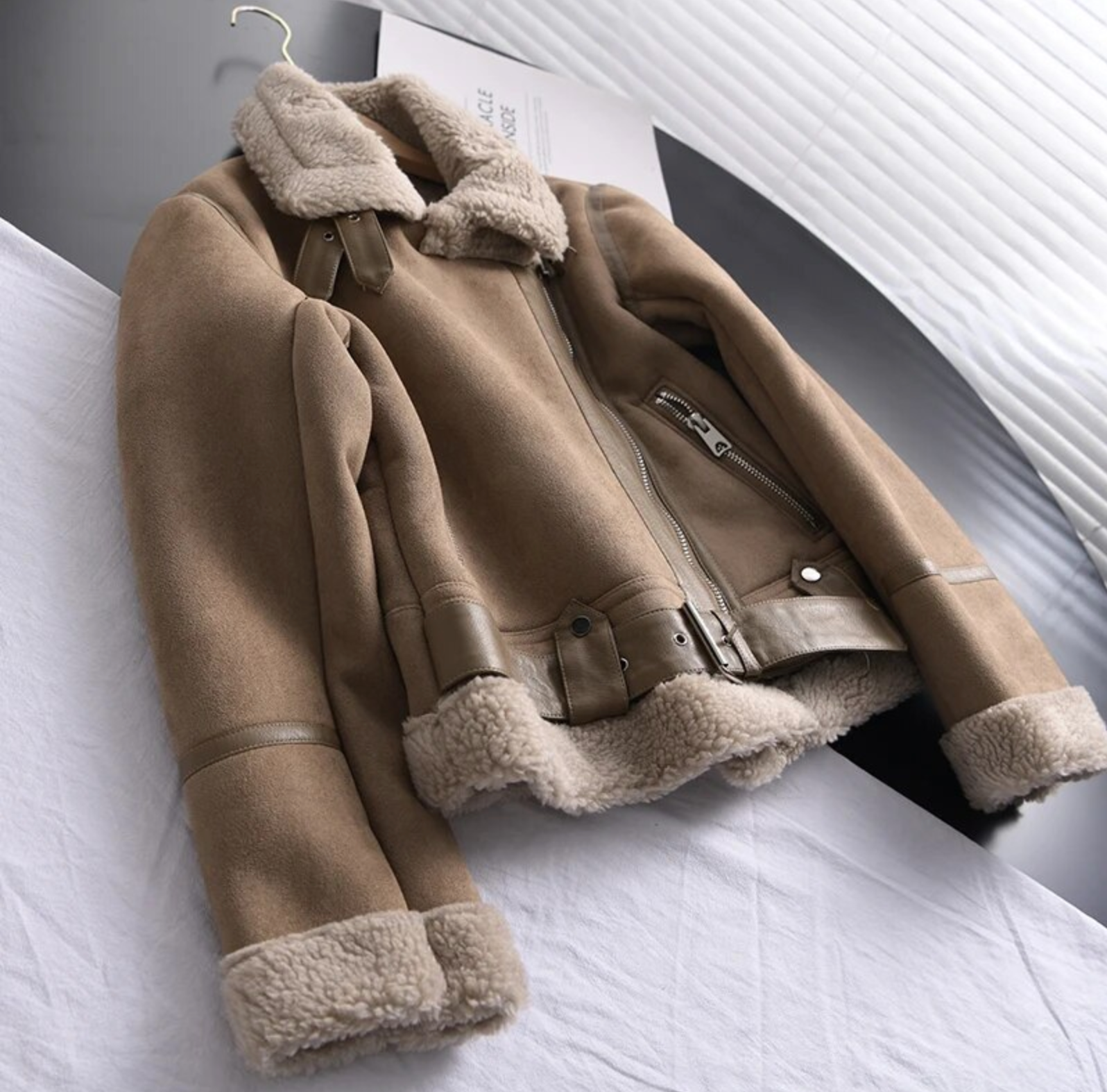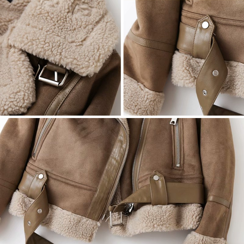 Verrijk Je Garderobe: Stap in een wereld van gezellige elegantie. De boterzachte sherpa voering streelt zachtjes je huid, terwijl de gladde leren buitenkant een krachtig mode-statement maakt. Perfect voor wie het fijnere waardeert in het leven.