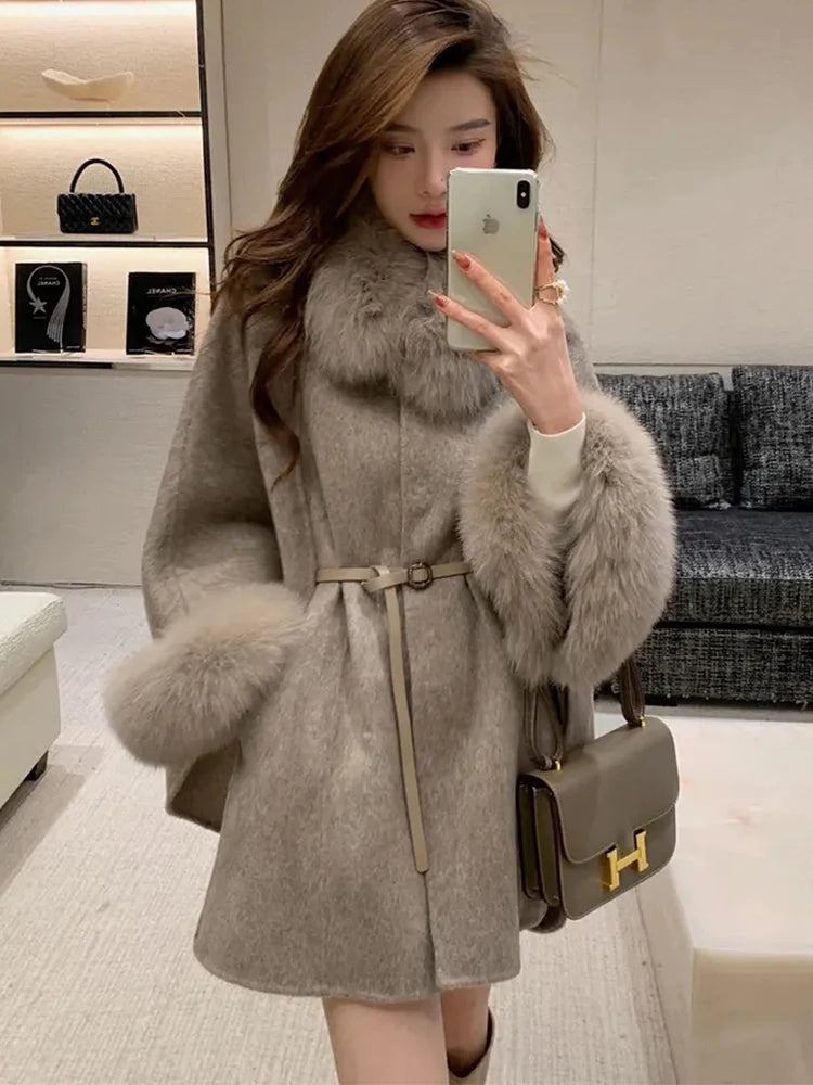 Voel het Verschil: Ervaar de superieure kwaliteit van wollen stof en vossenbont die u in comfort hult.
