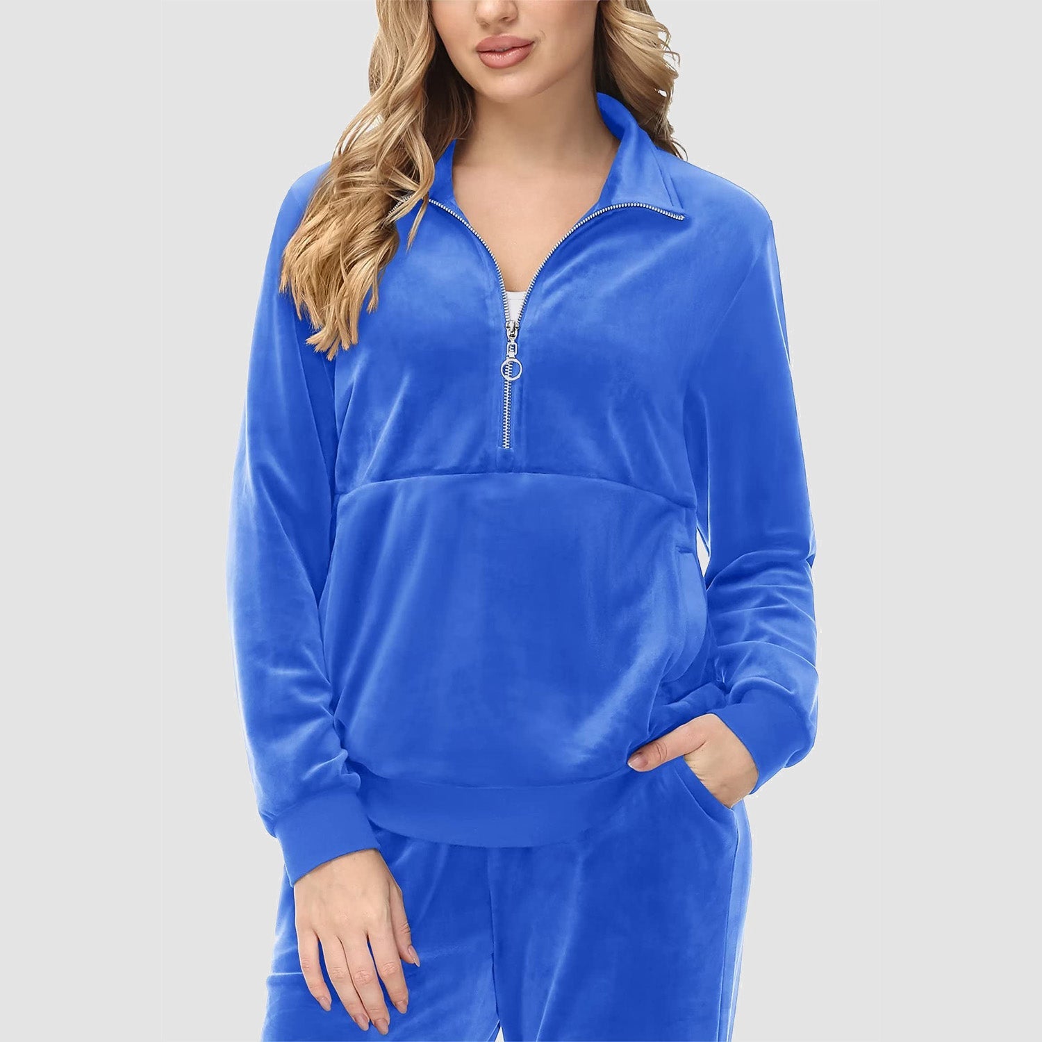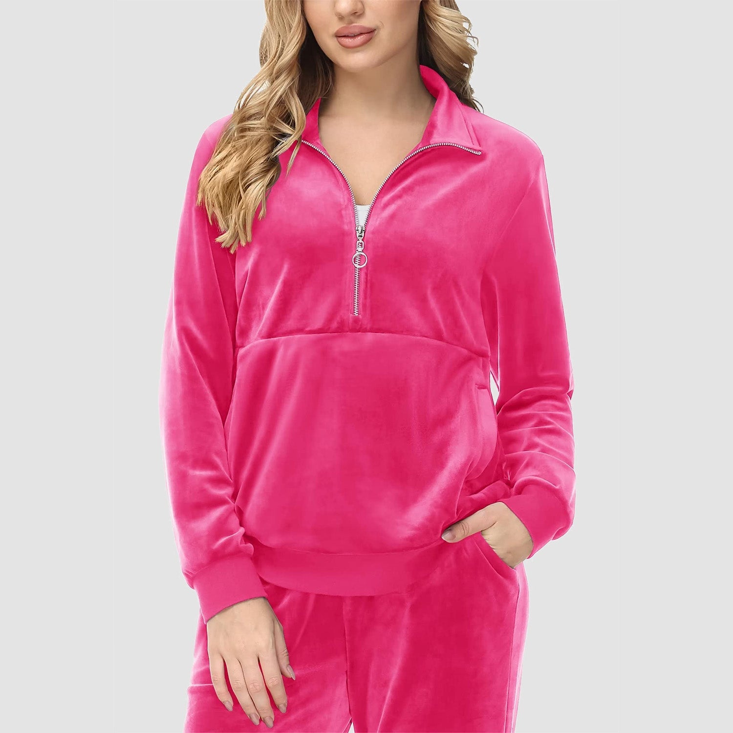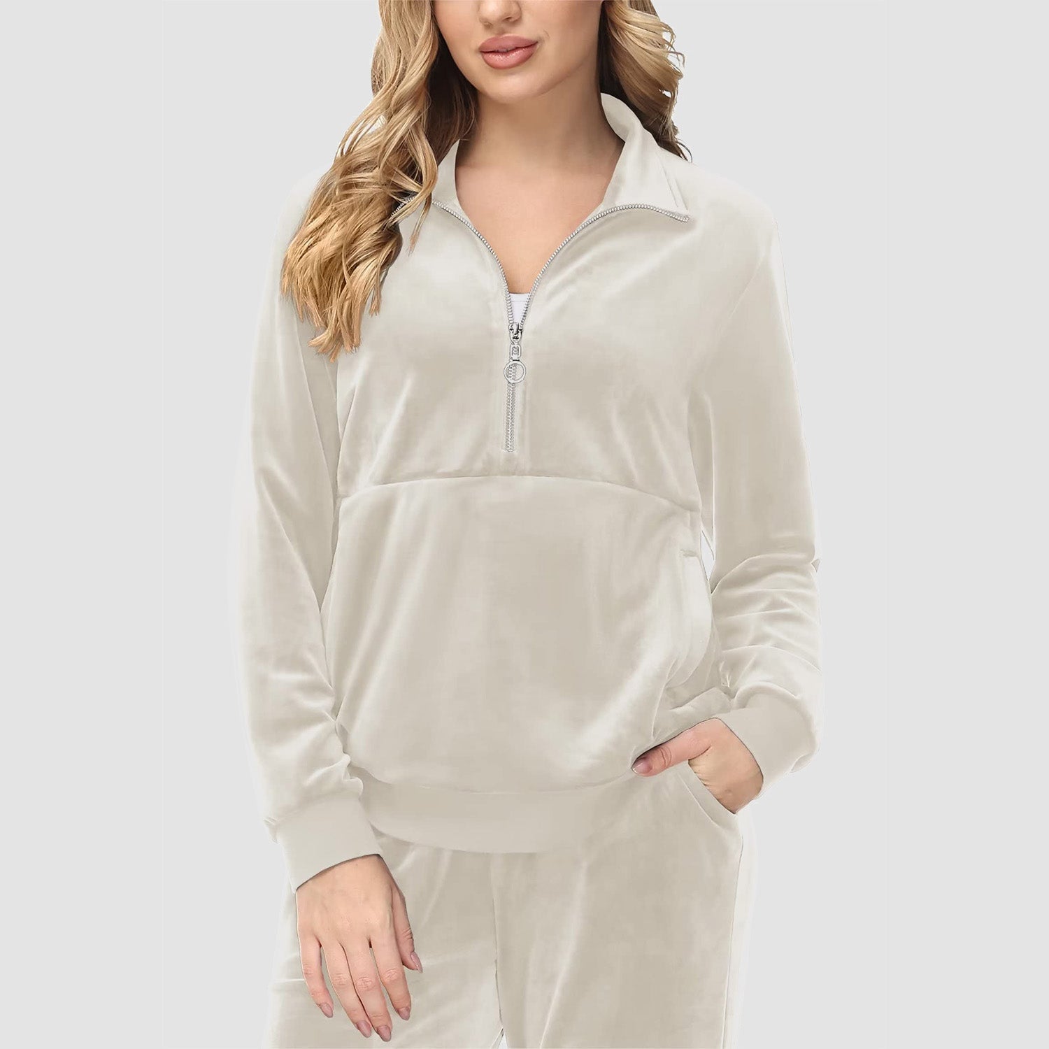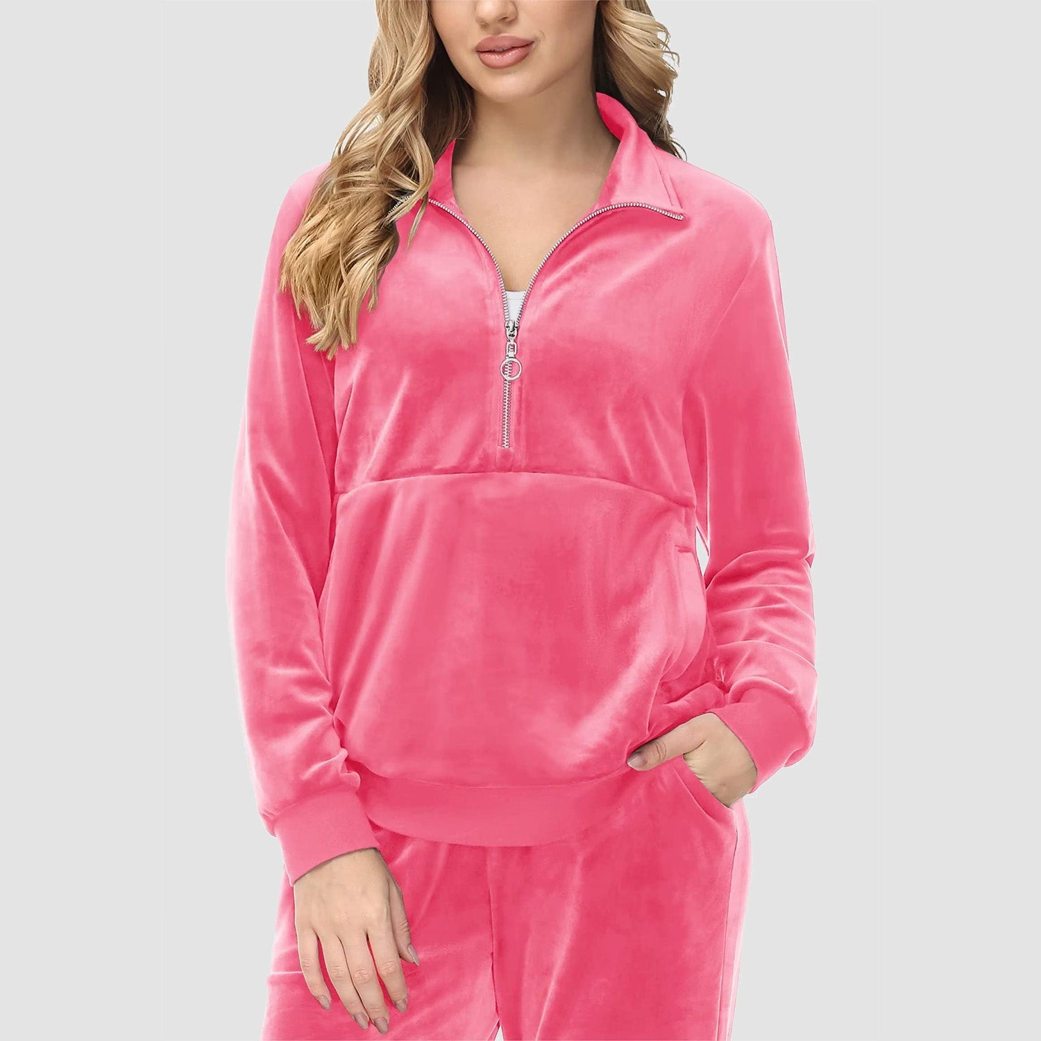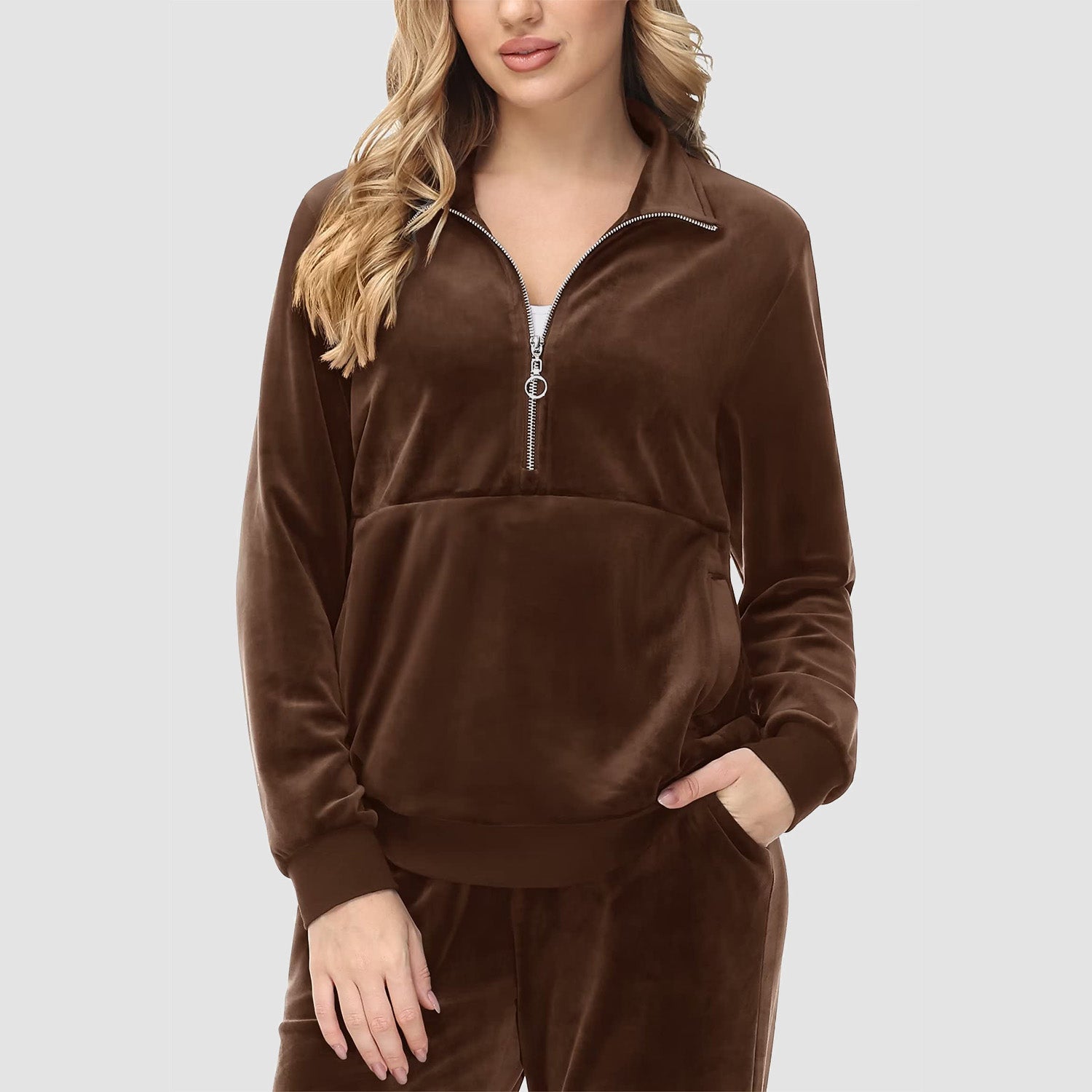 Verrijk Je Dagelijks Leven: Ontworpen met een stijlvolle half-rits, biedt het gemak en een vleugje verfijning. De lange mouwen en het velours materiaal zorgen voor een elegante uitstraling, waardoor je opvalt in elke omgeving.