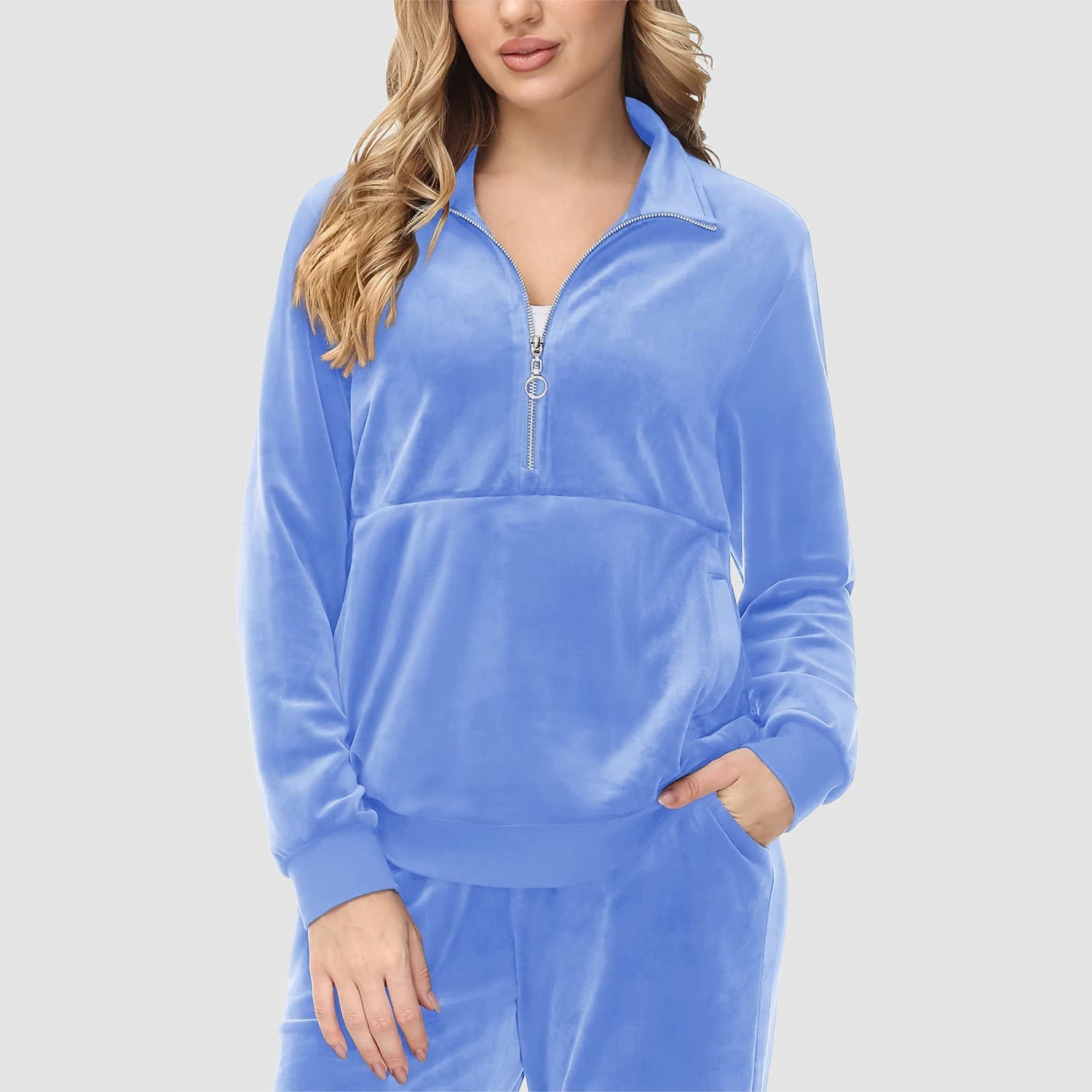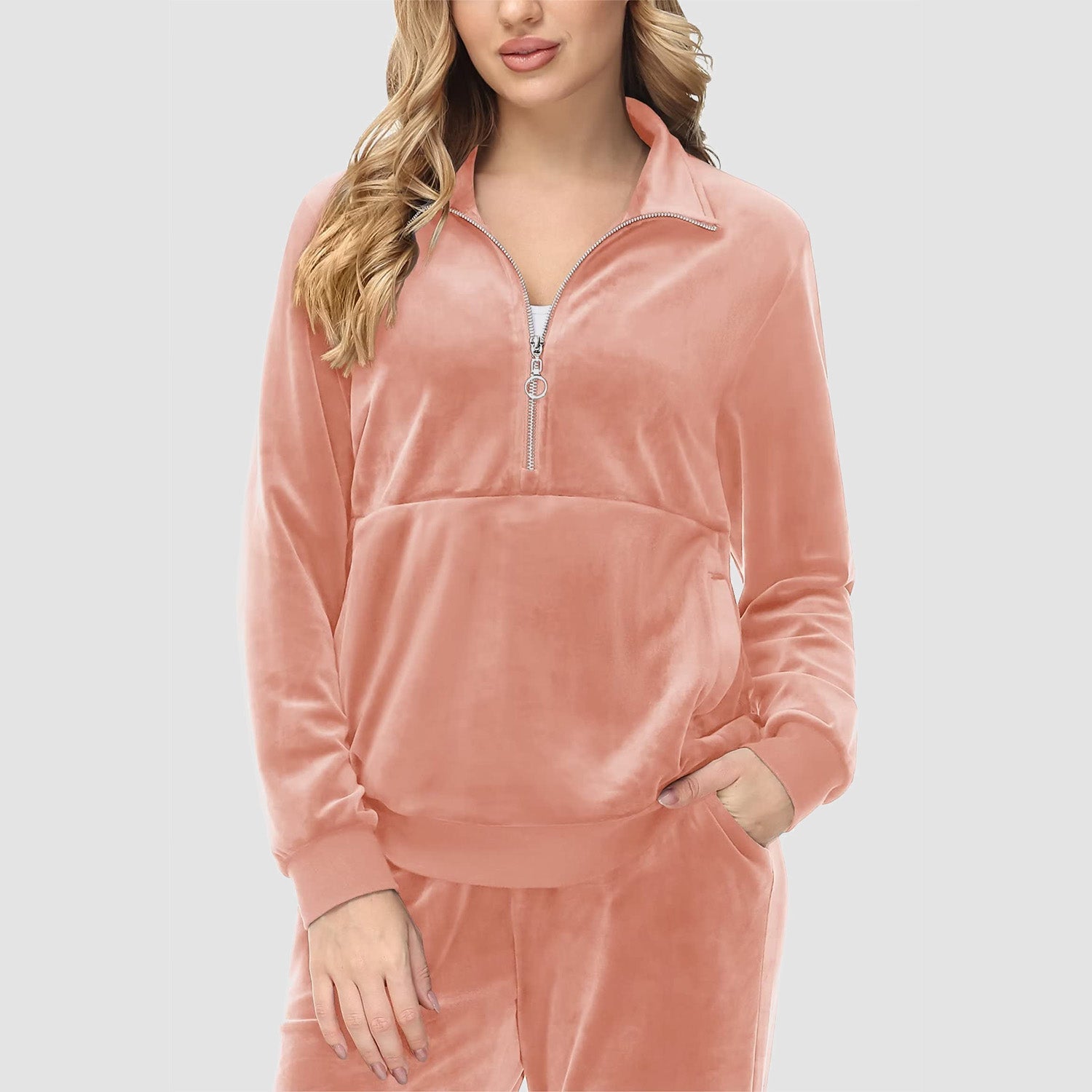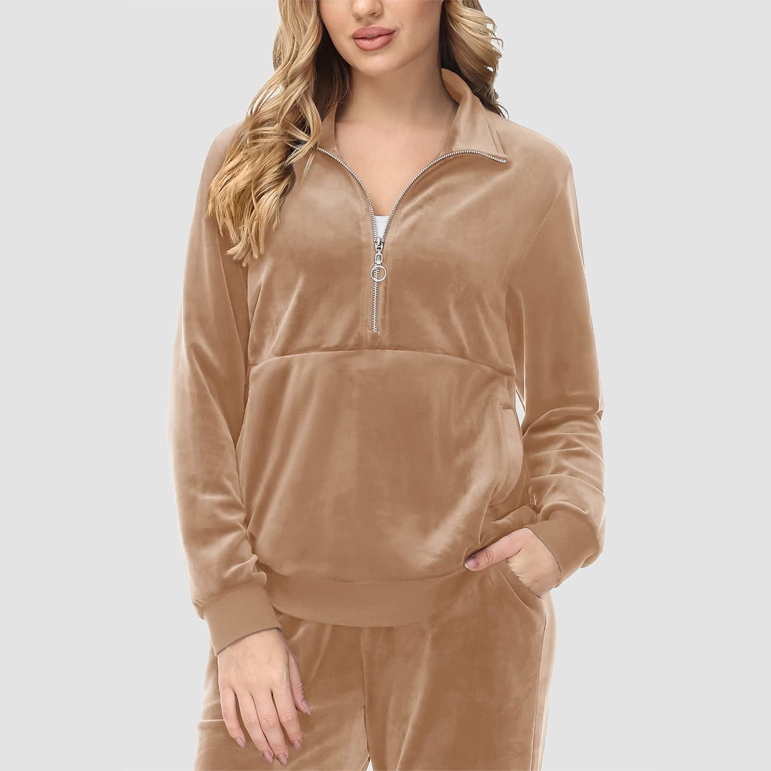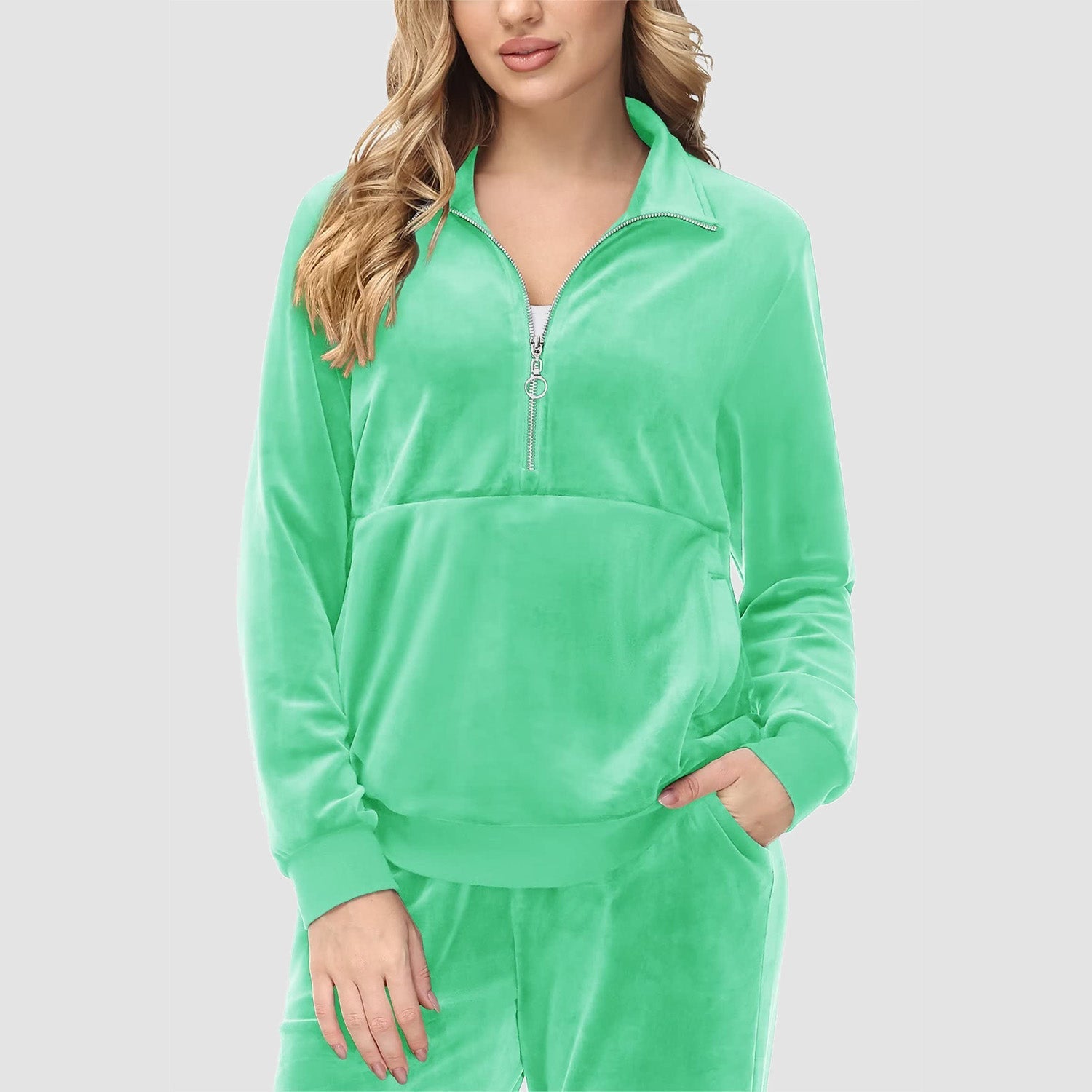 Verrijk Je Dagelijks Leven: Ontworpen met een stijlvolle half-rits, biedt het gemak en een vleugje verfijning. De lange mouwen en het velours materiaal zorgen voor een elegante uitstraling, waardoor je opvalt in elke omgeving.
