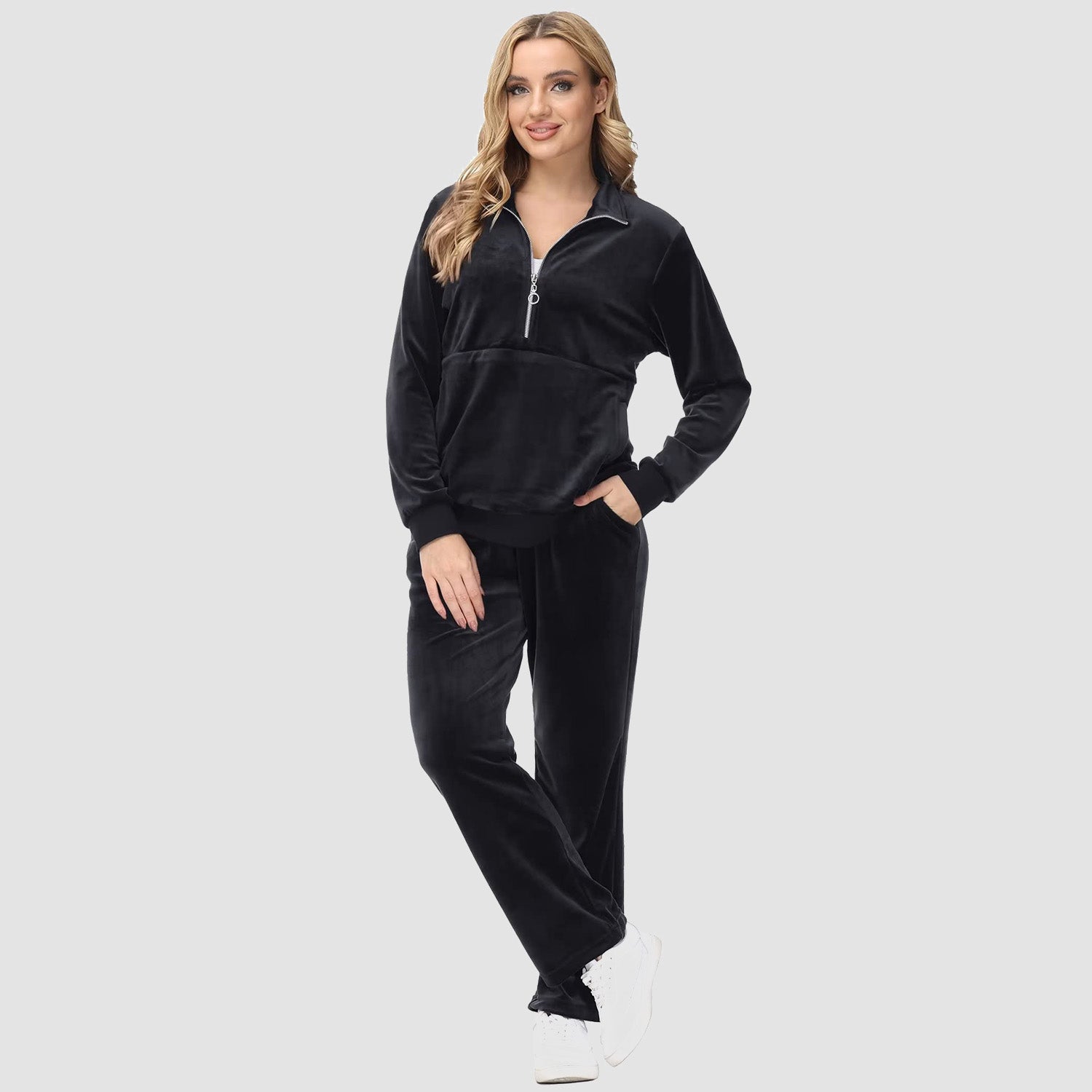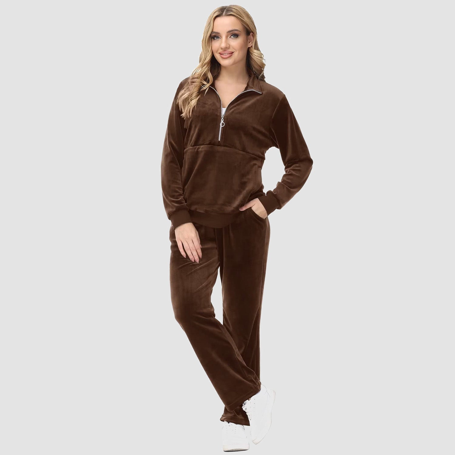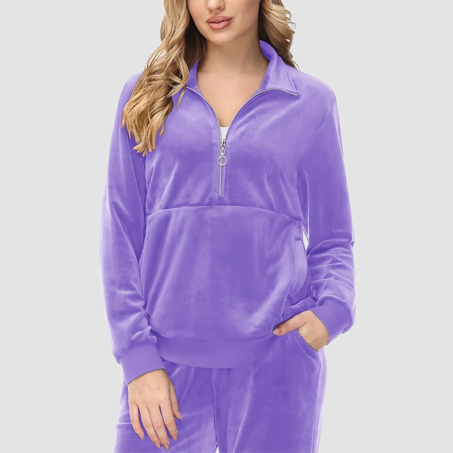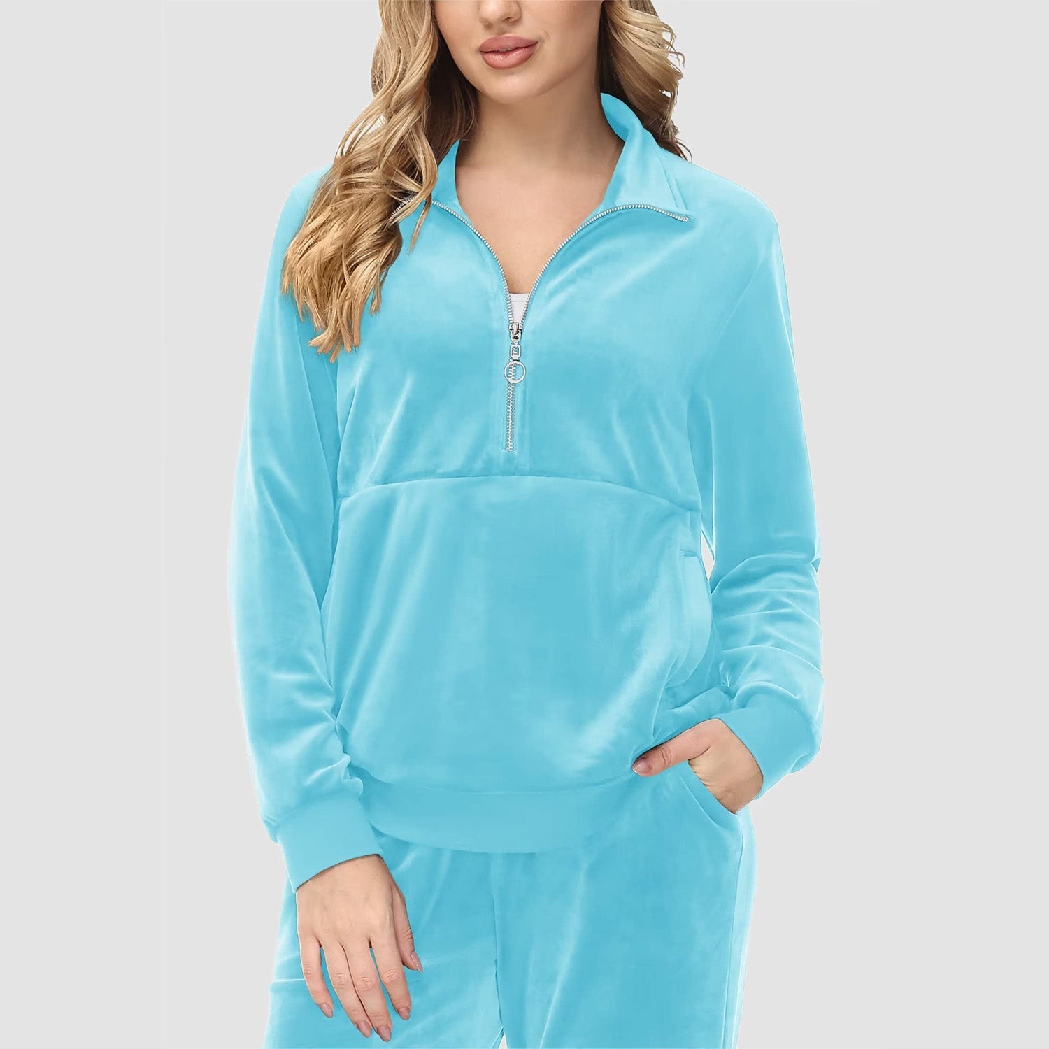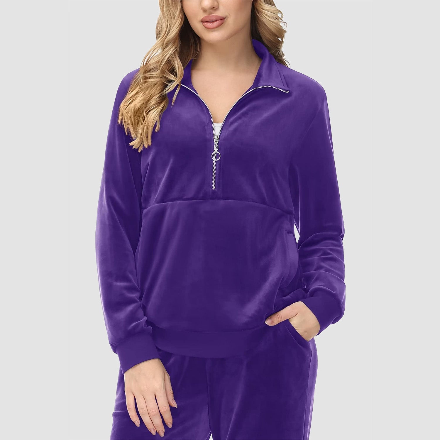 Verrijk Je Dagelijks Leven: Ontworpen met een stijlvolle half-rits, biedt het gemak en een vleugje verfijning. De lange mouwen en het velours materiaal zorgen voor een elegante uitstraling, waardoor je opvalt in elke omgeving.