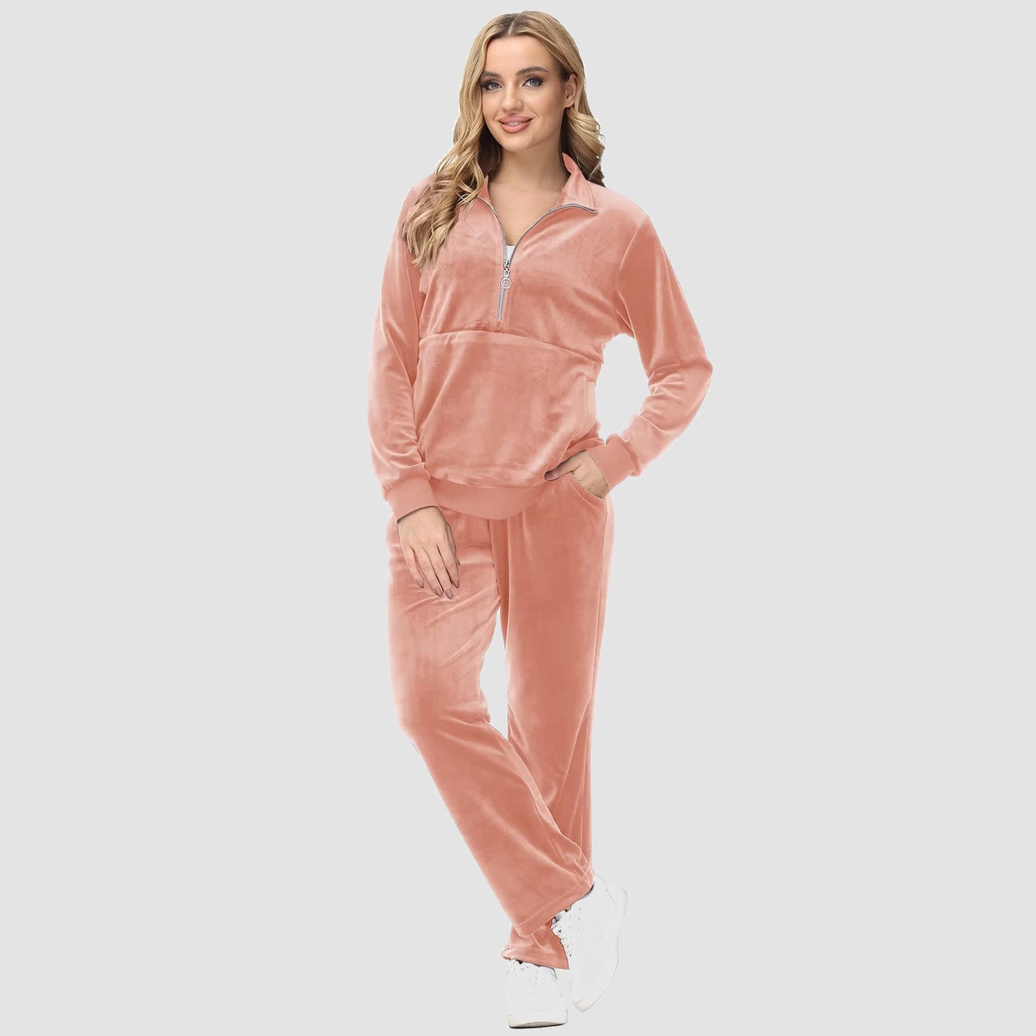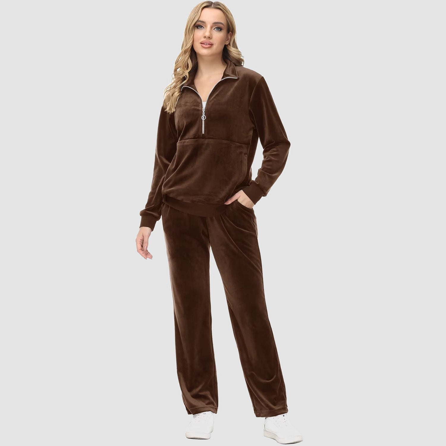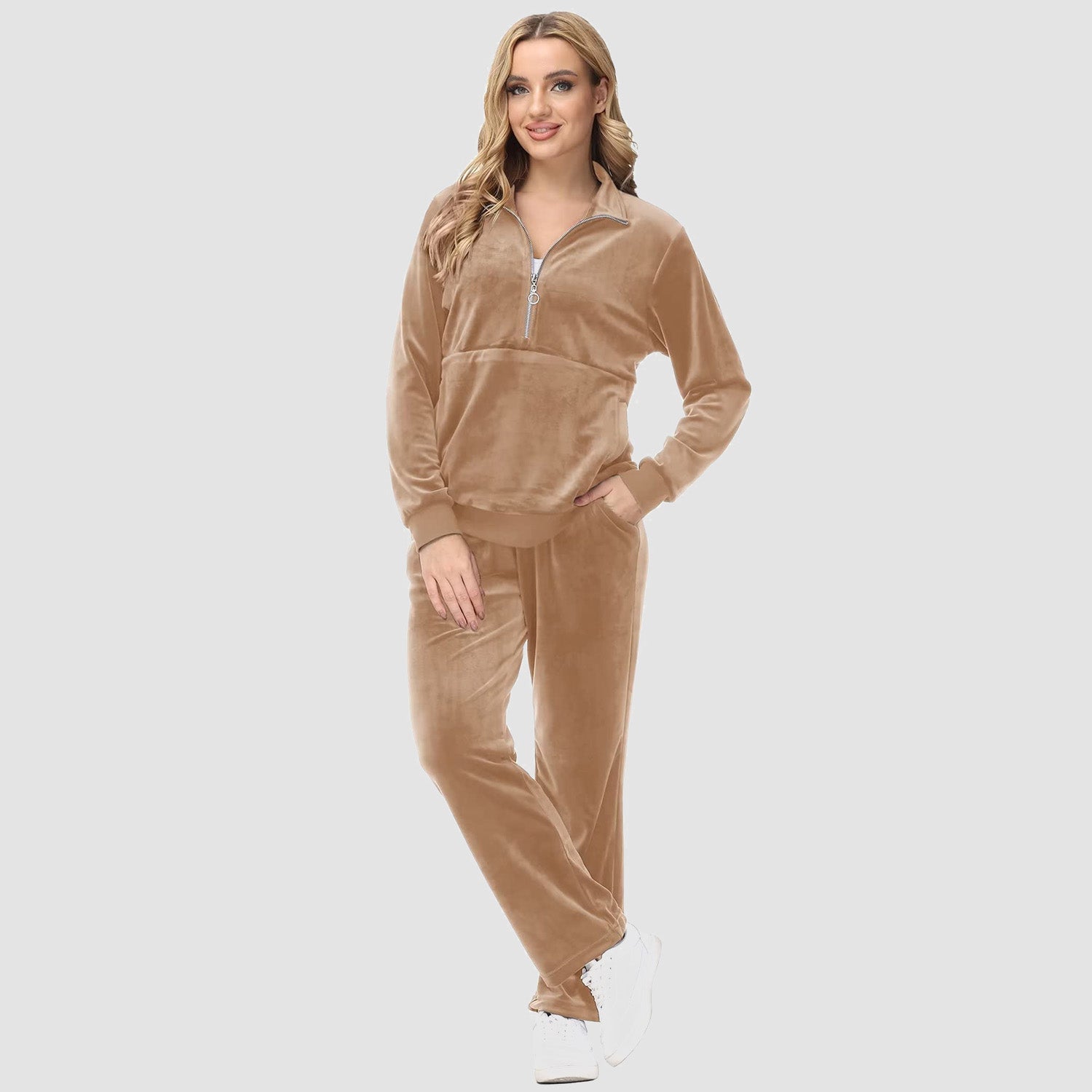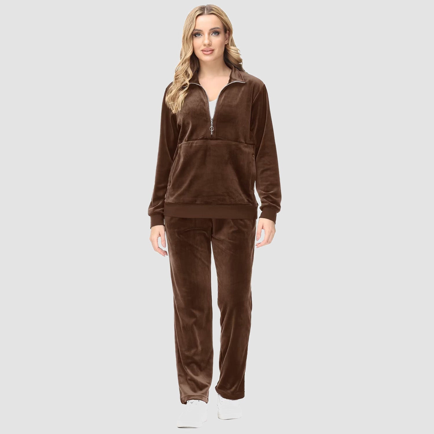 Verrijk Je Dagelijks Leven: Ontworpen met een stijlvolle half-rits, biedt het gemak en een vleugje verfijning. De lange mouwen en het velours materiaal zorgen voor een elegante uitstraling, waardoor je opvalt in elke omgeving.