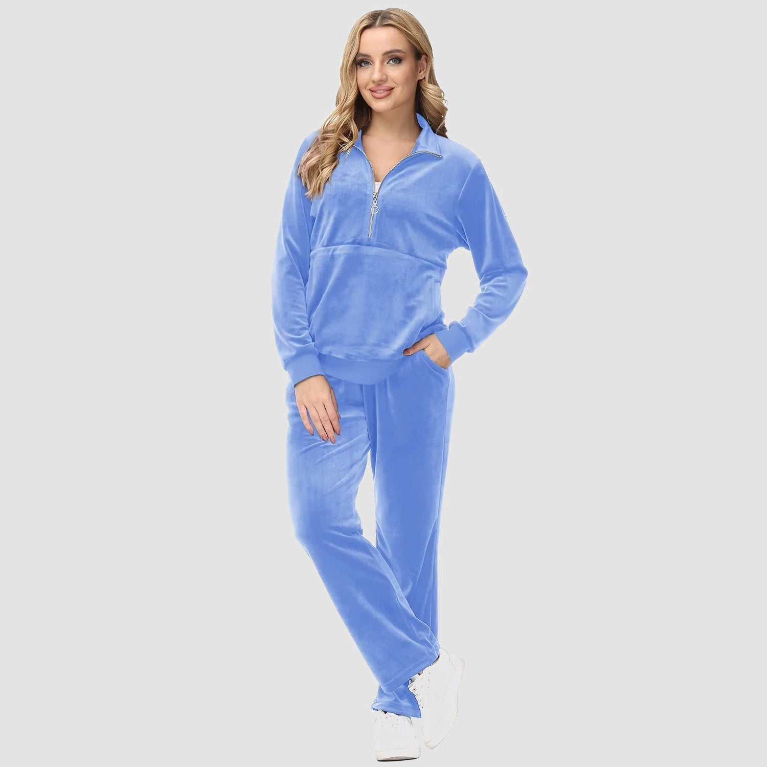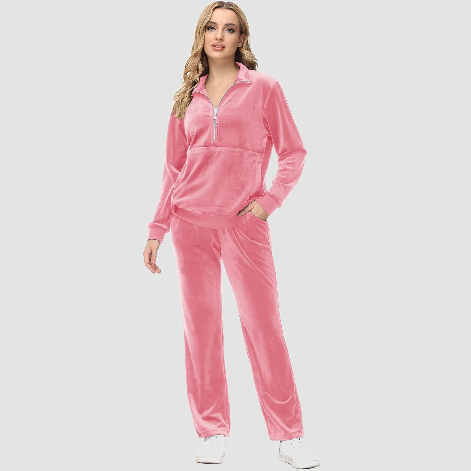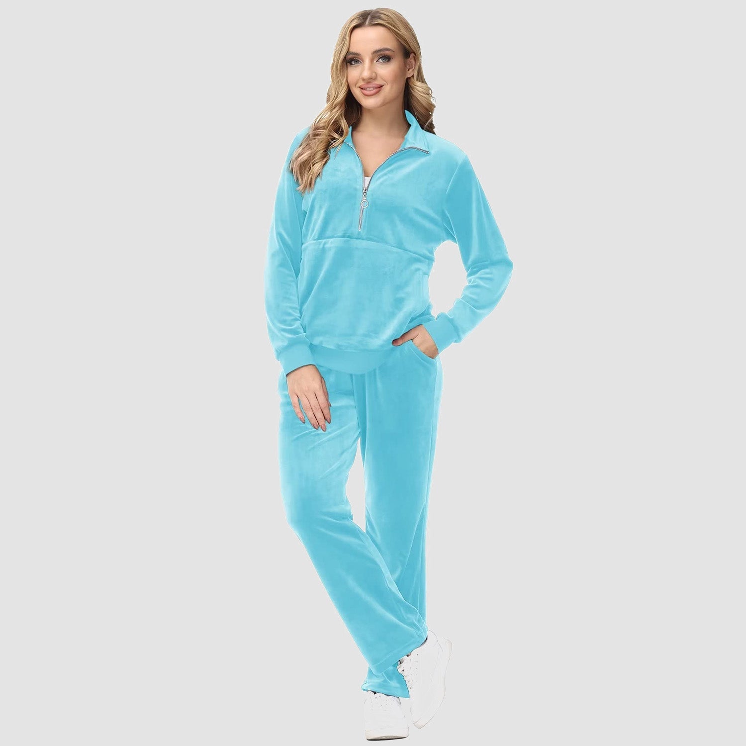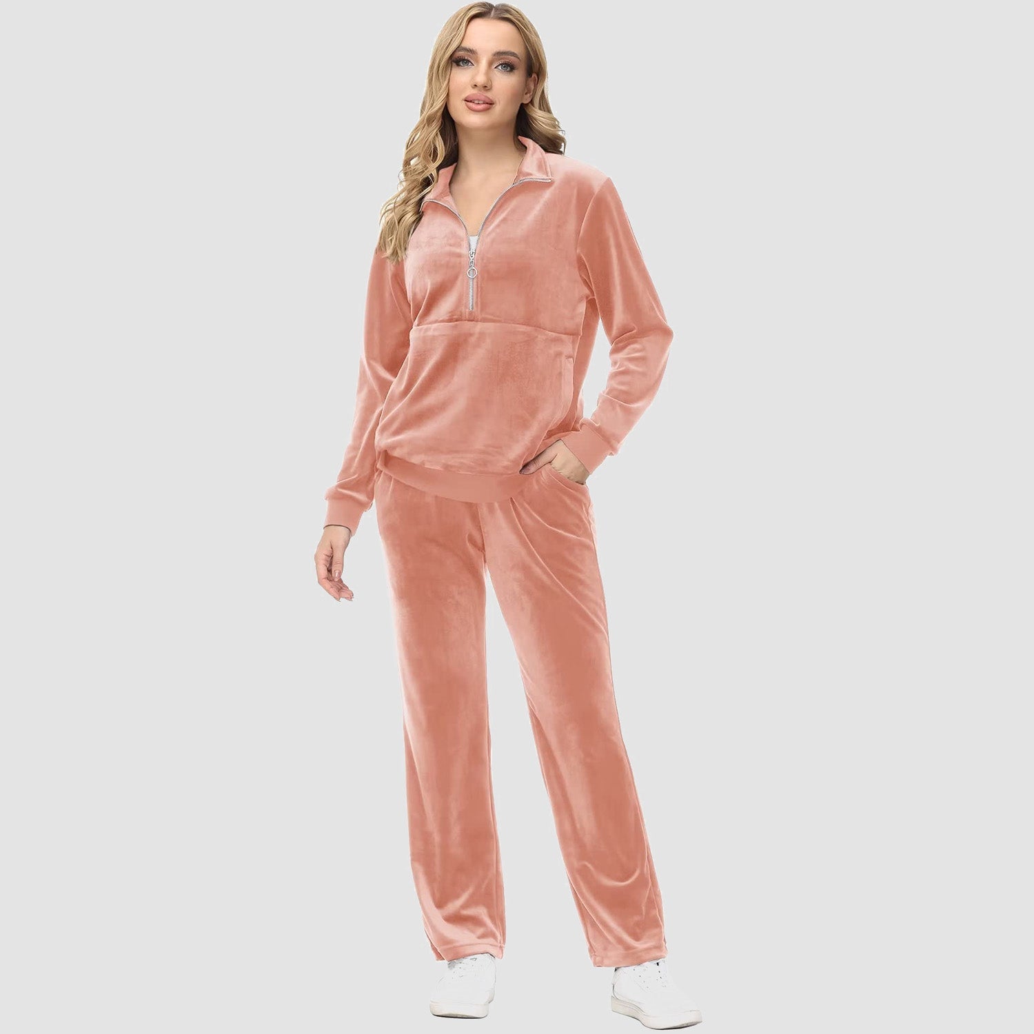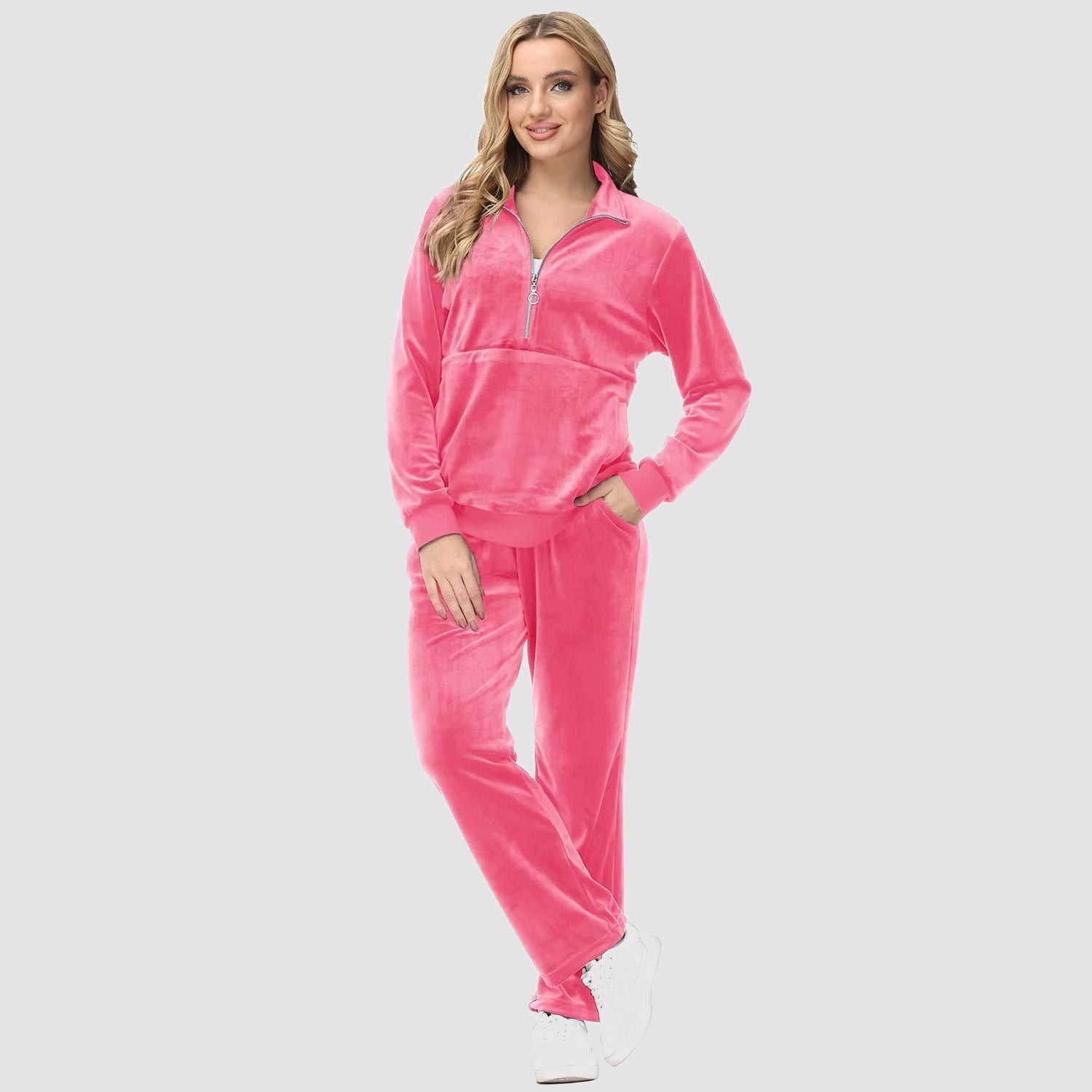 Verrijk Je Dagelijks Leven: Ontworpen met een stijlvolle half-rits, biedt het gemak en een vleugje verfijning. De lange mouwen en het velours materiaal zorgen voor een elegante uitstraling, waardoor je opvalt in elke omgeving.
