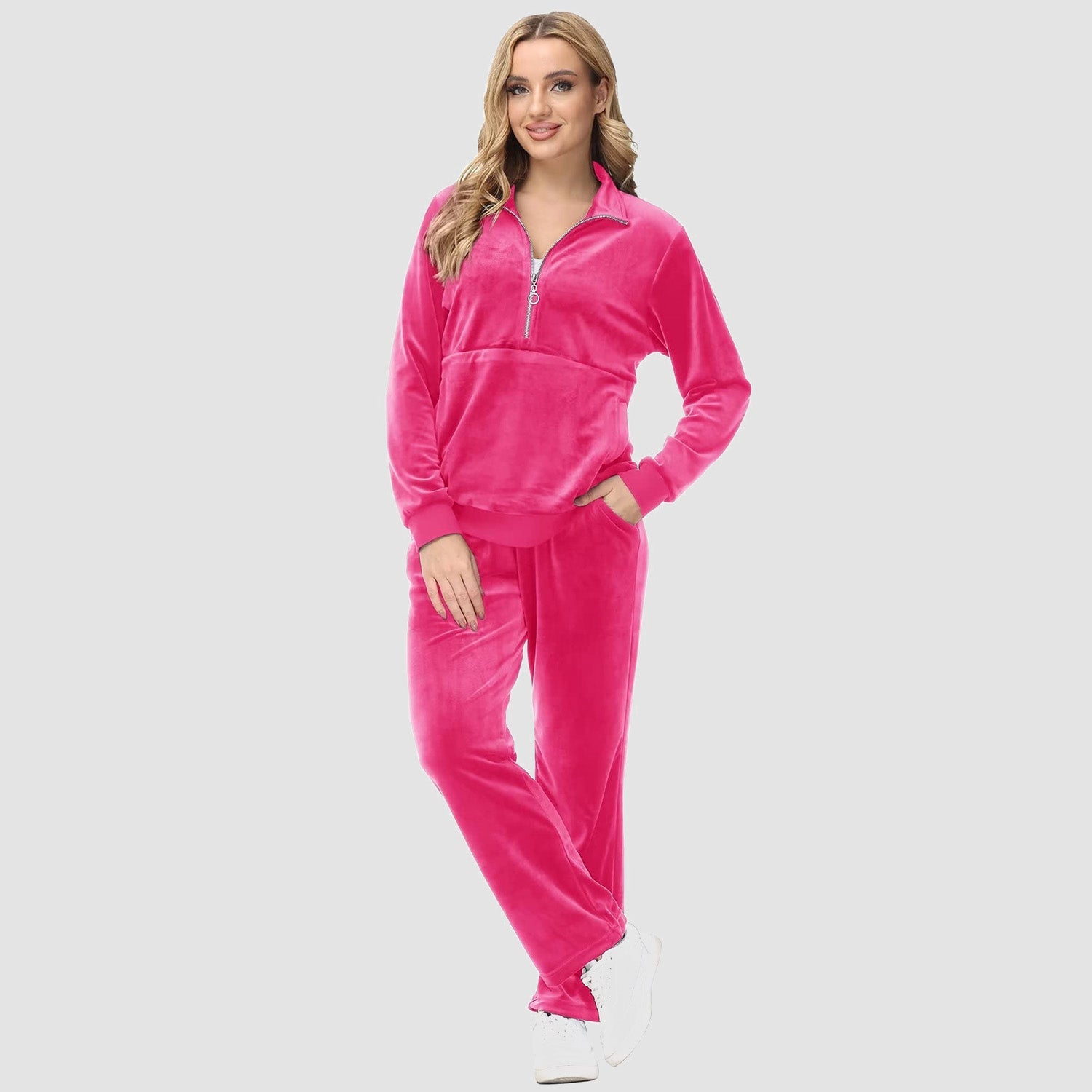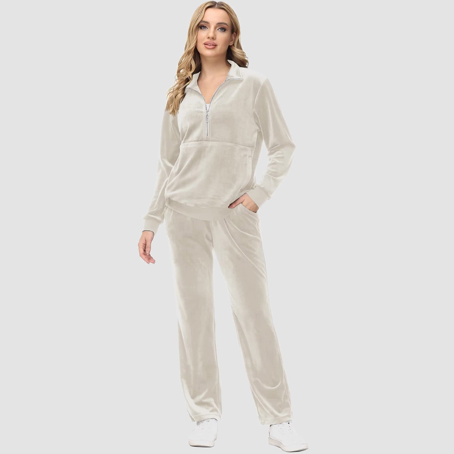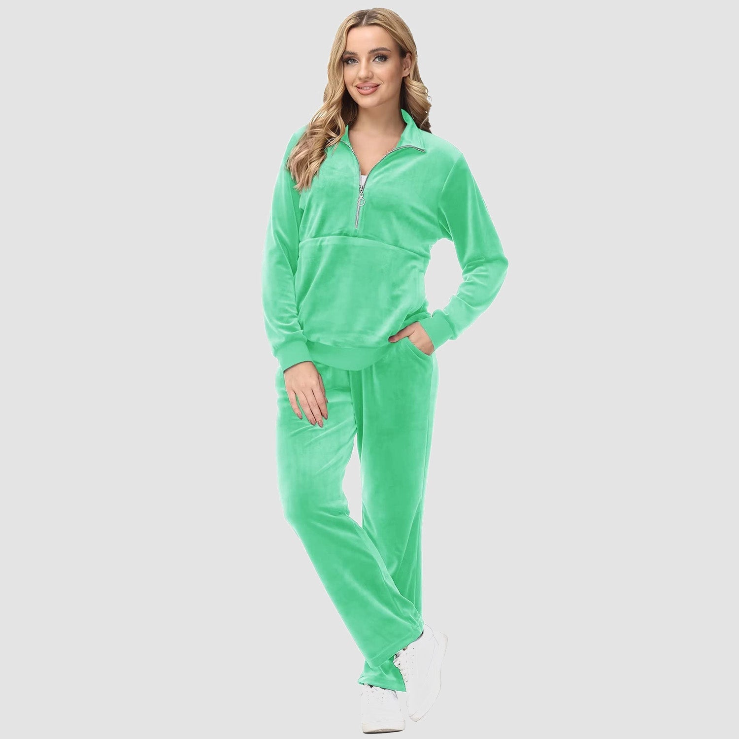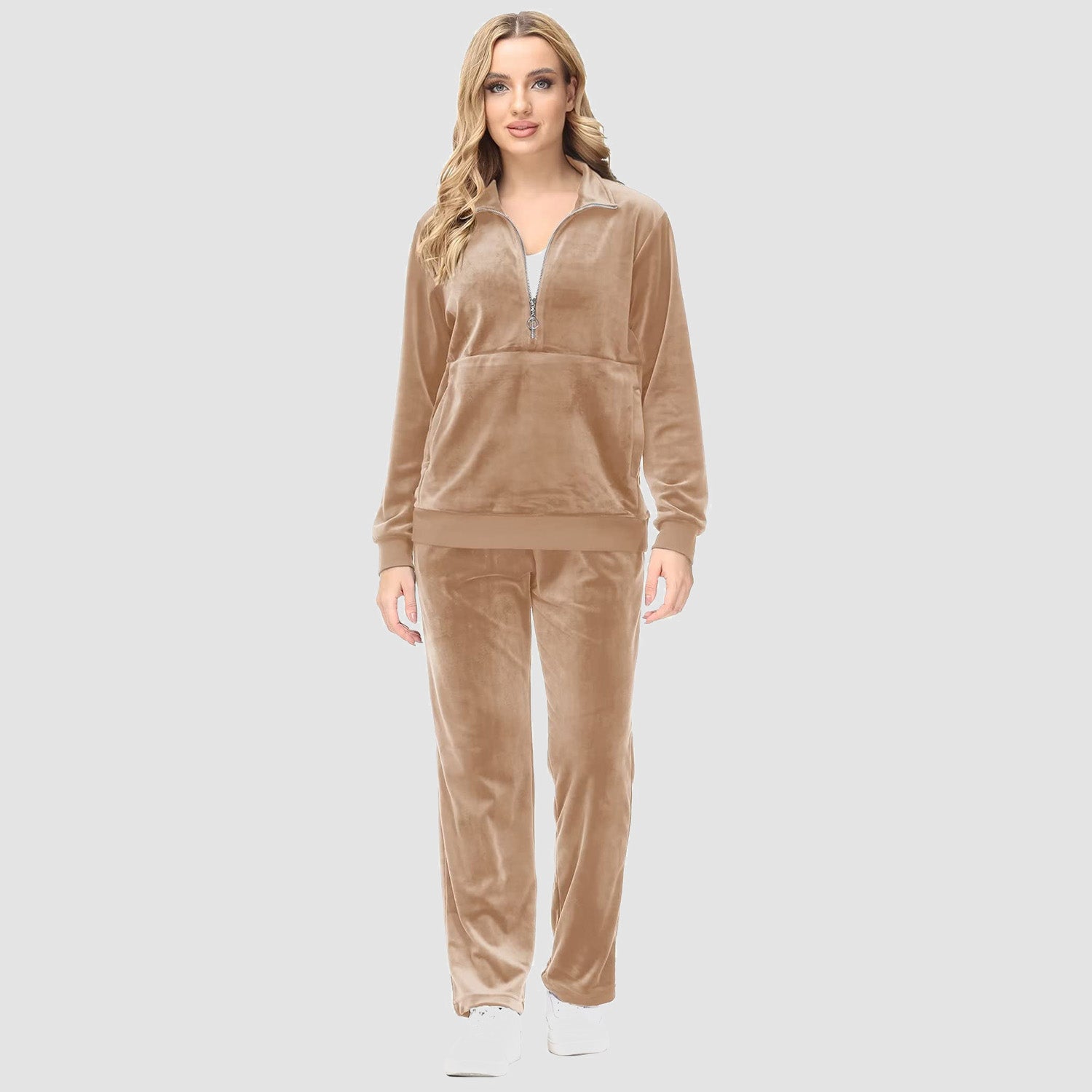 Verrijk Je Dagelijks Leven: Ontworpen met een stijlvolle half-rits, biedt het gemak en een vleugje verfijning. De lange mouwen en het velours materiaal zorgen voor een elegante uitstraling, waardoor je opvalt in elke omgeving.