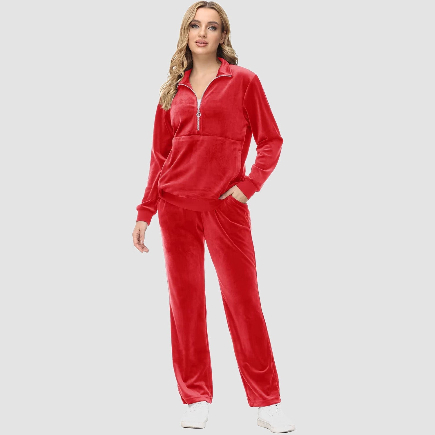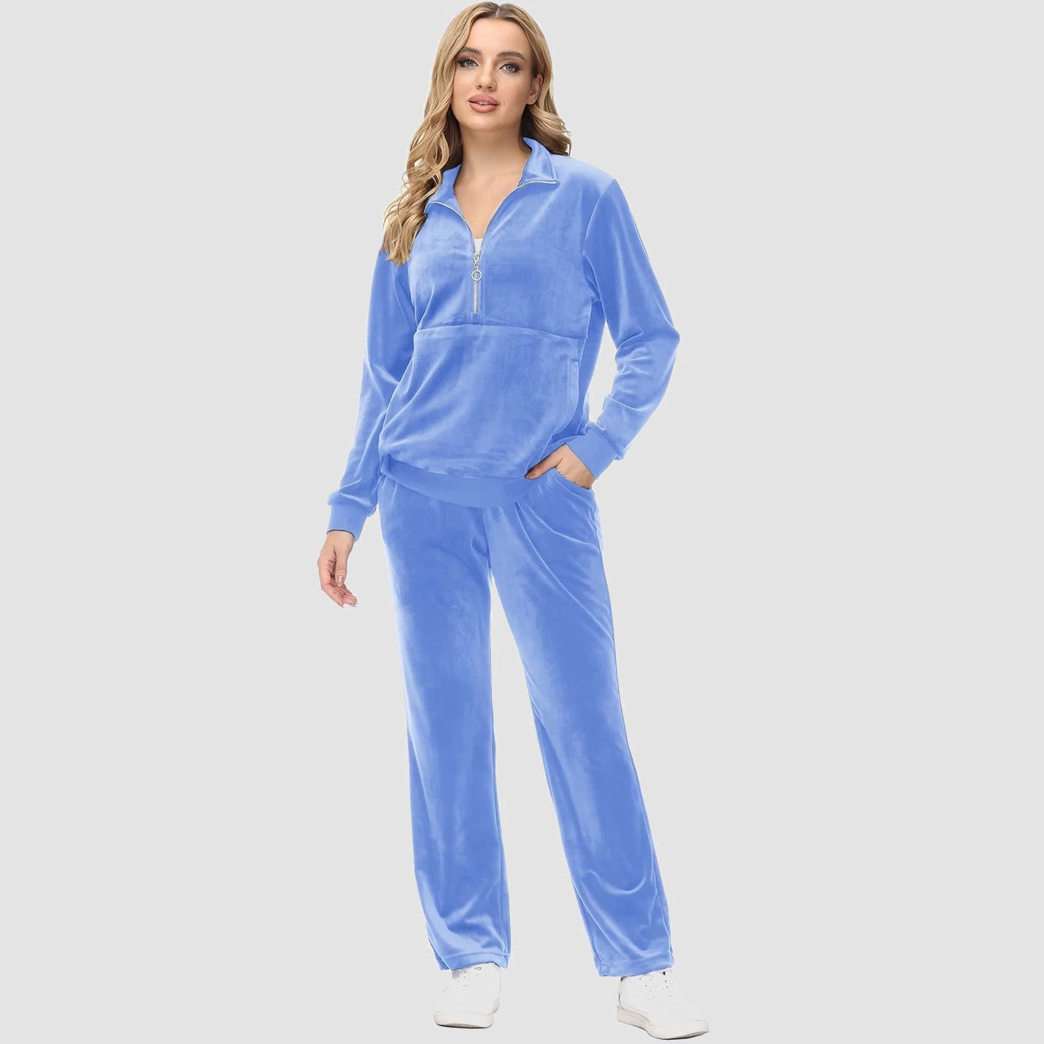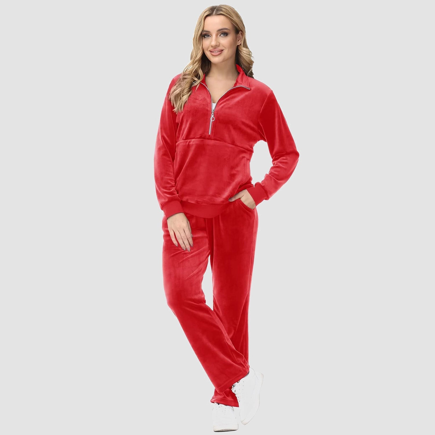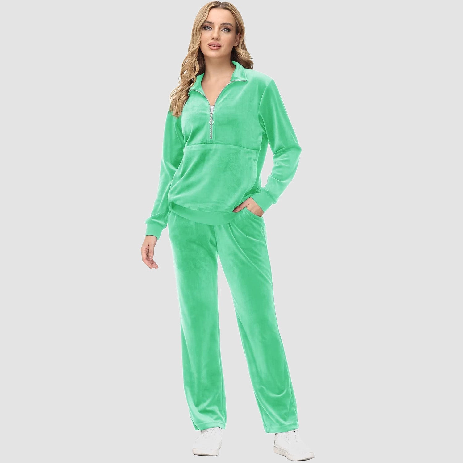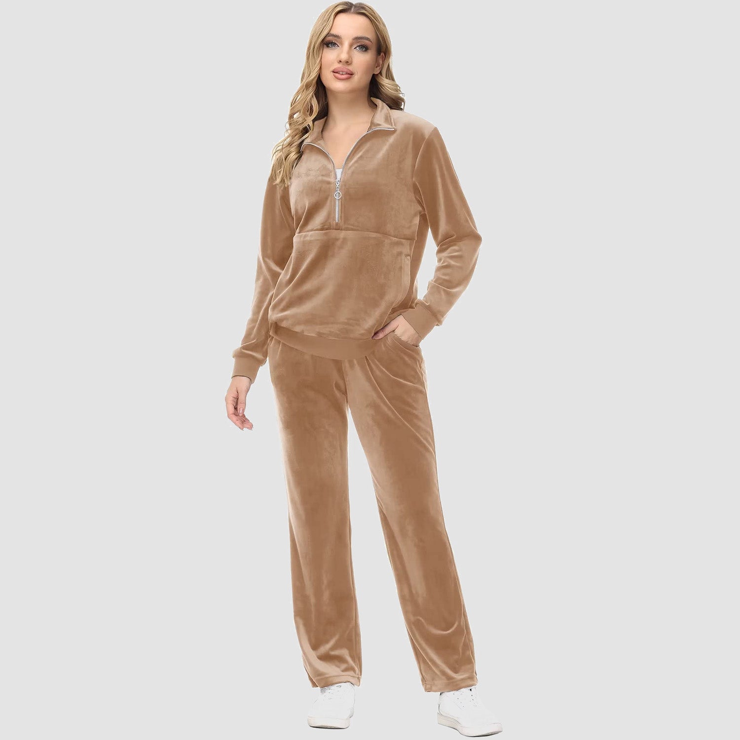 Verrijk Je Dagelijks Leven: Ontworpen met een stijlvolle half-rits, biedt het gemak en een vleugje verfijning. De lange mouwen en het velours materiaal zorgen voor een elegante uitstraling, waardoor je opvalt in elke omgeving.
