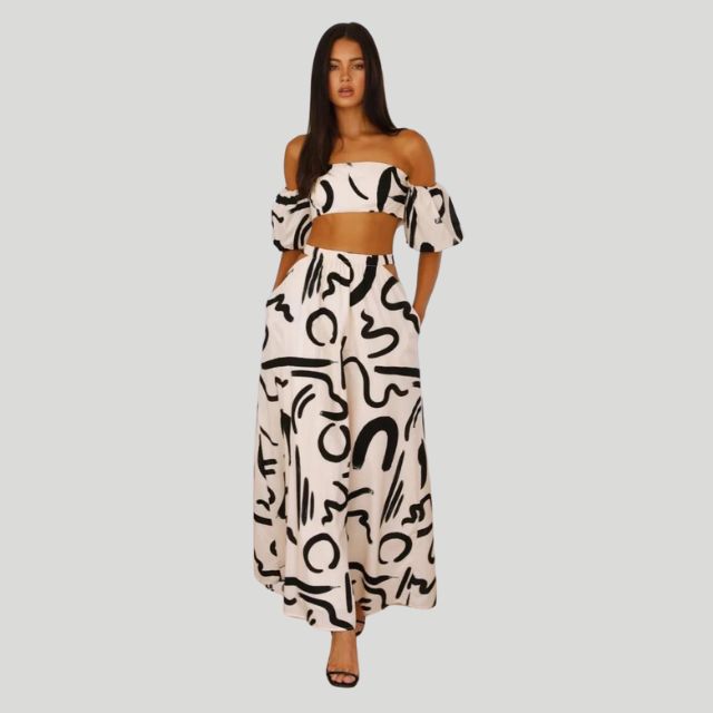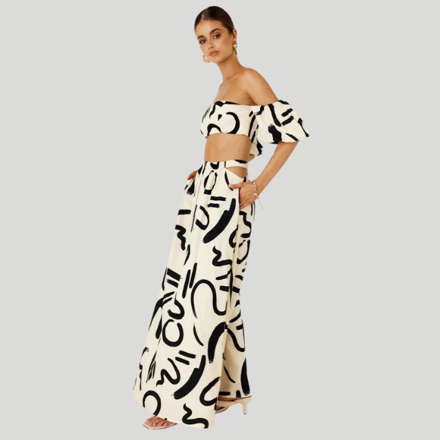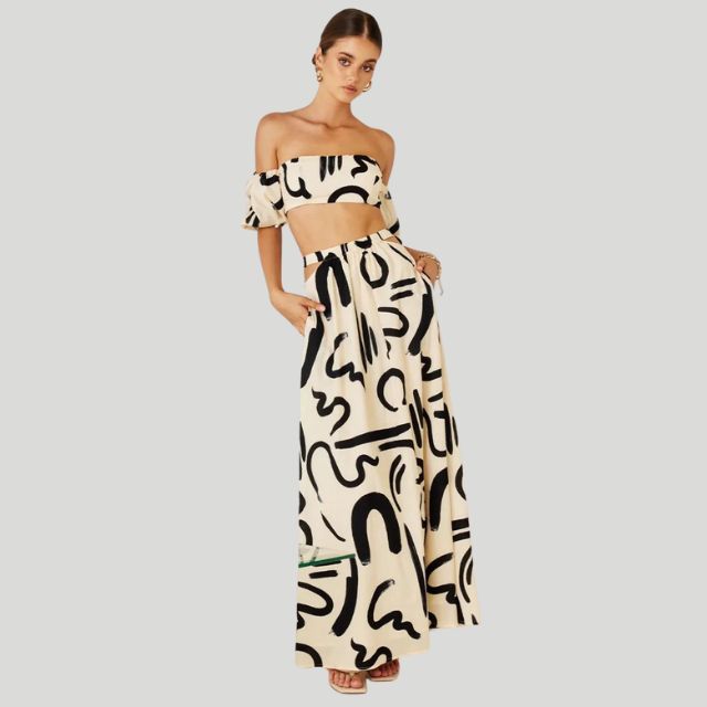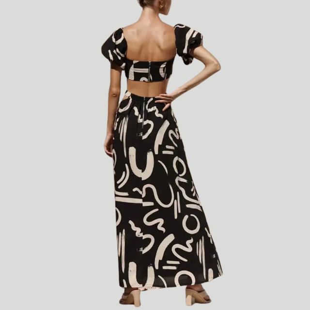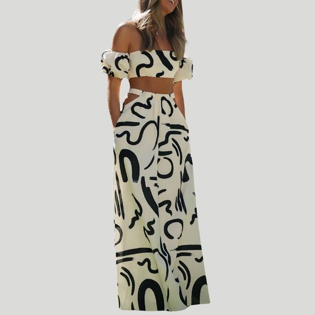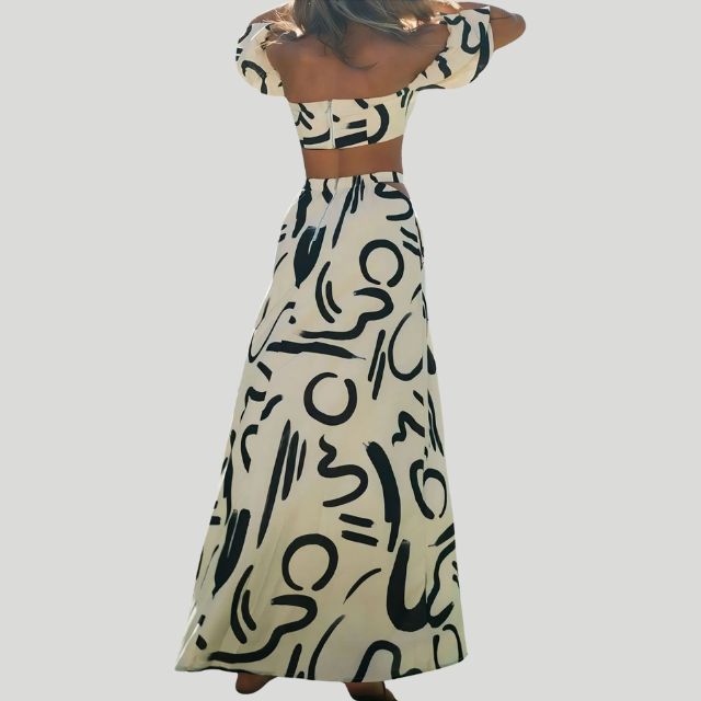 Of je nu een avondje uit gaat, een speciale gelegenheid viert of een stijlvolle dagelijkse look wilt creëren, de Niva is ontworpen om je te laten stralen. De off-the-shoulder top met charmante pofmouwen en een gedurfde cut-out in de taille geeft een speelse en verfijnde touch, terwijl de uitlopende rok zorgt voor een elegante, vloeiende beweging.