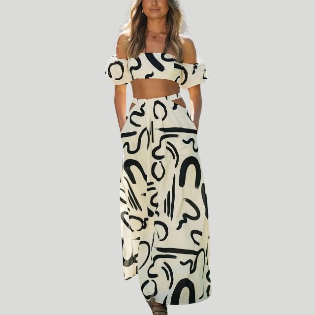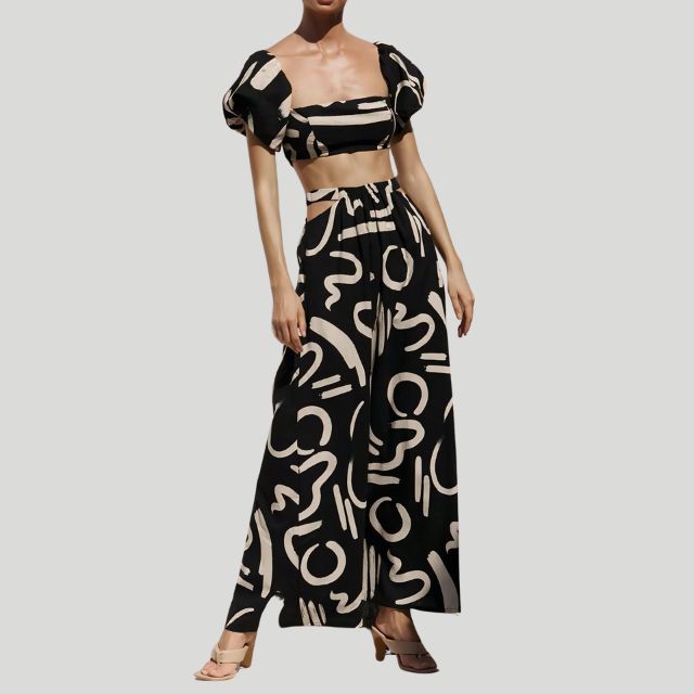 Maak een krachtig modestatement met de Niva tweedelige set, waar speelsheid en verfijning naadloos samenkomen. Dit unieke ontwerp is perfect voor iedereen die graag opvalt en zelfverzekerd voor de dag wil komen. Vervaardigd uit hoogwaardig katoen, biedt de Niva niet alleen een luxueuze uitstraling, maar ook ultiem draagcomfort.