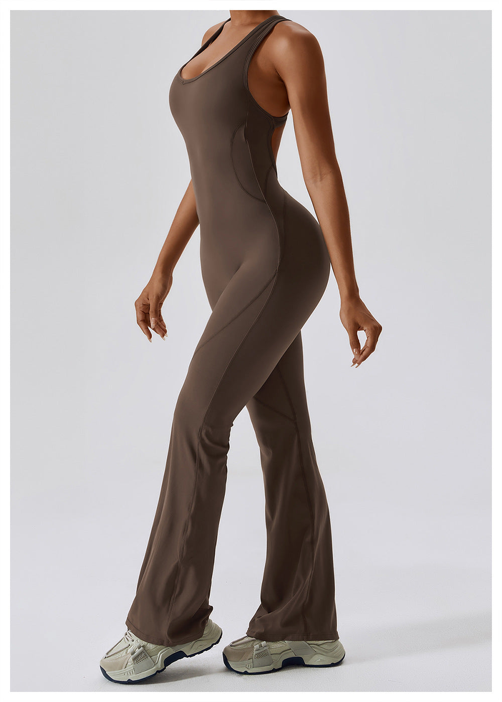 De Noralie jumpsuit combineert sportieve functionaliteit met een vleugje elegantie. Met een diepe V-hals, een nauwsluitend silhouet en een open rug, biedt deze jumpsuit de perfecte balans tussen ondersteuning en bewegingsvrijheid. Gemaakt van hoogwaardig, rekbaar nylon, beweegt de stof soepel met je mee en voelt hij zacht aan op de huid. Ideaal voor yoga, pilates, dans of intensieve workouts, terwijl je er tegelijkertijd stijlvol en zelfverzekerd uitziet.