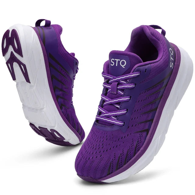 Stabiel en Stijlvol: Met een antislipzool die een uitstekende grip biedt op zowel droge als natte oppervlakken, verbeter je niet alleen je stabiliteit maar ook je vertrouwen bij elke stap. Het paarse, ademende materiaal geeft een levendige touch aan je sportieve of casual outfits.